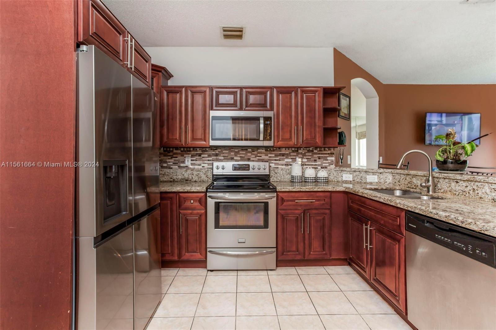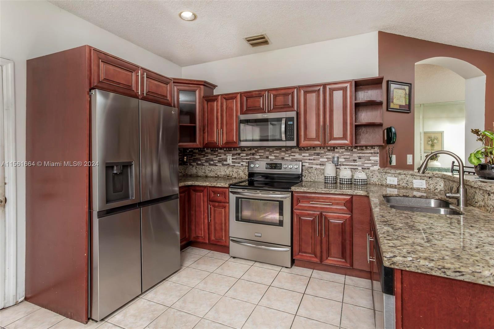 LOVELY THREE BEDROOM TWO AND A HALF BATHROOM, TWO STORY HOME IN THE MANNED GUARD GATED COMMUNITY OF AVALON. THIS HOME FEATURES WOOD LAMINATE FLOORING AND TILE FLOORING THROUGHOUT. THE UPGRADED KITCHEN IS COMPLETE WITH GRANITE COUNTERTOPS, WOOD CABINETRY AND STAINLESS STEEL APPLIANCES. BRAND NEW REFRIGERATOR, WASHER MACHINE & VERTICAL BLINDS THROUGHOUT. LARGE GRASSY BACKYARD WITH PLENTY OF ROOM FOR A POOL. THE UPPER LEVEL OF THIS HOME IS PROTECTED BY ACCORDION SHUTTERS.