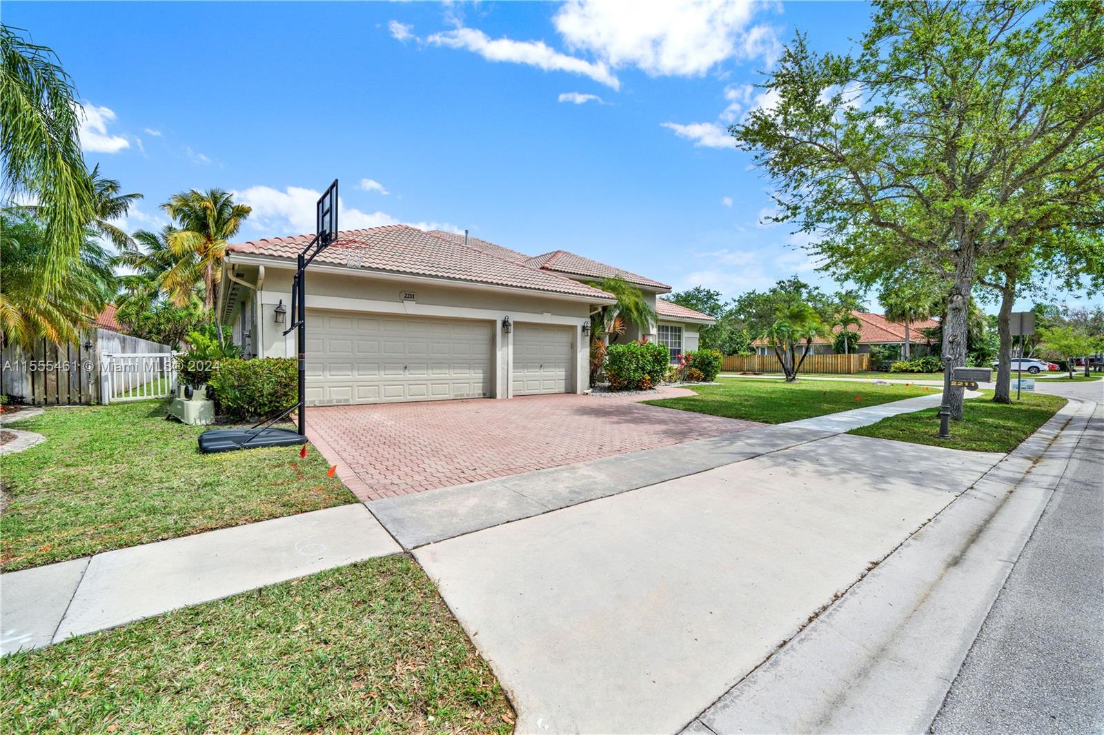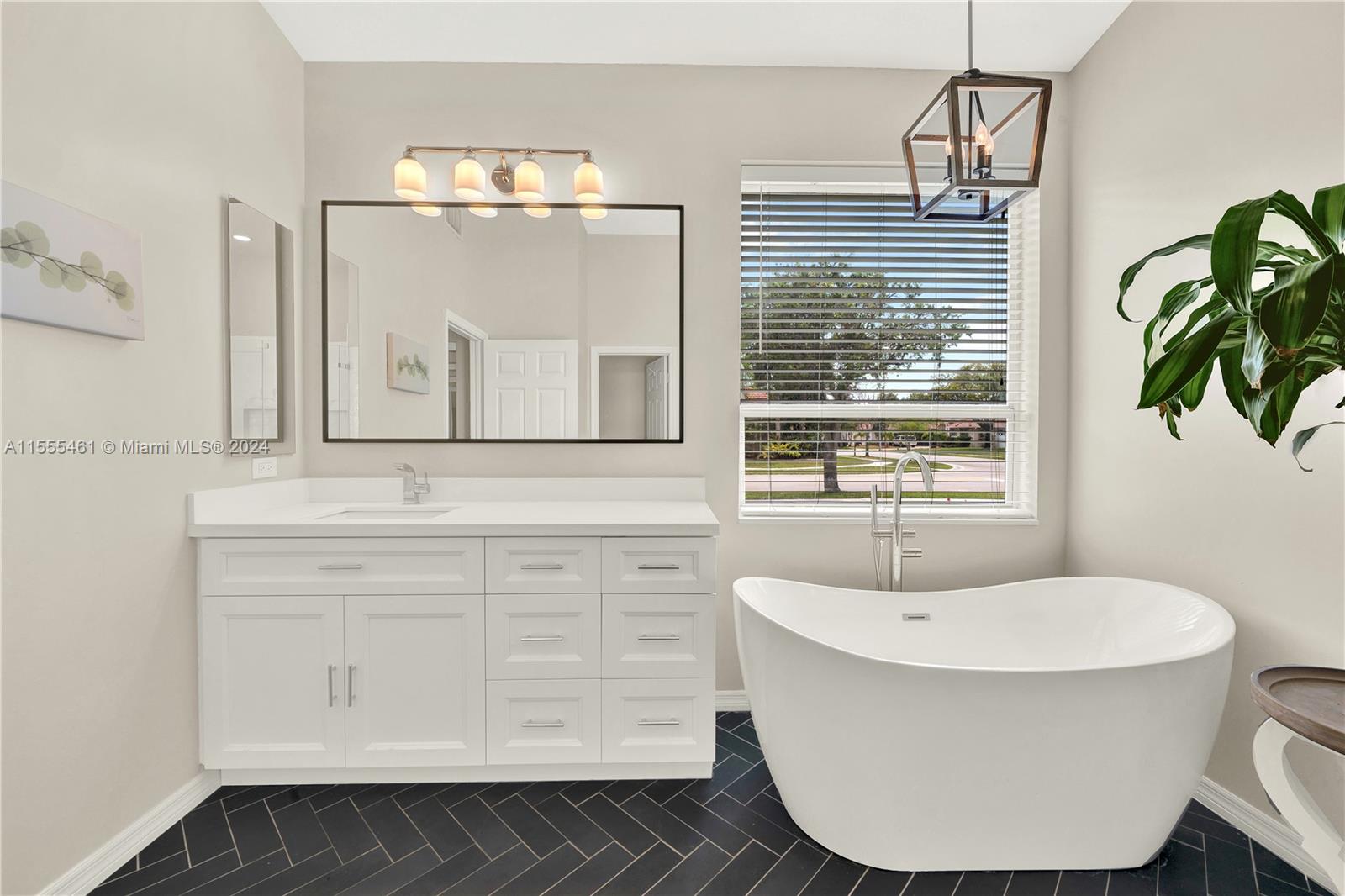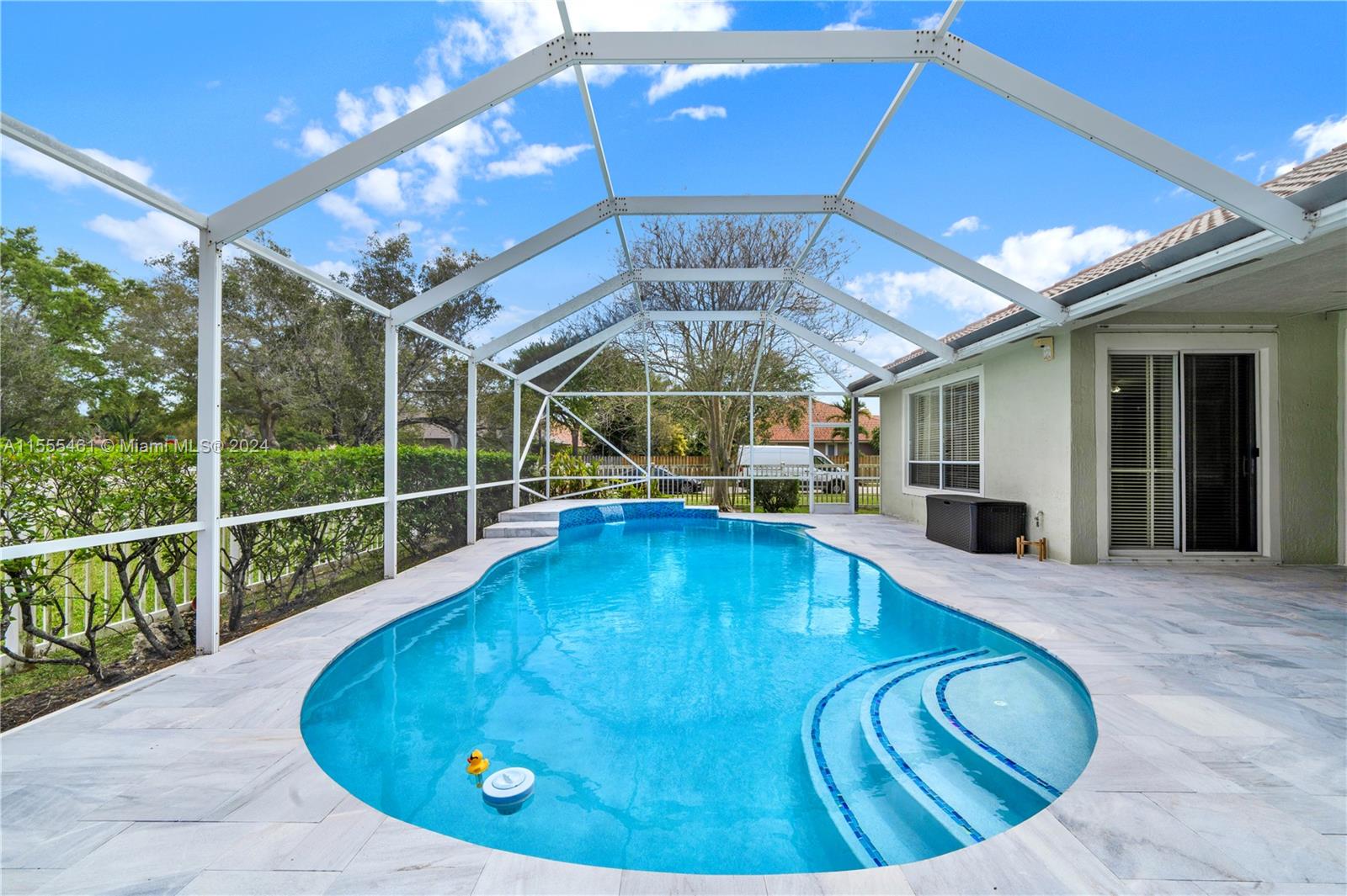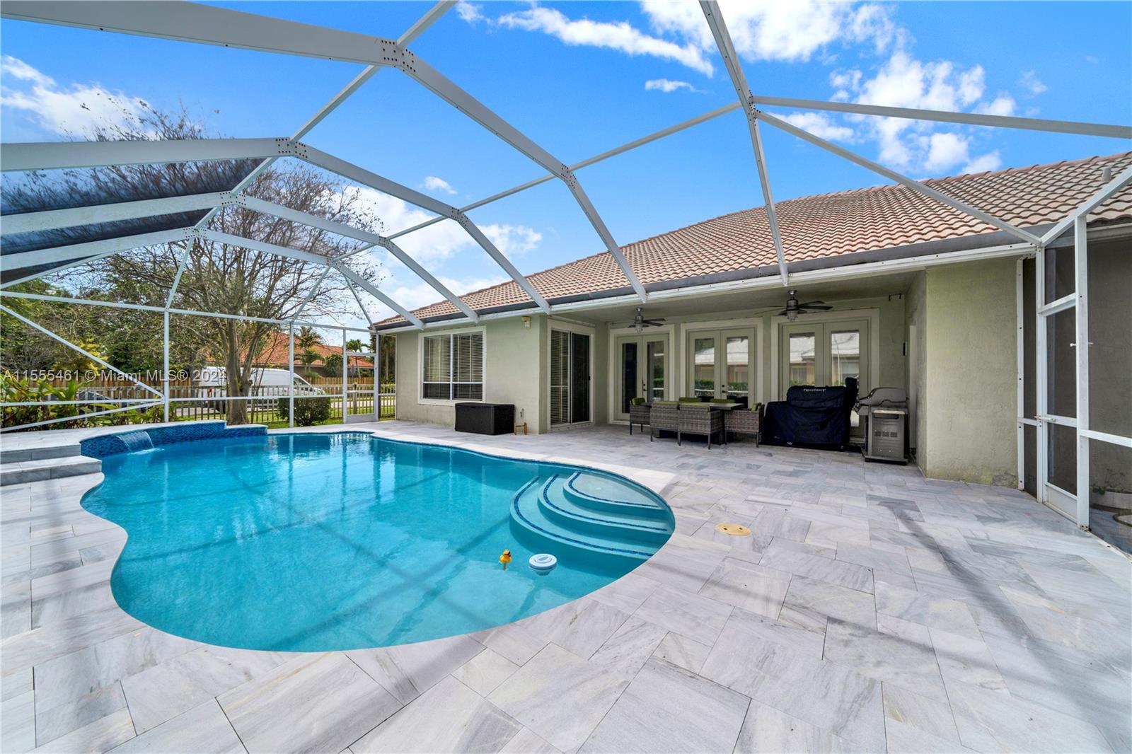 Welcome to an exquisite 4 bedrooms, 3 full bathrooms, corner lot, 3 car garage, one story oasis in the highly sought-after Majestic Bay neighborhood within Pembroke Falls. Private screened in freeform pool offers a perfect blend of elegance and comfort with plenty of fenced in yard space. With a split floorplan, the owners suite is a true retreat featuring an additional space for an office and/or sitting area with direct access to the patio and pool. Its ensuite bathroom is a sanctuary of relaxation with two stand alone sink vanities, a soaking freestanding tub and a separate walk-in shower. The heart of this home lies in the bright open kitchen and family room, with triple French doors perfect for hosting gatherings. A true MUST see! Garage refrigerator does not convey. SqFt (liv) 2,598