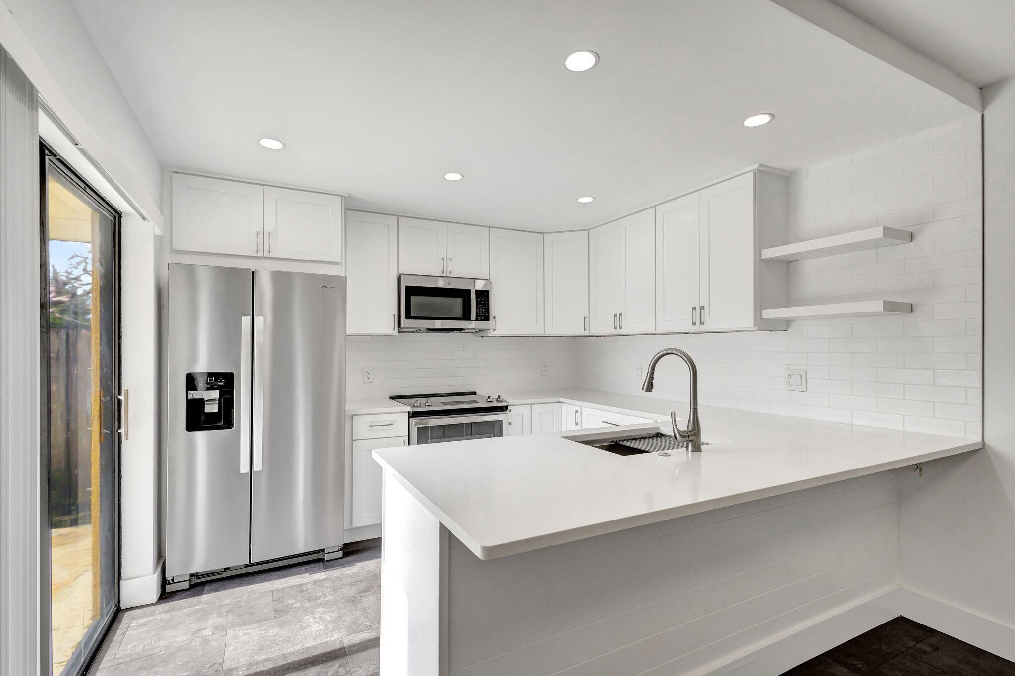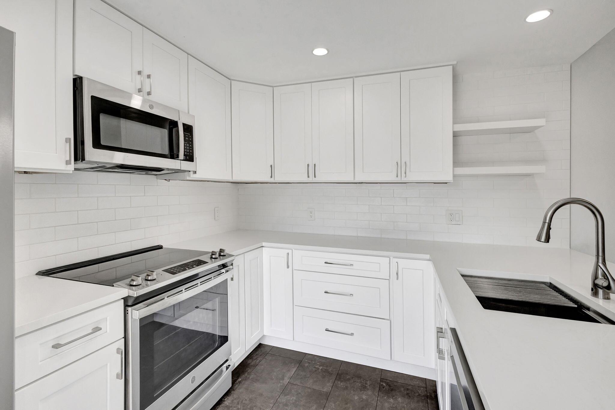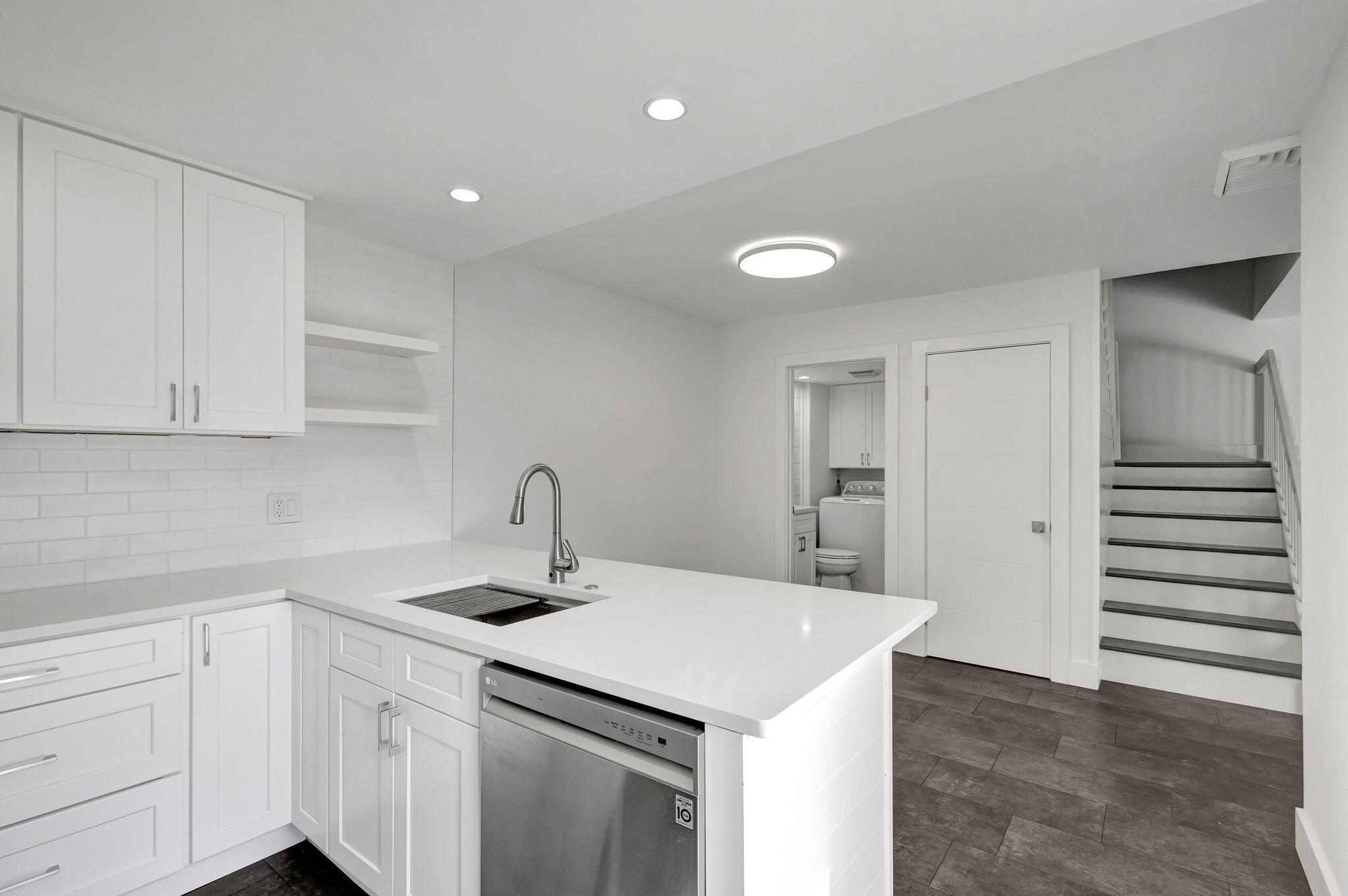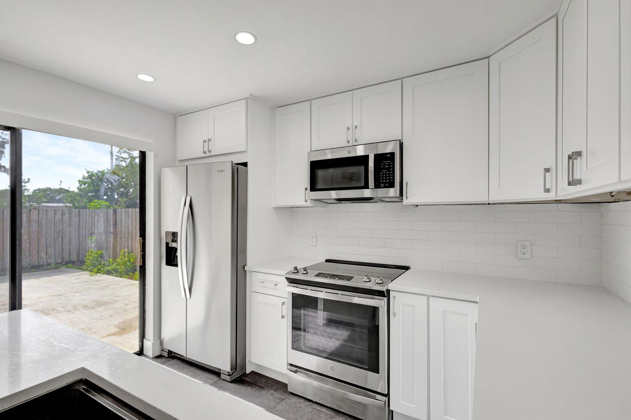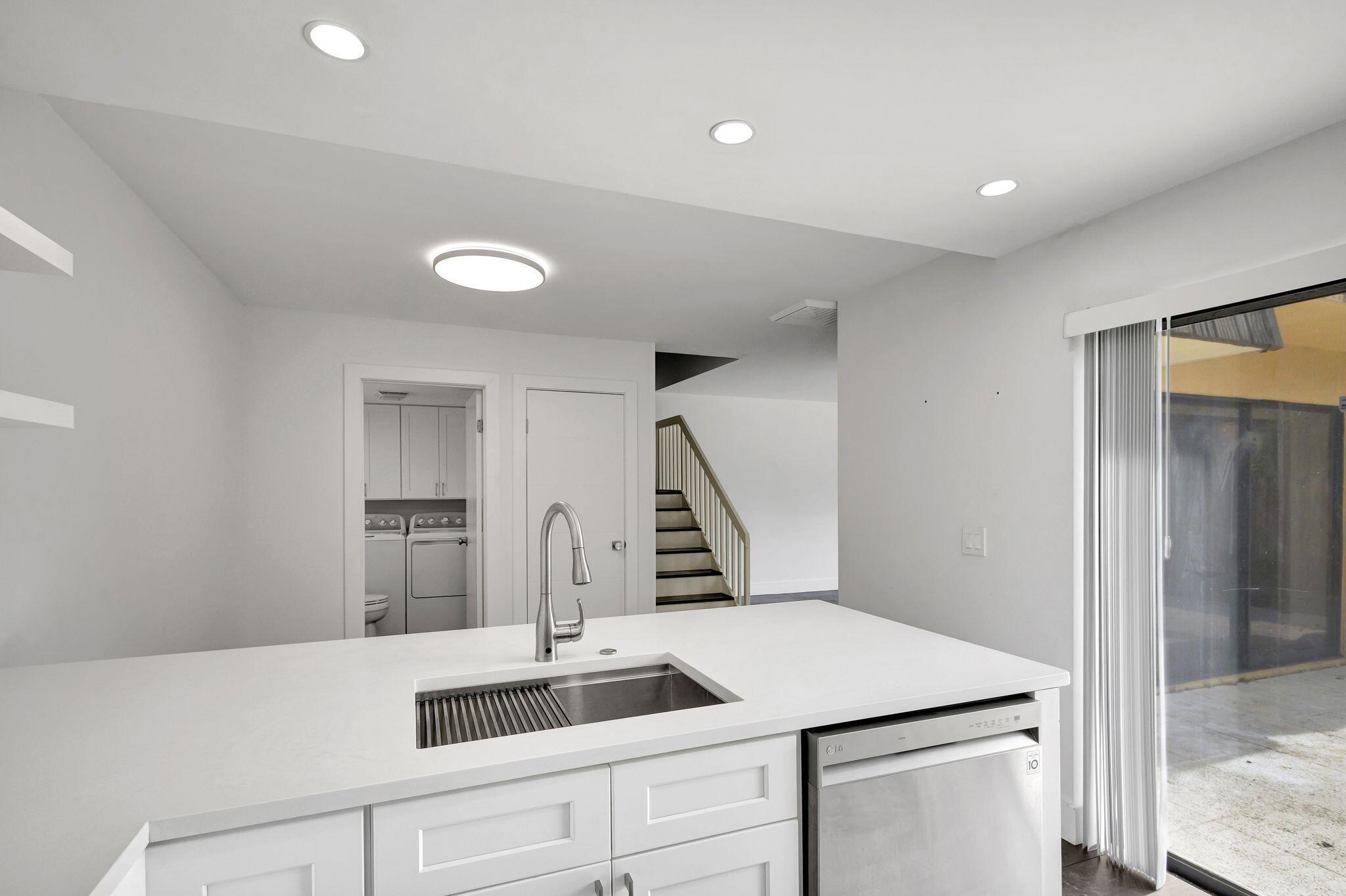 STUNNING WATERFRONT TOWNHOME RENOVATED TO PERFECTION! Extremely private location within Sandalwood Lakes overlooking large grassy area and tranquil water views! Beautiful vinyl plank flooring throughout! Spectacular kitchen with white shaker cabinets, sparkling Quartz counter tops, Subway tile backsplash, stainless steel appliances and LED lighting. Downstairs powder room/laundry room perfectly redone with elegant vanity, mirror, lighting, and cabinetry over full size GE washer and dryer. Generous master suite with huge walk-in closet. Luxurious master bath remodeled with new vanity, Quartz counter, dual sinks and mirrors, LED lights, custom shower with frameless glass shower door and decorative tile cut-out and accents.