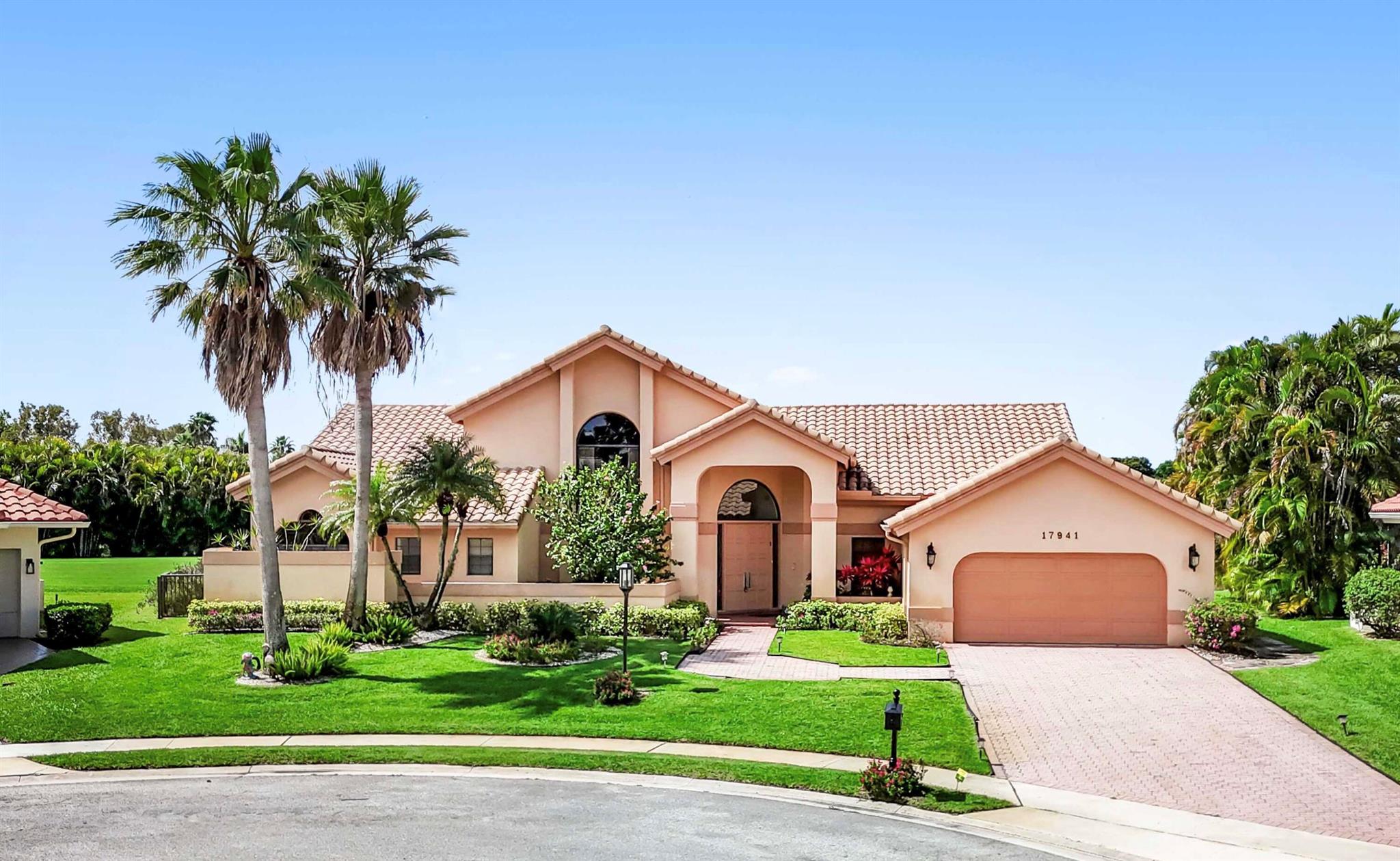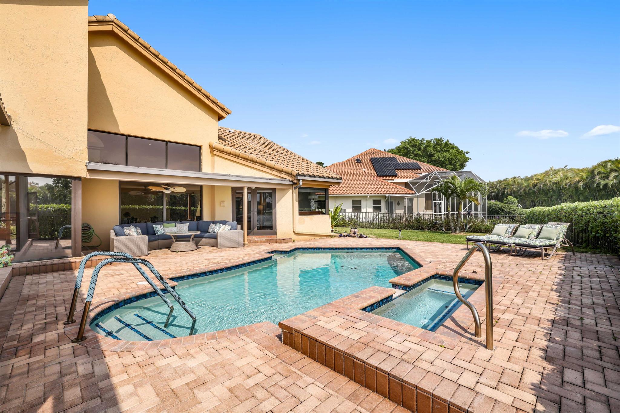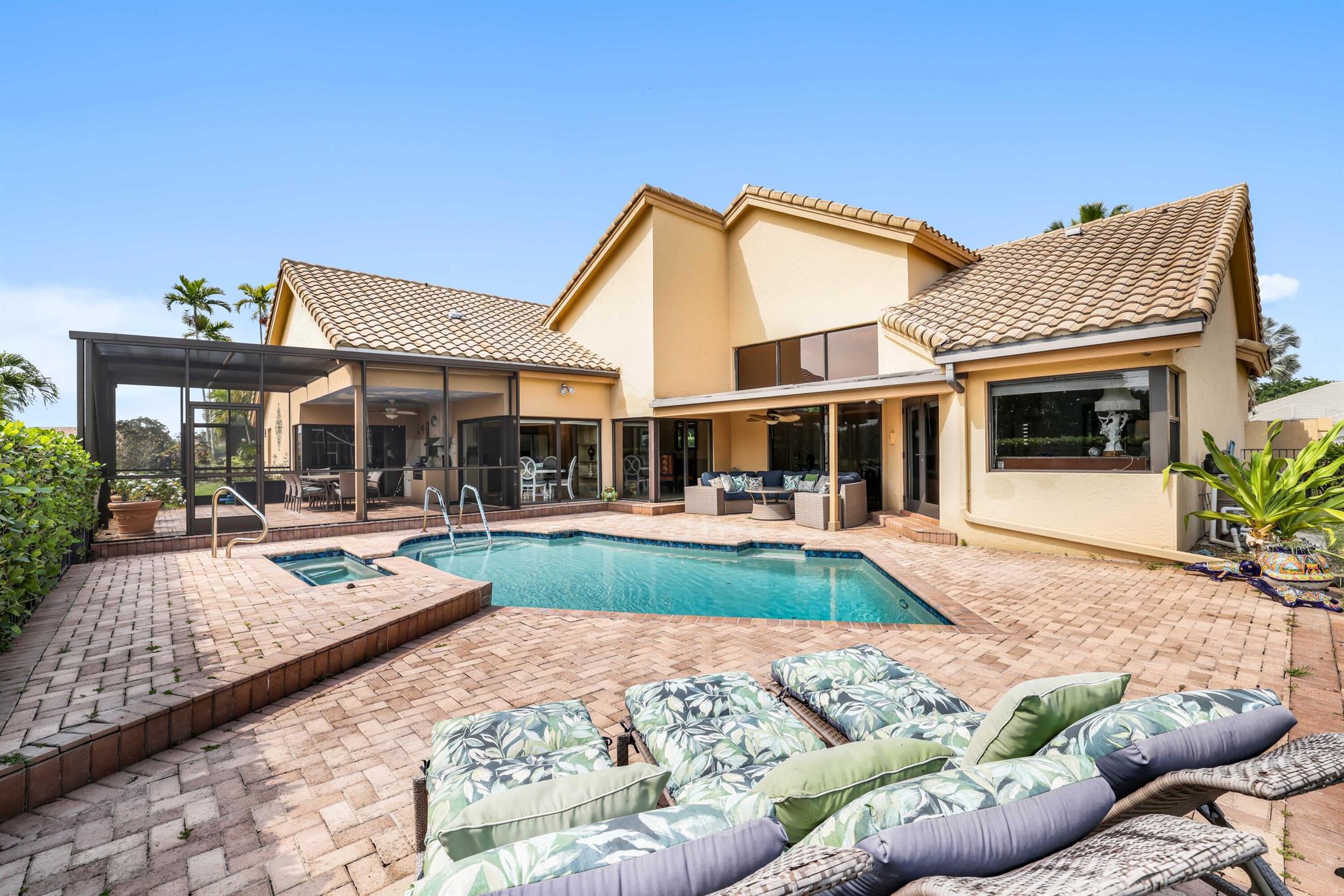 Double door entry opens to large, voluminous living room and views of the sunny backyard with pool, golf and lake views. Located at the end of a quiet cul de sac offers less traffic and safety for kids and pets. Every bedroom is ensuite. FlexSpace used as office, but can be huge pantry, storage or craft room. Pie shaped lot offers HUGE screen porch with summer kitchen. Large paver pool deck and more than ample yard with lake and golf course views. Pool has integrated spa with heater hook up and is heater-ready if you desire. Central Vac, A/C 2022, pool resurfaced 2022, Garage with epoxy flooring, large laundry room, LOTS OF STORAGE. ** See supplements and documents**