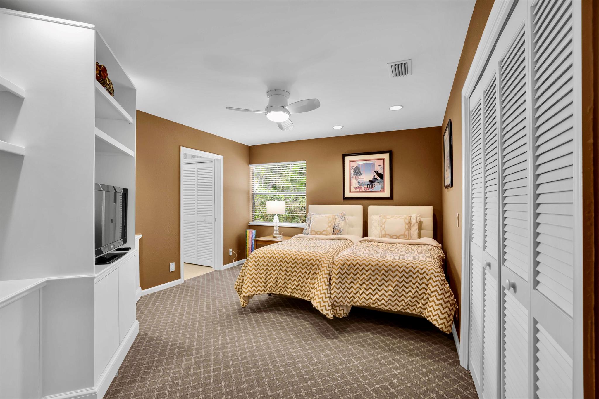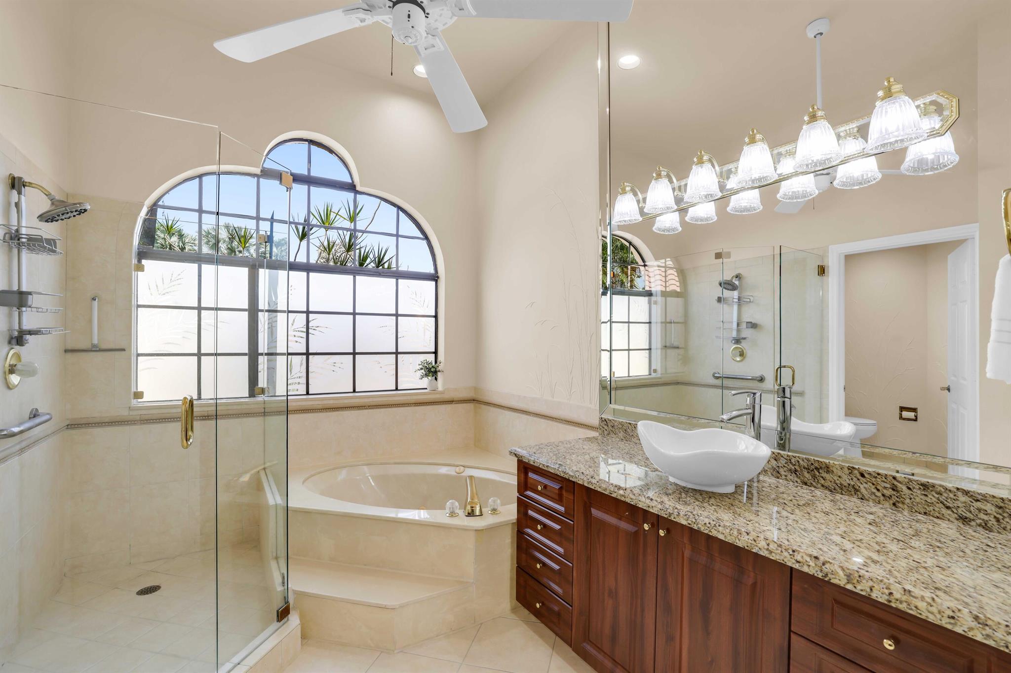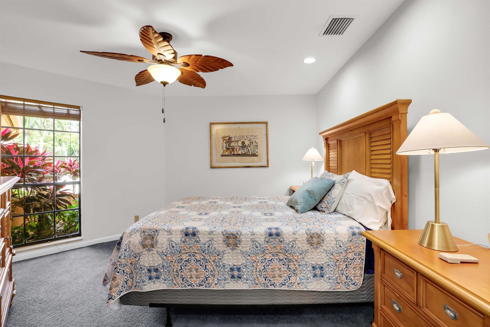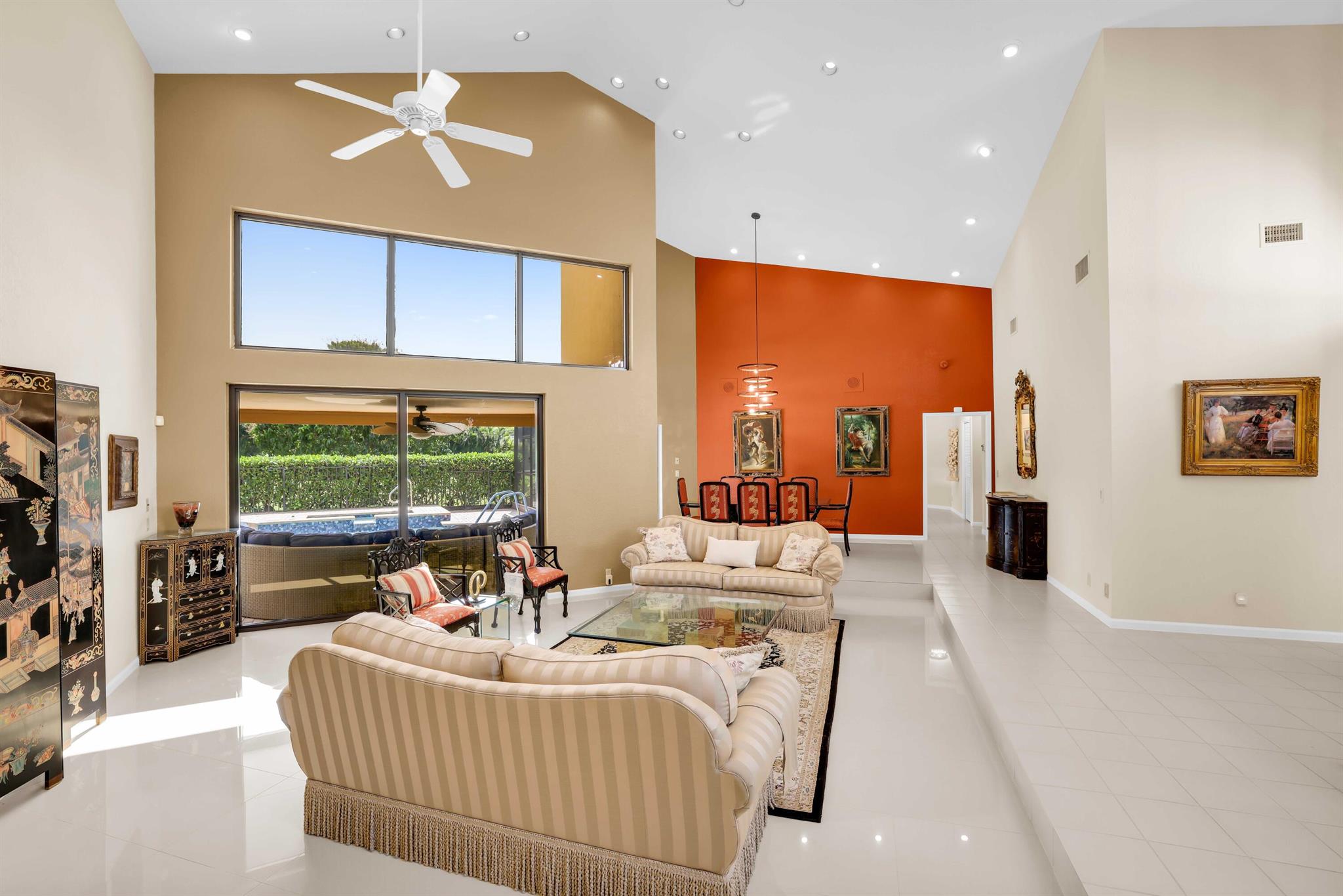 Double door entry opens to large, voluminous living room and views of the sunny backyard with pool, golf and lake views. Located at the end of a quiet cul de sac offers less traffic and safety for kids and pets. Every bedroom is ensuite. FlexSpace used as office, but can be huge pantry, storage or craft room. Pie shaped lot offers HUGE screen porch with summer kitchen. Large paver pool deck and more than ample yard with lake and golf course views. Pool has integrated spa with heater hook up and is heater-ready if you desire. Central Vac, A/C 2022, pool resurfaced 2022, Garage with epoxy flooring, large laundry room, LOTS OF STORAGE. ** See supplements and documents**
