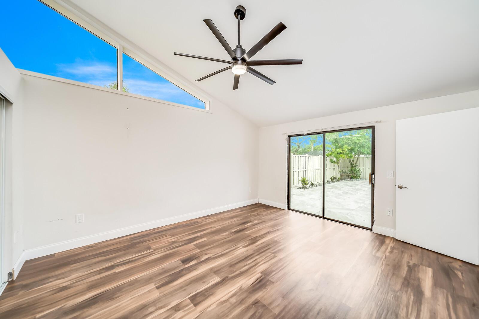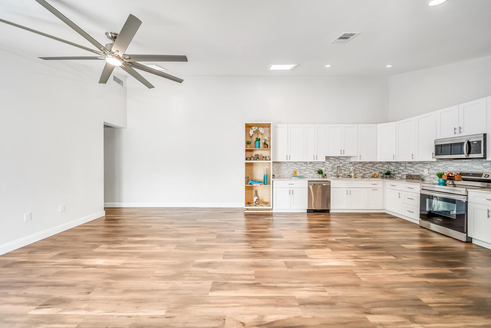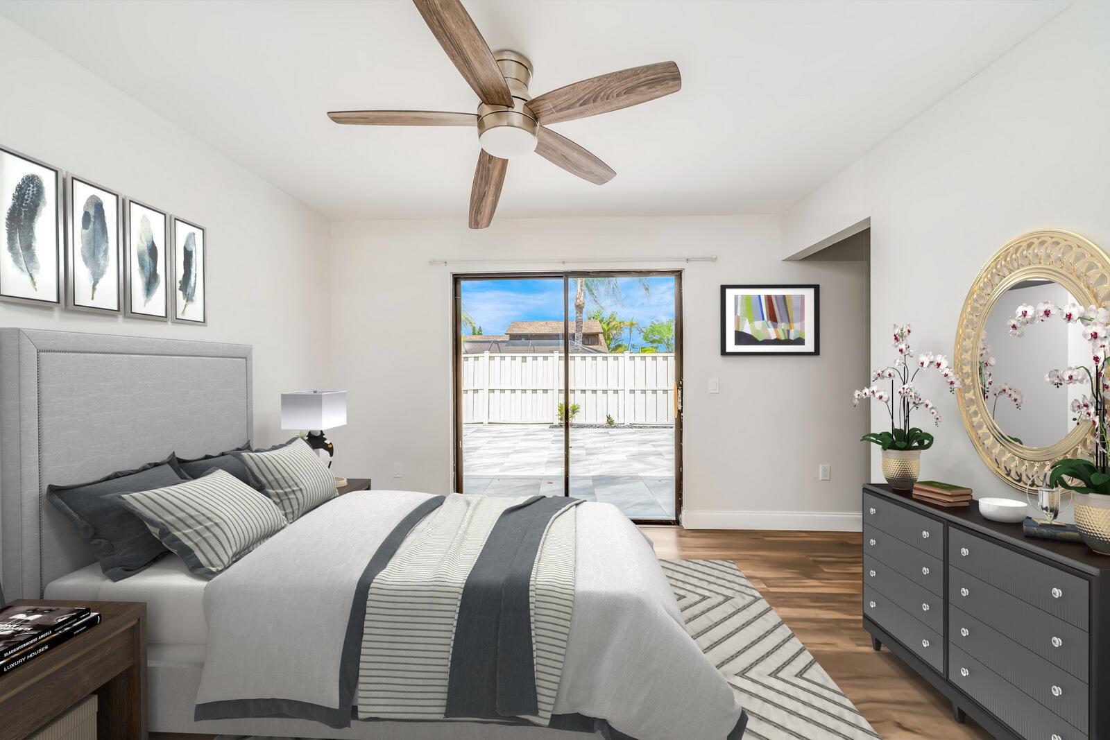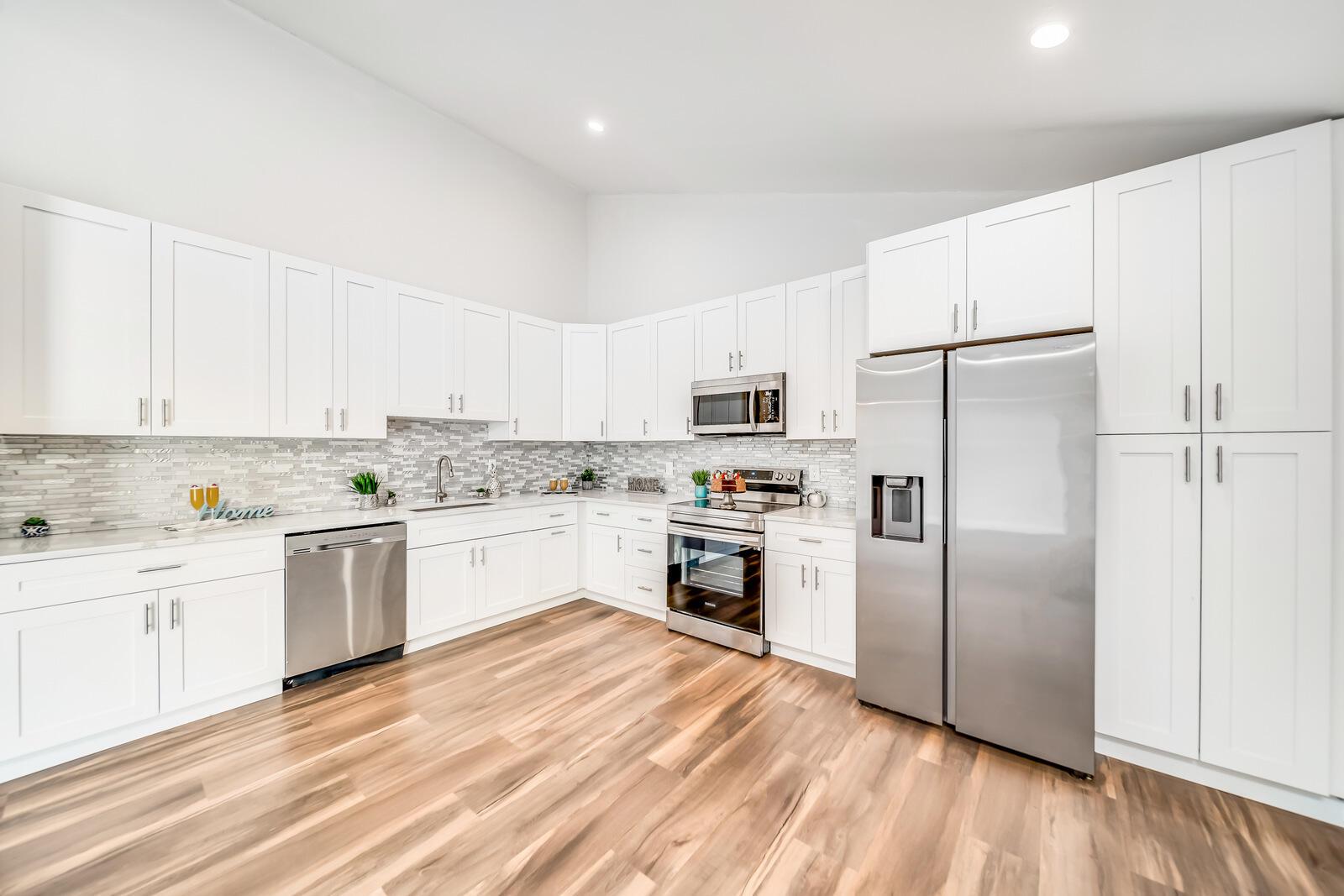 Totally updated, open and bright with soaring vaulted ceilings this townhome features three bedrooms, three-and-a-half-bathrooms, a one-car garage, attached driveway, an assigned parking spot, and guest parking. Private fenced in 800 square feet expansive courtyard entry with tile flooring is perfect for relaxation and entertaining! Luxury vinyl flooring throughout. Gourmet kitchen features newer modern updates including quartz counter tops, glass tile backsplash, stainless appliances, white shaker wood cabinetry, a huge stainless farmhouse sink and more! All bedrooms have there own En Suite bathrooms & all 4 bathrooms are updated. Guest/Cabana bath is convenient for swimmers.
