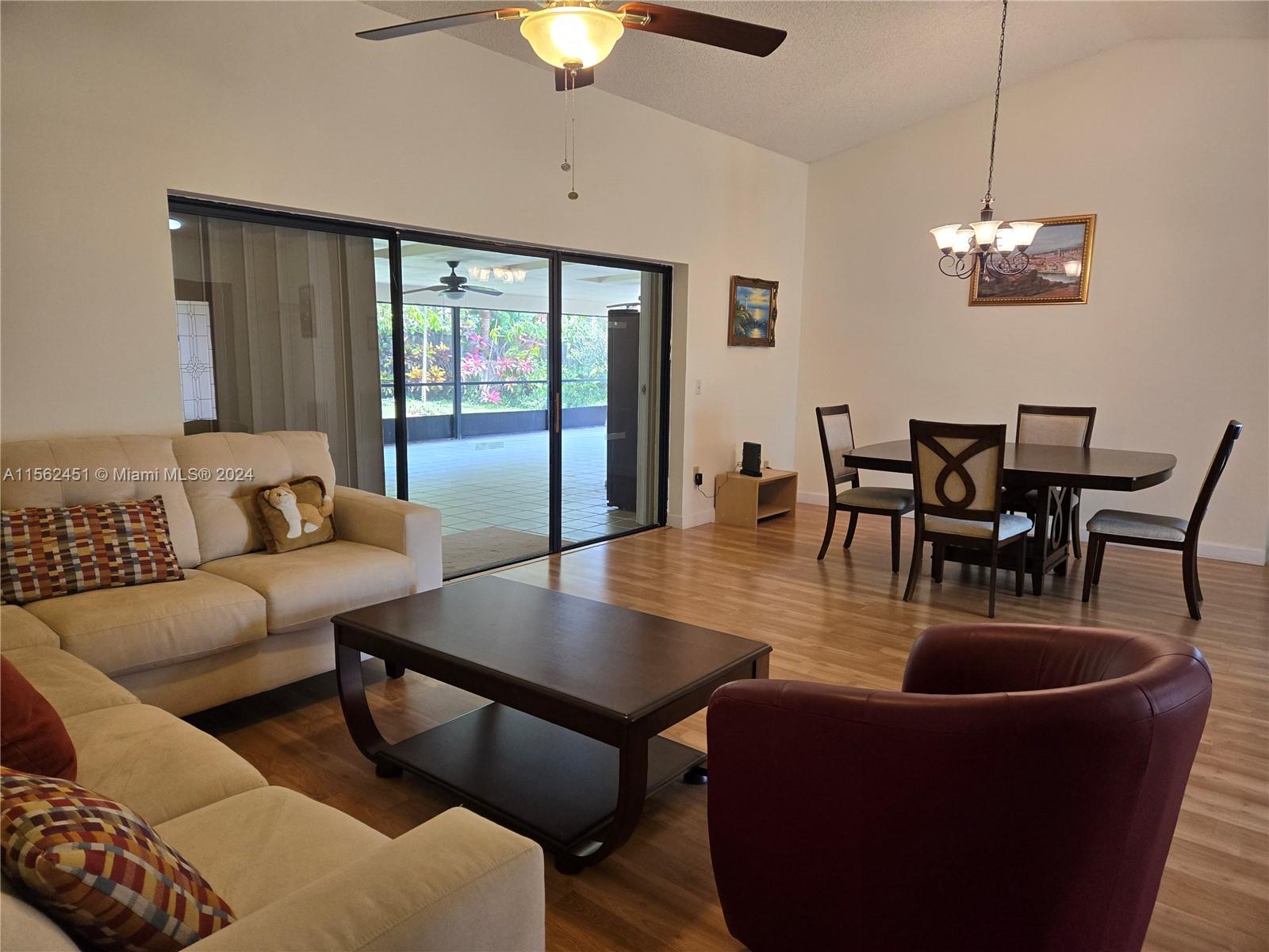 Welcome to this charming home nestled in the highly sought-after Jacaranda Lakes community! With its open floor plan, vaulted ceiling, beautiful features, & central location, this house offers you an incredible opportunity to make a sweet home. The well-laid out home boasts wood/tile floors, updated bathrooms, & much remodeling. Kitchen features granite countertops, wood cabinets, and newer SS appliances. Spacious master suit offers walk-in closet, Roma tub/shower, & double sink vanity. Huge Florida room provides ample space for relaxing, exercise, or entertaining! Accordion hurricane shutters thru out! Serene backyard comes with lovely tropical fruit trees! A city park within the community offers pickleball/tennis courts, playground, & more! Priced to sell!