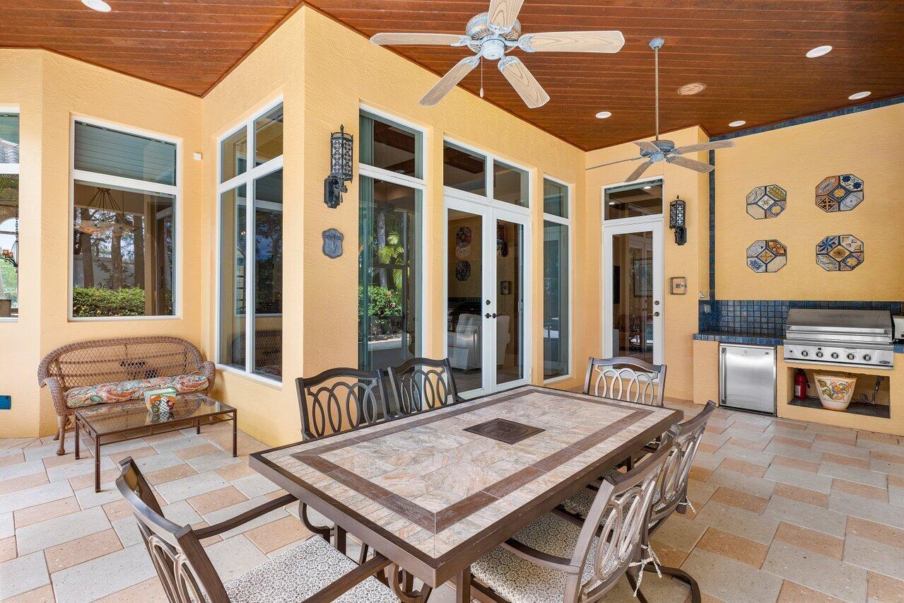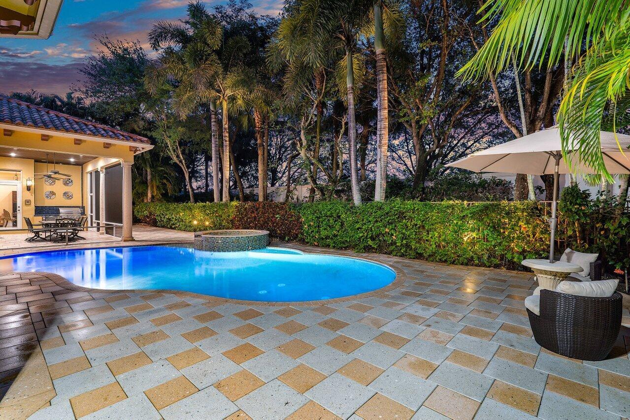Experience multi-faceted sophistication in this one-story timeless gem in the prestigious Grand Estates section of The Oaks. This exquisite Armand estate boasts 4 bedrooms & 51/2 bathrooms. Featuring coffered ceilings, triple crown molding & a luxurious primary suite. Elegant marble floors w/ custom inlays lead you to a sophisticated French-inspired kitchen equipped w/ elite stainless-steel appliances, granite countertops, & a butler's pantry. The primary suite impresses with two bathrooms and dual closets w/ an extravagant ''hers'' dressing room. Outside you find a tropical oasis w/ summer kitchen, heated pool & spa, & a screened covered patio. Complete w/ a whole house generator, impact glass, LED lights, circular driveway & a 3-car garage. The epitome of class & comfort!