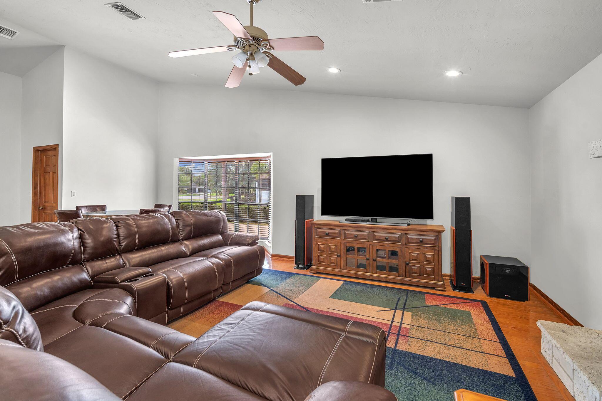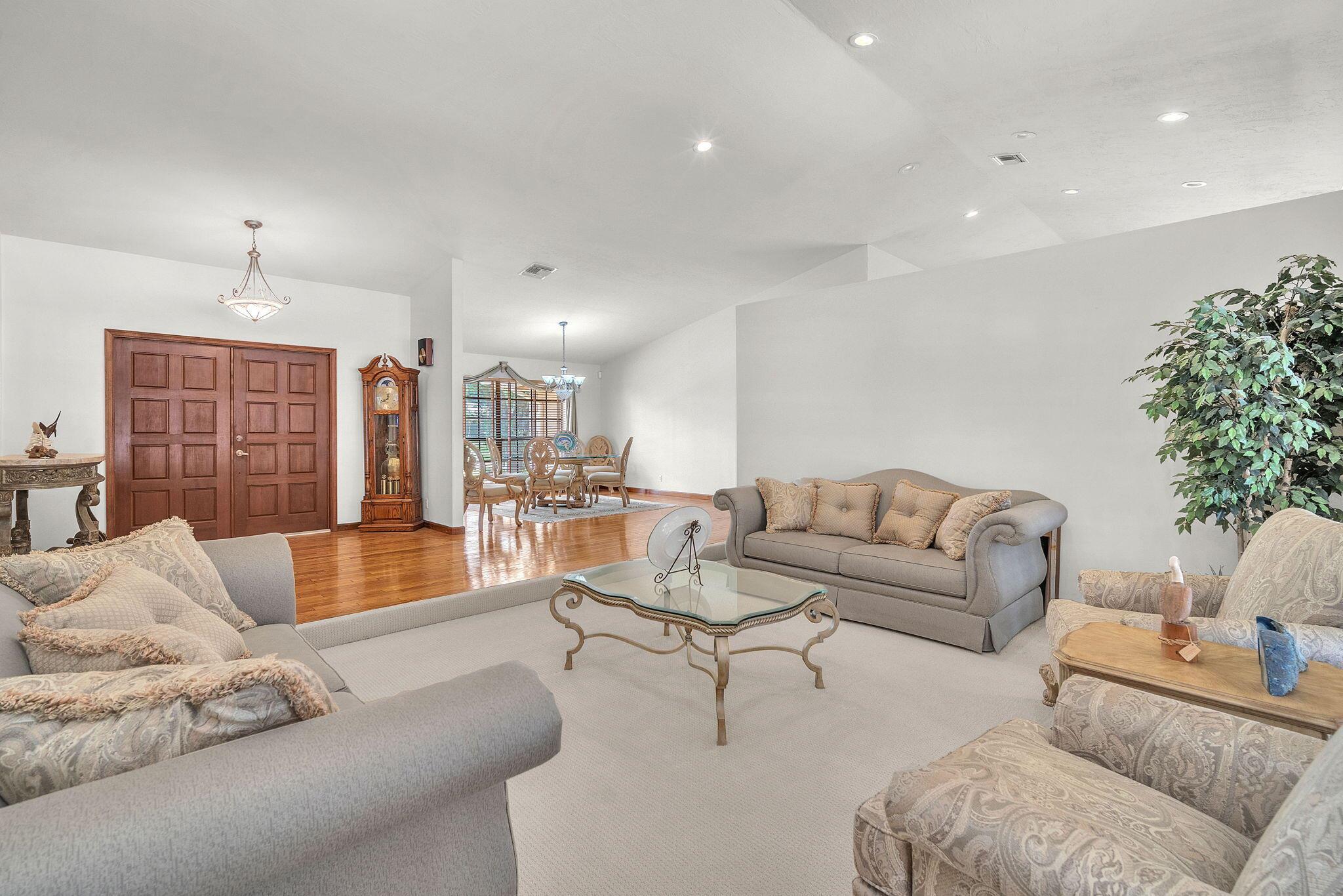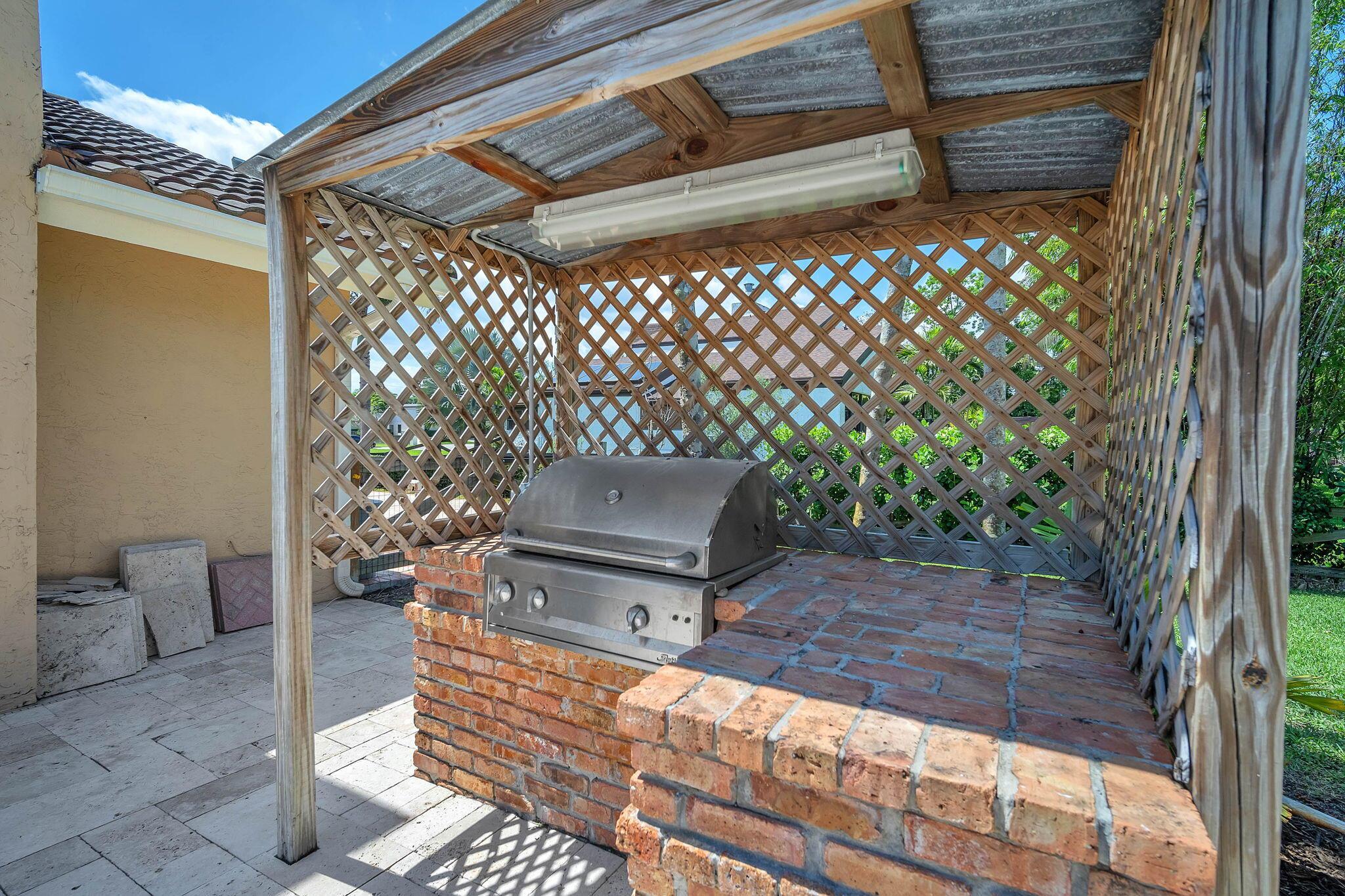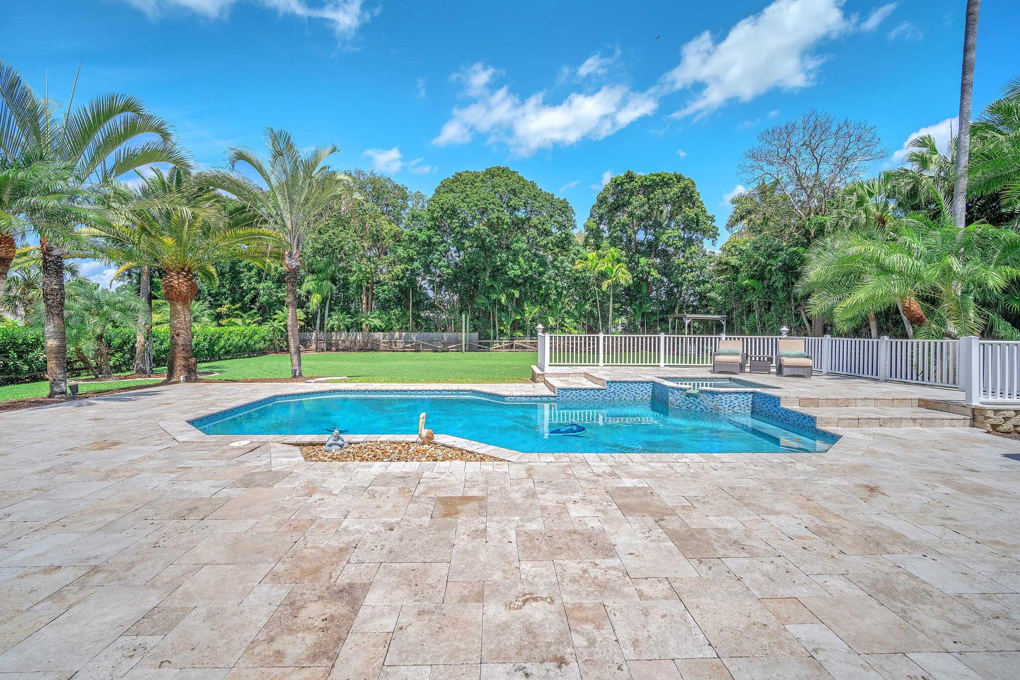 This stunning 4-bed, 3-bath home offers a haven of luxury & comfort. Step inside to discover a formal living room & dining room, ideal for entertaining guests. The large open kitchen featuring double ovens & stainless steel appliances is just perfect for culinary enthusiasts. The master bedroom is a spacious retreat, complemented by a large master bath boasting a soaking tub & walk-in shower. Outside, a screened lanai w/ travertine tile sets the stage for relaxation & outdoor dining, complete w/ an outdoor kitchen. The pool & spa provide a refreshing escape, surrounded by ample space for sunbathing & lounging. The property is fenced in, offering security & privacy. This home is a sanctuary of upscale living, blending indoor elegance and outdoor charm