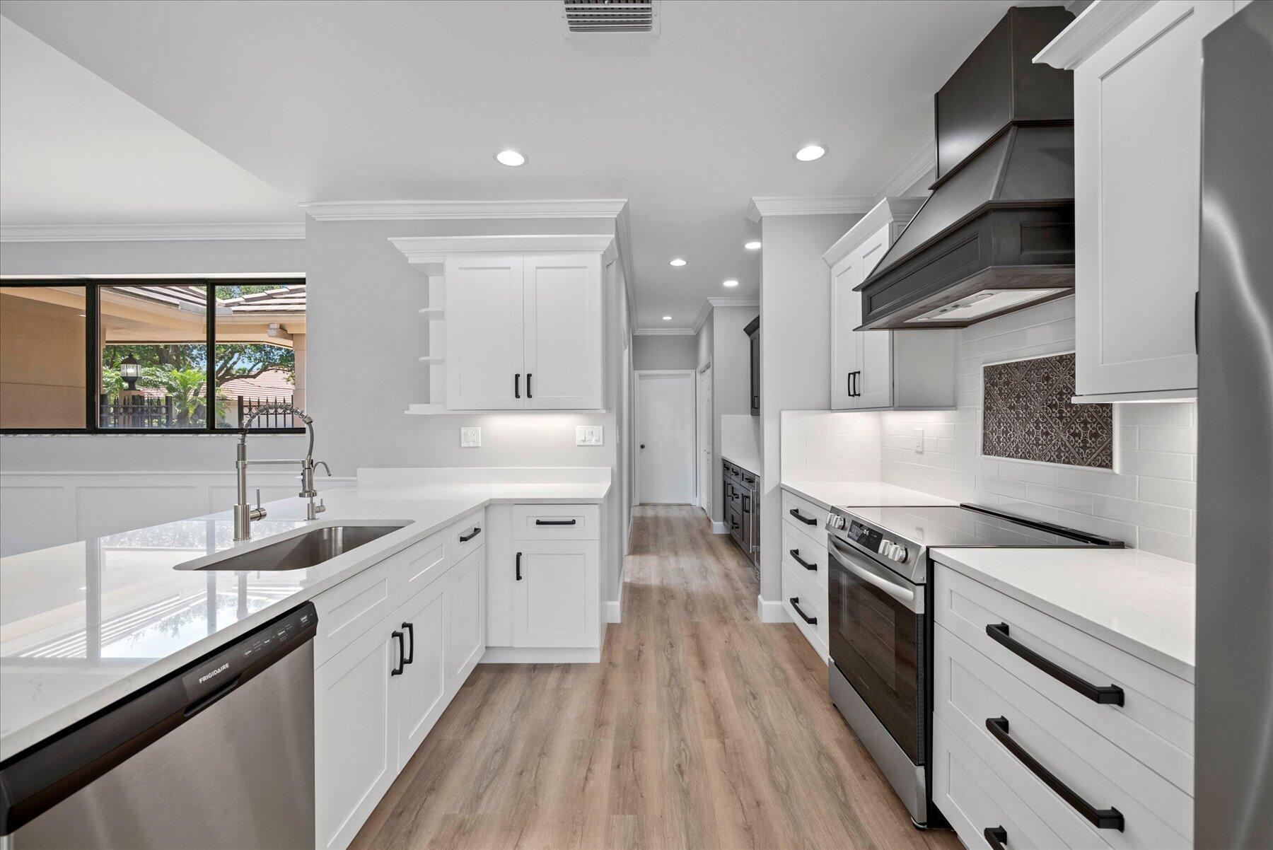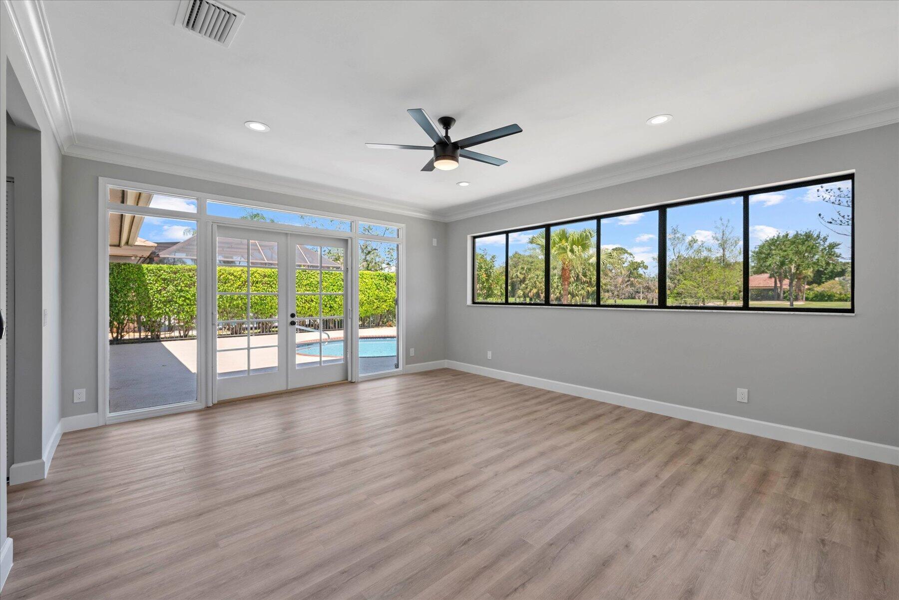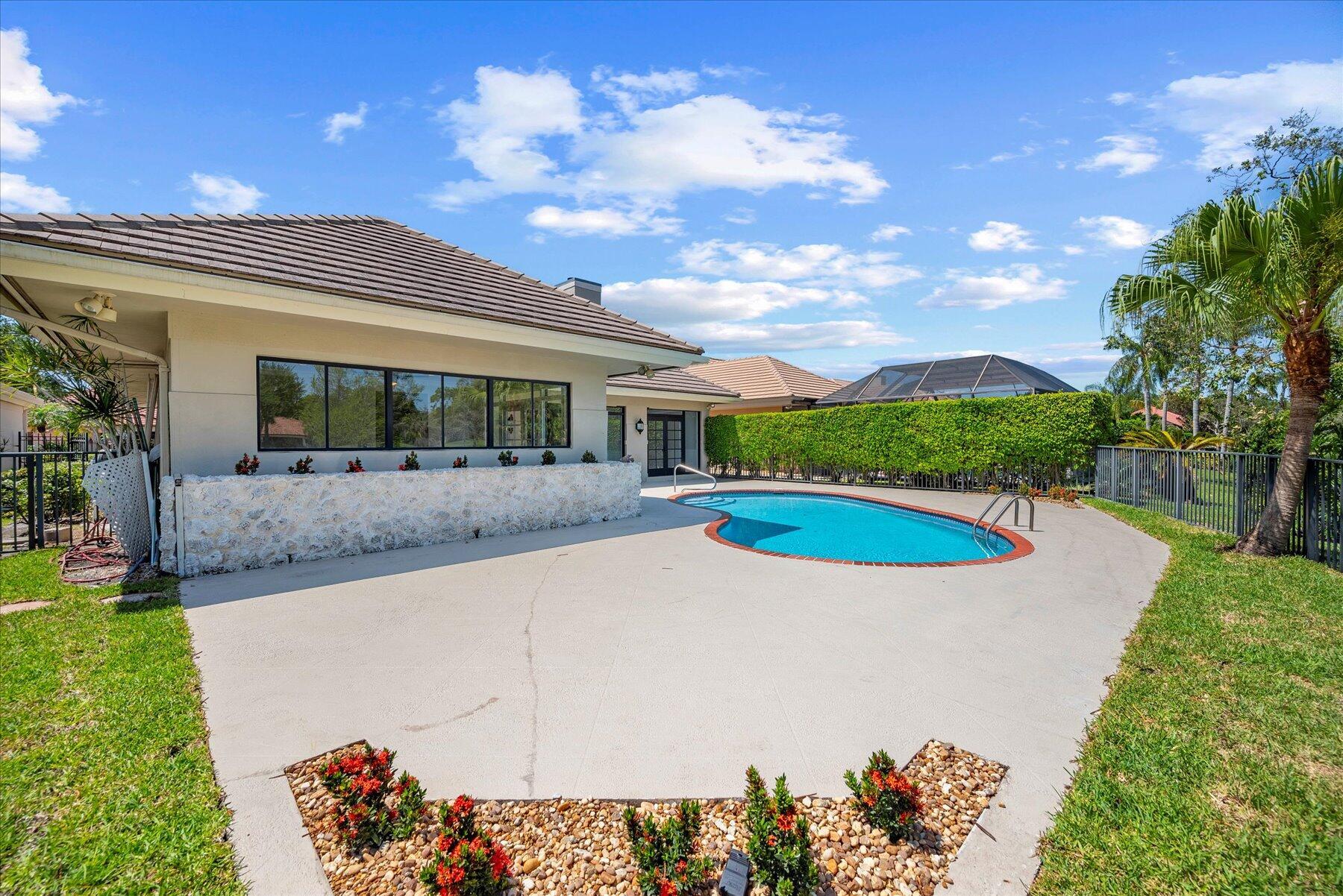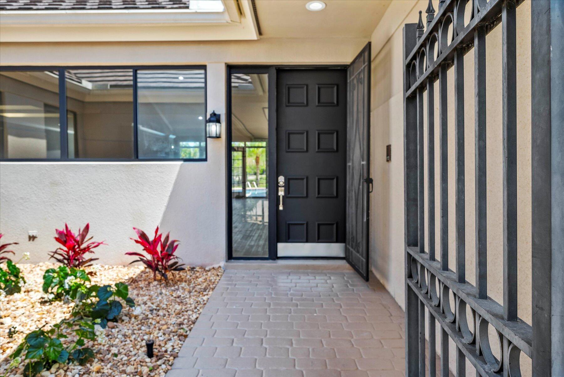Welcome to this exquisite three-bedroom, two-bathroom home nestled within an exclusive gated community. Totally renovated, this prestigious residence boasts unparalleled luxury with renowned award-winning golf courses just steps away. Enjoy opulent living with a private pool overlooking breathtaking views of both the serene lake and the lush greens of the prestigious golf course. With its upscale amenities and unrivaled location, this home offers everything you could ask for including refined living in a secluded paradise. Also offers peace of mind to know home has all the necessary features for hurricane protection and a roof installed in 2016. The Rees Jones golf course and clubhouse has been totally renovated. Should you join the club, You'll also have full access to the club's