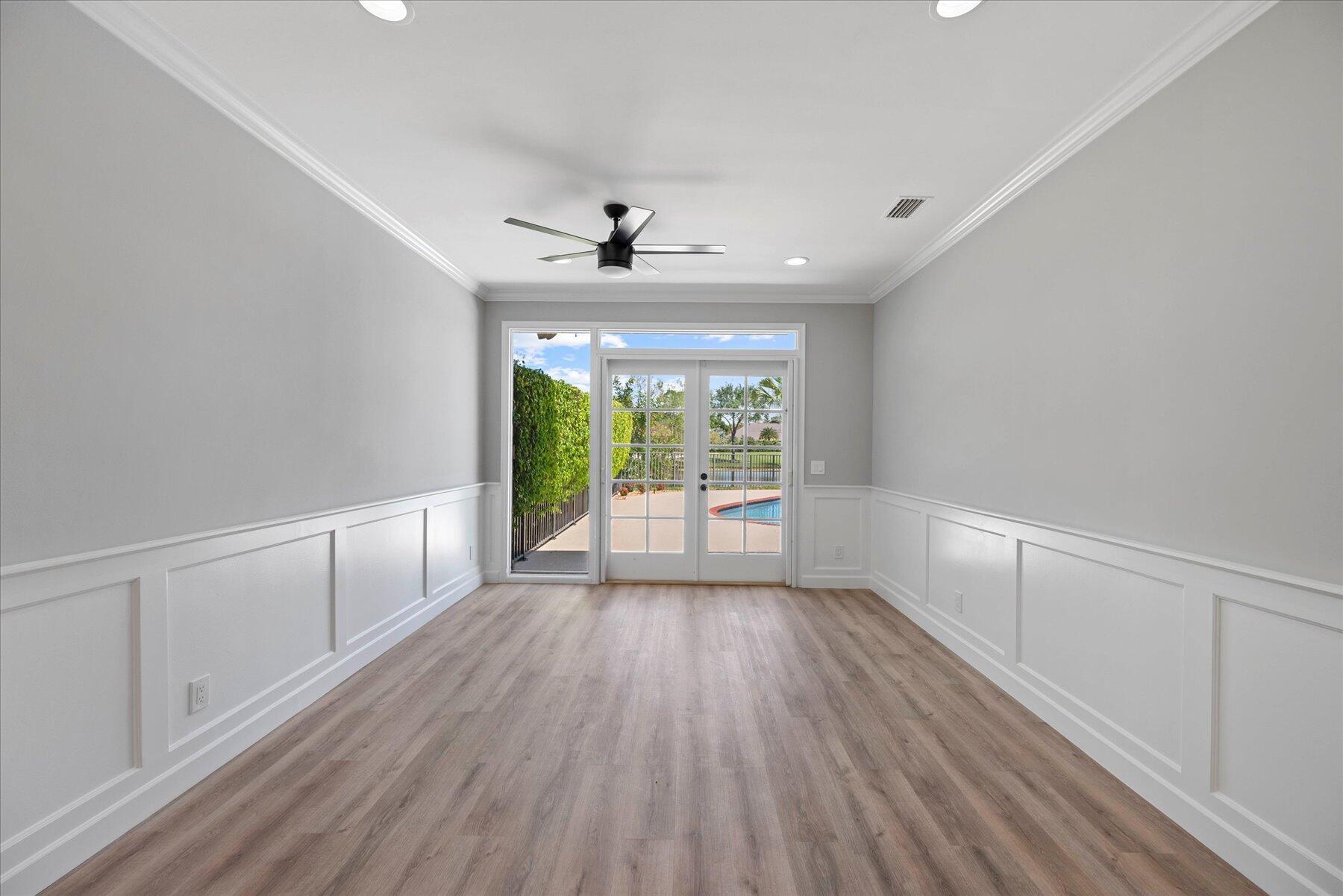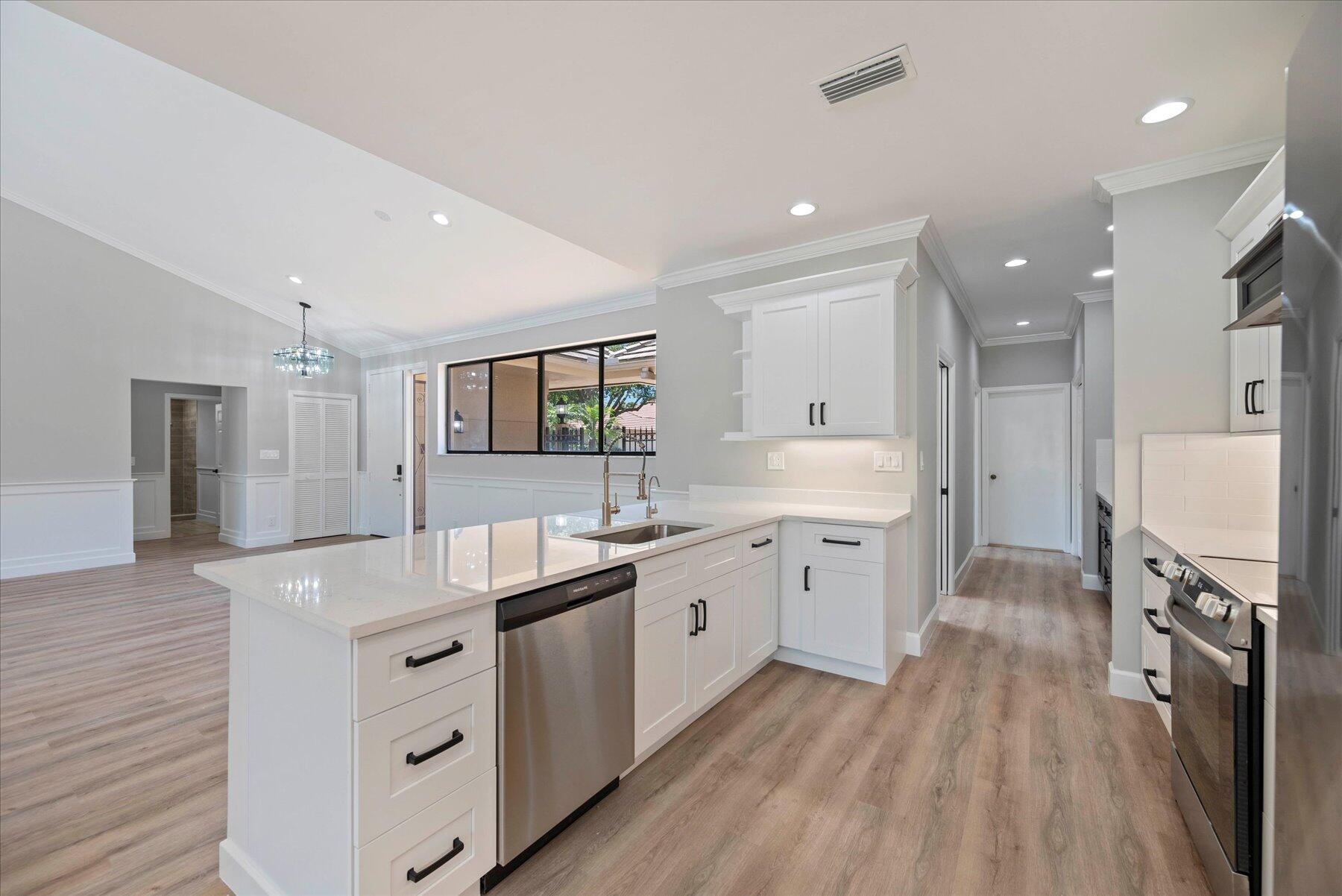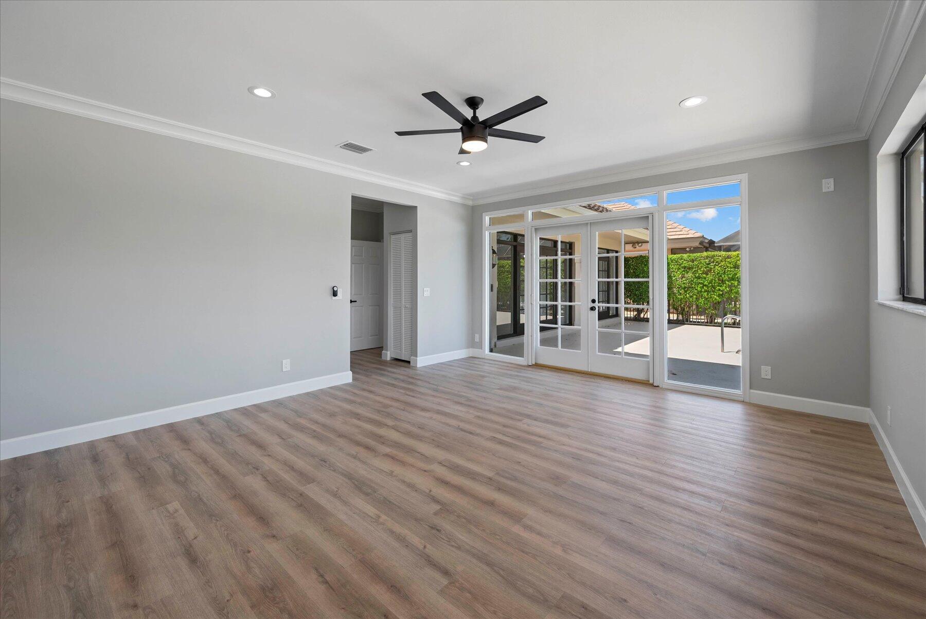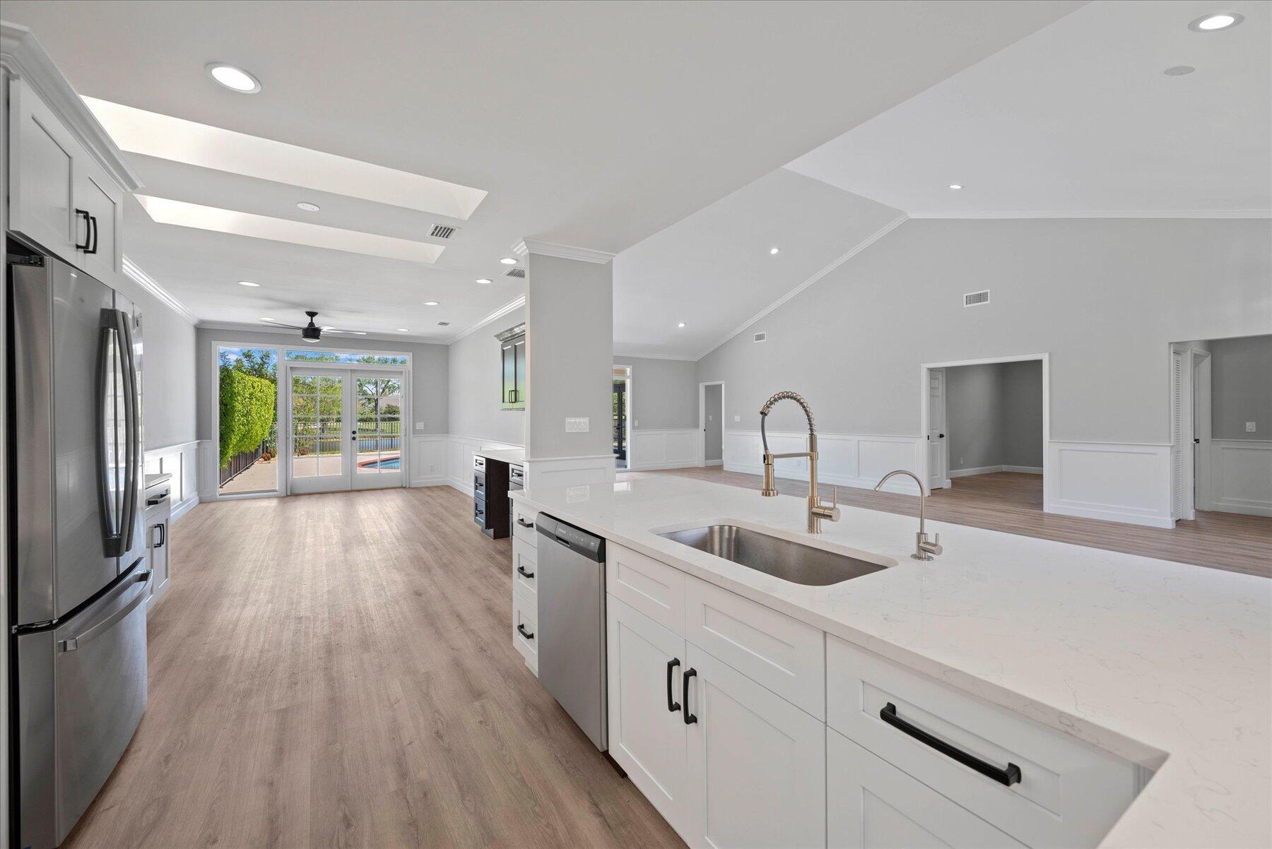 Welcome to this exquisite three-bedroom, two-bathroom home nestled within an exclusive gated community. Totally renovated, this prestigious residence boasts unparalleled luxury with renowned award-winning golf courses just steps away. Enjoy opulent living with a private pool overlooking breathtaking views of both the serene lake and the lush greens of the prestigious golf course. With its upscale amenities and unrivaled location, this home offers everything you could ask for including refined living in a secluded paradise. Also offers peace of mind to know home has all the necessary features for hurricane protection and a roof installed in 2016. The Rees Jones golf course and clubhouse has been totally renovated. Should you join the club, You'll also have full access to the club's