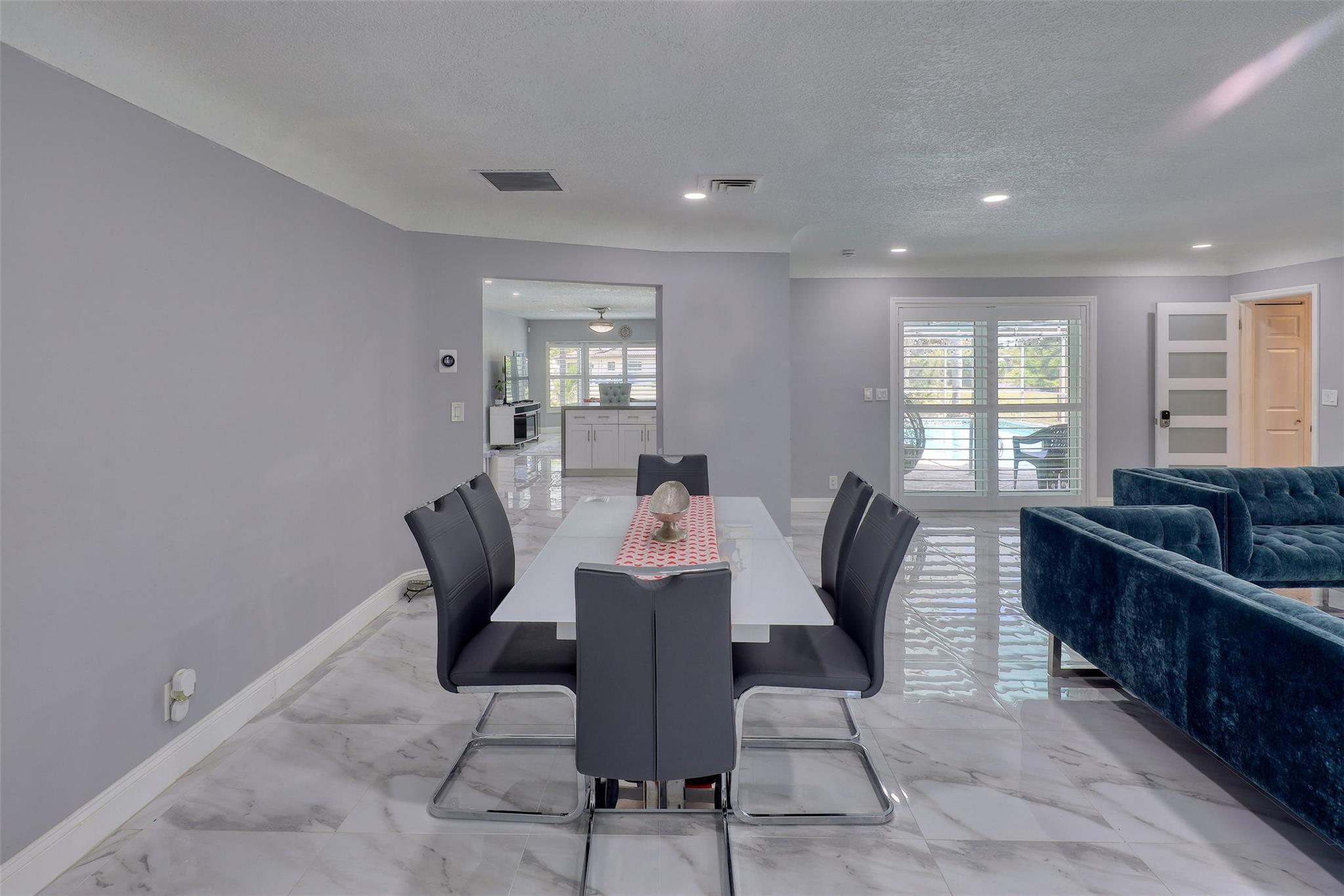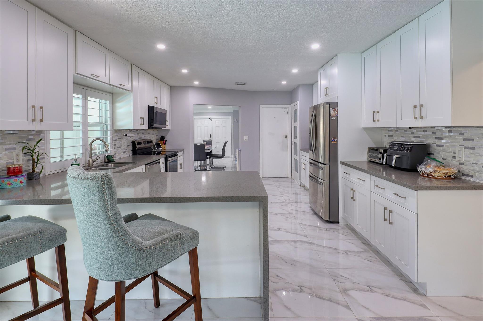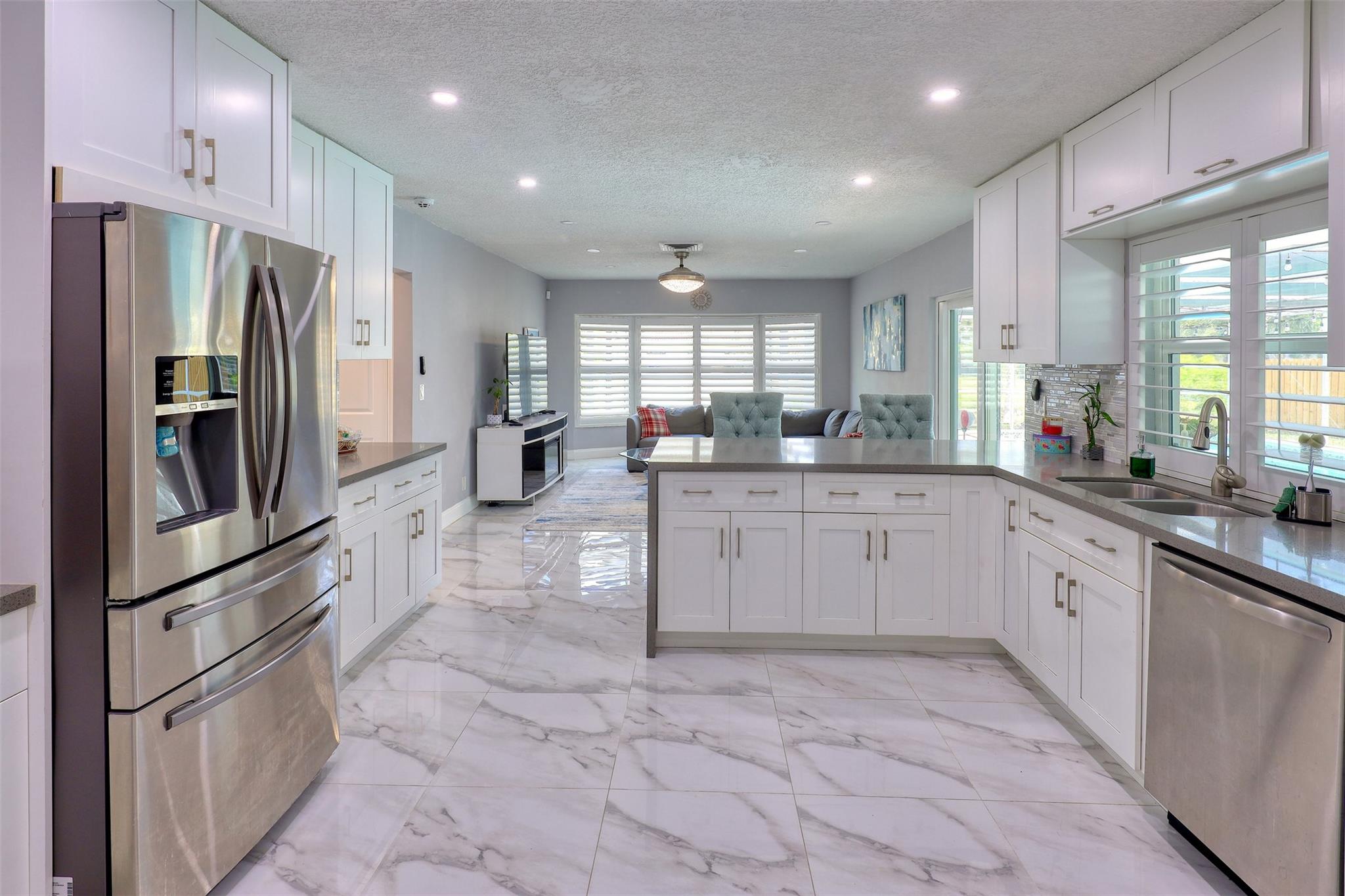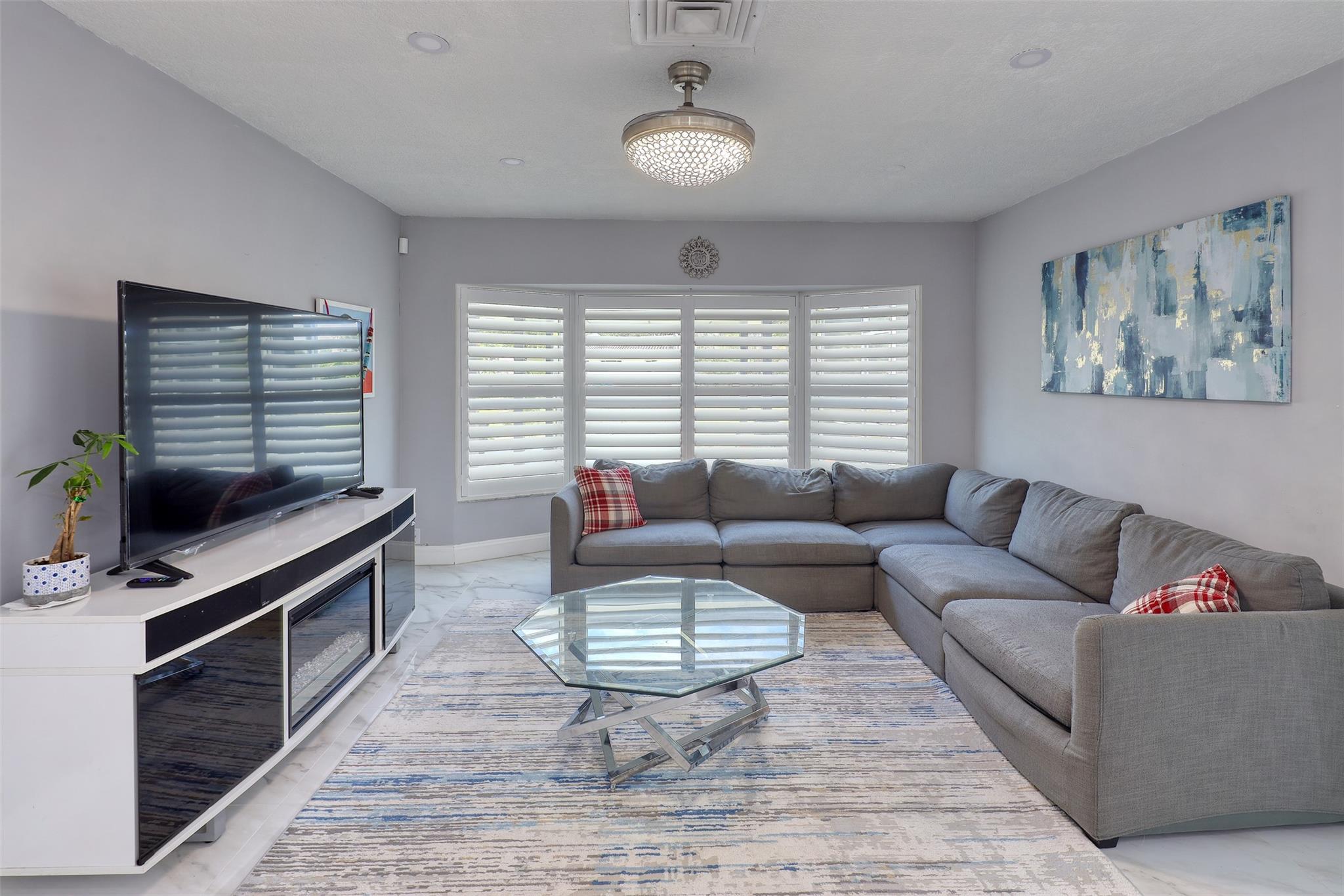 Entertainer's paradise in Coral Springs. This beautifully remodeled home boasts impact doors and windows, ensuring both safety and tranquility. Upon entering, you'll be greeted by tasteful upgrades such as recessed lighting and plantation shutters, along with bright porcelain flooring that spans the split floor plan layout. The home's inviting flow guides you seamlessly from the living room through the kitchen to the family room. The bathrooms are a highlight, featuring curb-less showers and lighted mirrors. Step outside through one of the two sets of sliding doors to the pool area, where you'll find a cabana bath, ample covered space with lights and fans, and a screened-in heated pool with a view to impress. Enjoy the serene ambiance of mature palm trees and peaceful water views. No HOA.