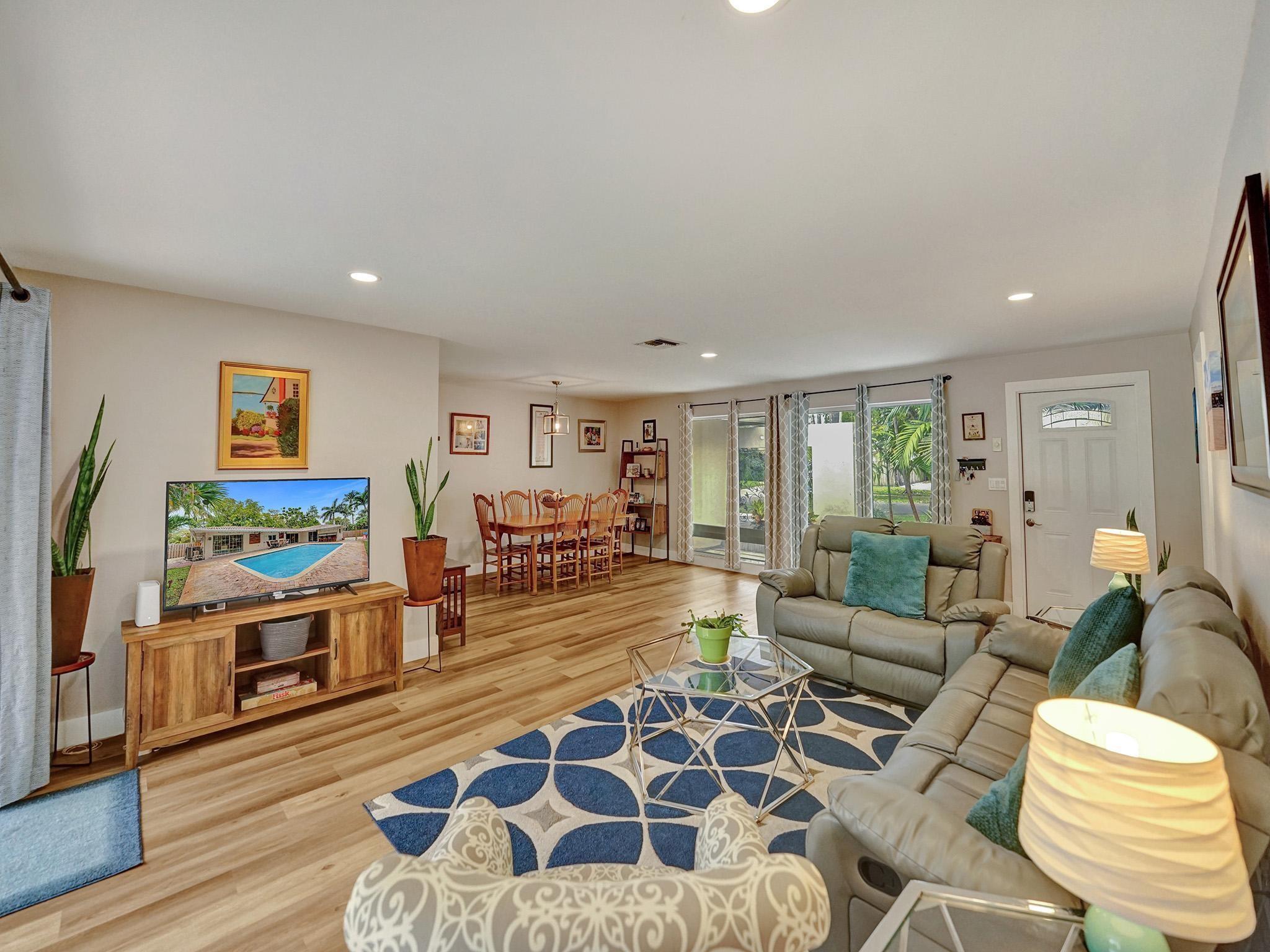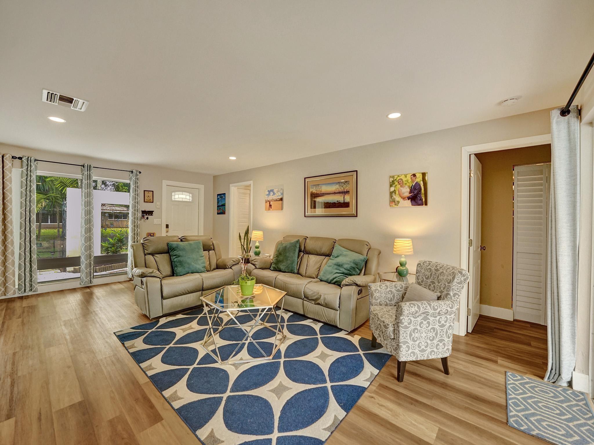 Beautifully renovated 3 bedroom 3 bathroom pool home on over a 1/4 acre lot. This house is located in the highly desirable area of Plantation on a charming tree lined street in a quiet neighborhood. Newly renovated Kitchen with ample Quartz counter tops, stainless steel appliances with breakfast nook. All 3 Bathrooms are fully renovated. The spacious Living room boasts lots of natural light with a view of your backyard oasis, covered patio and heated pool. Flooring is waterproof vinyl wood plank throughout. Roomy master bedroom with walk in built out closet. Split floor plan. All Hurricane windows except for sliding glass doors. Laundry room under air. NEW ROOF in the process of being installed. Smart home capabilities and room for RV or boat parking thru wide gate.