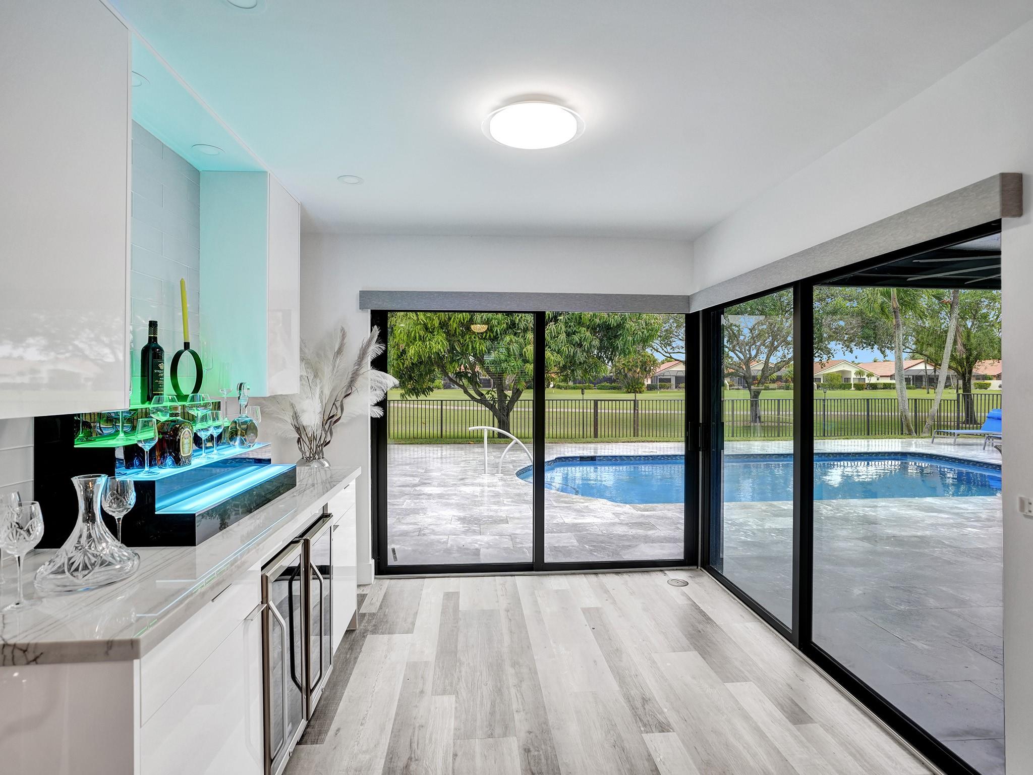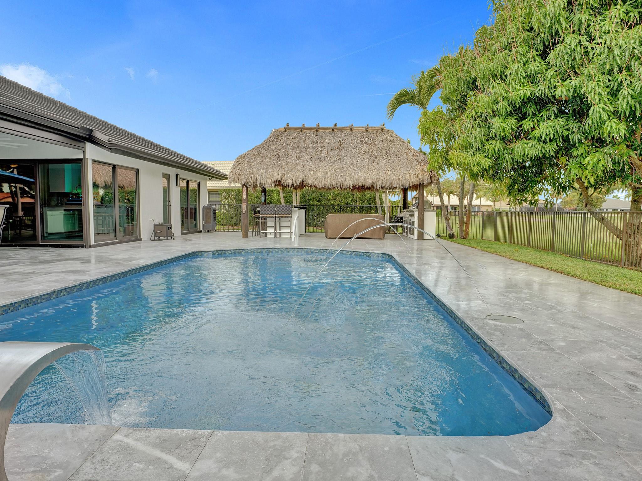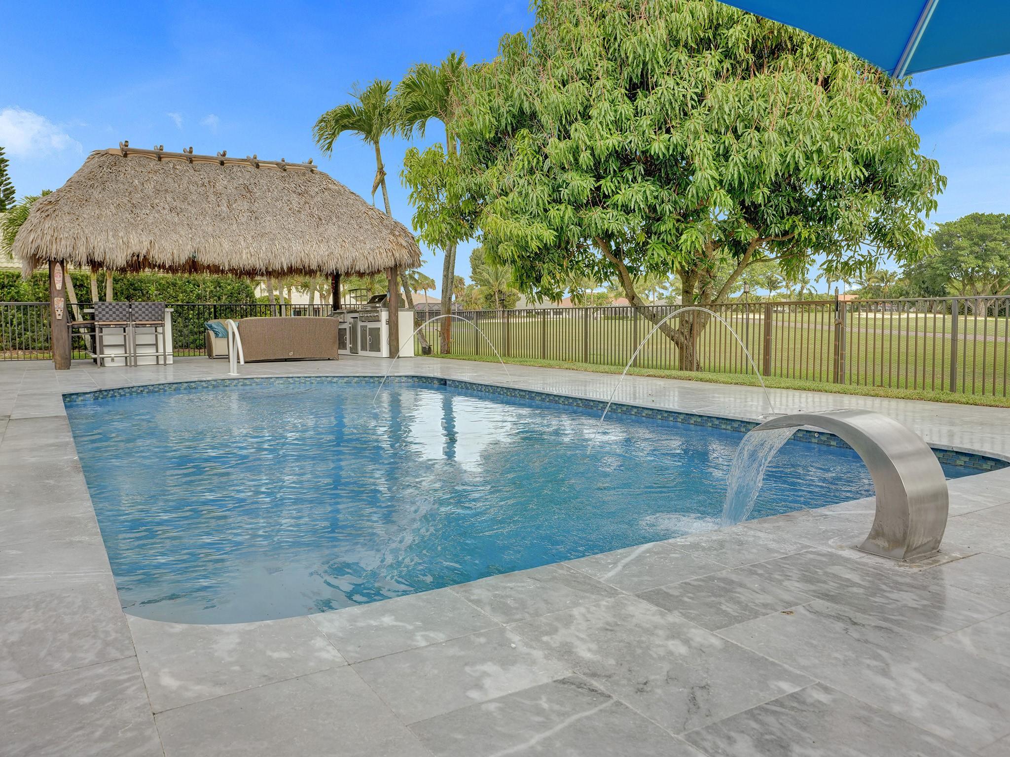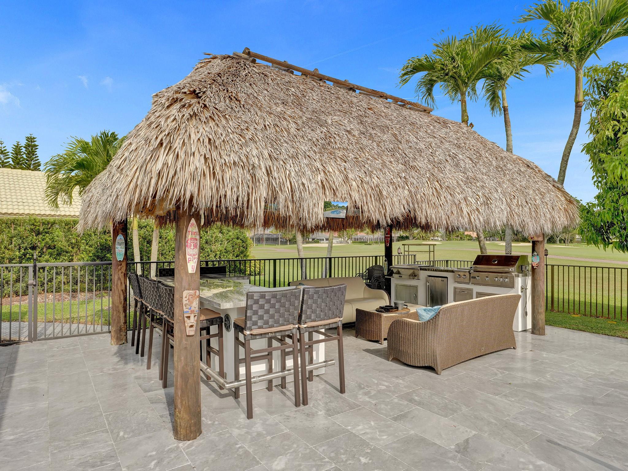 Step into luxury living at its finest with this completely renovated four-bedroom, three-full-bath oasis nestled within the exclusive Boca Woods Country Club. Prepare to be wowed as you enter this upscale spa-like home, boasting a vacation-worthy backyard featuring a saltwater heated/chilled pool, enchanting Tiki Hut, and a Paradise Grill bar, all illuminated by captivating lights. With hurricane windows and doors, enjoy peace of mind while indulging in the resort-style Amenities of Boca Woods, including a state-of-the-art gym, spa, and exquisite dining options. Explore the lush landscape with your personal golf cart, traversing the two championship golf courses. Take advantage of the mandatory membership, with a $20,000 rebate upon sale, and discover the epitome of turnkey luxury living.