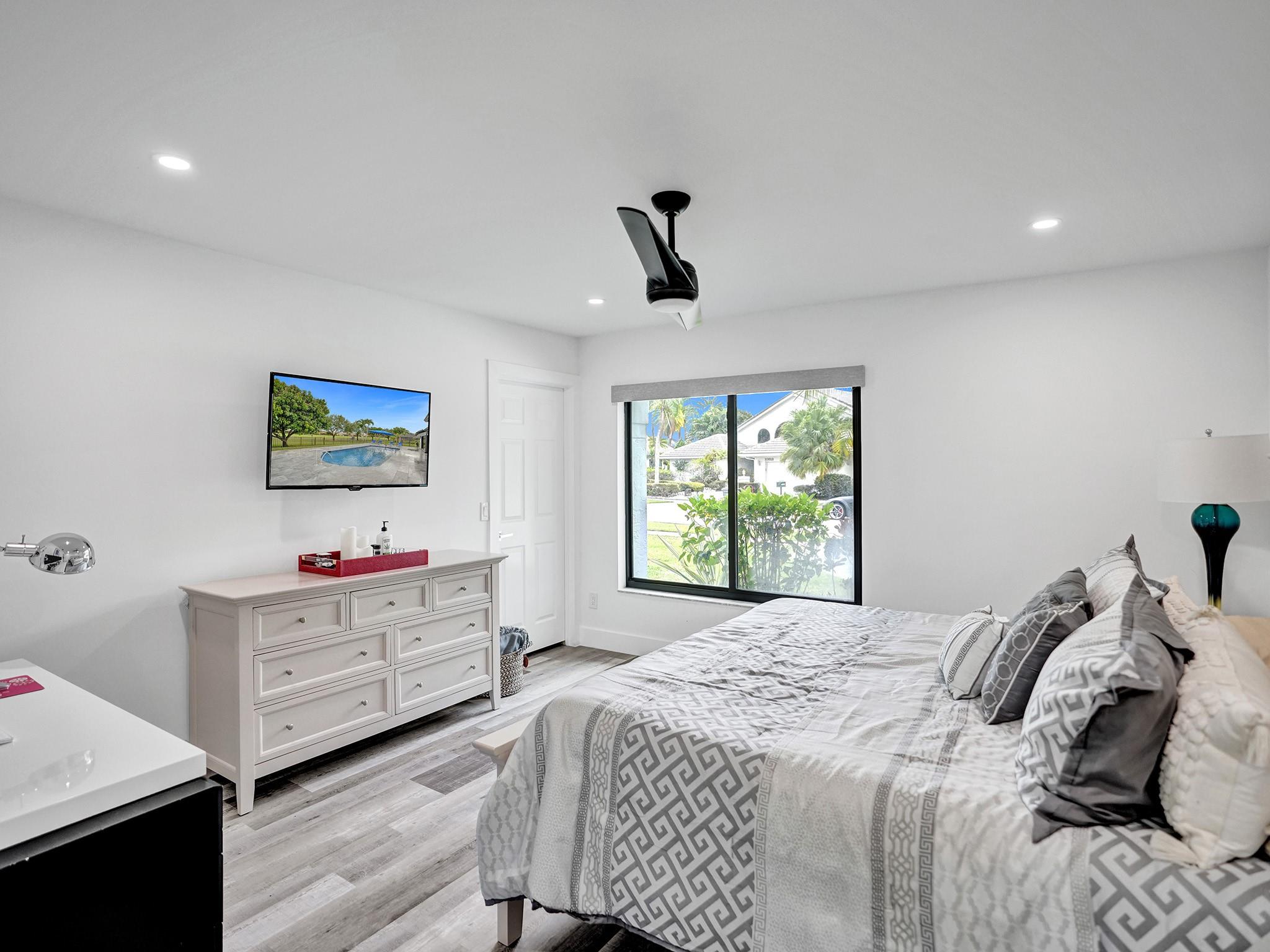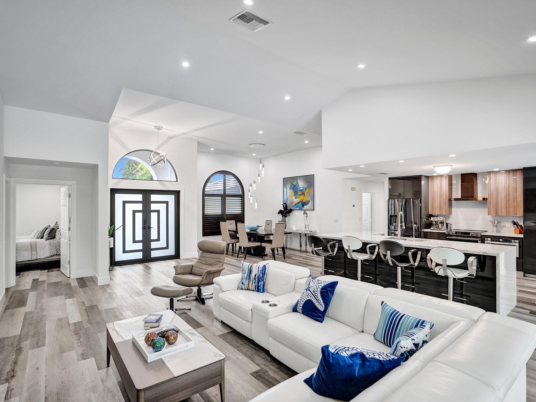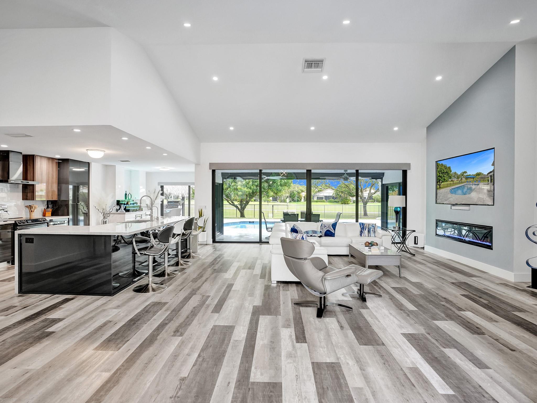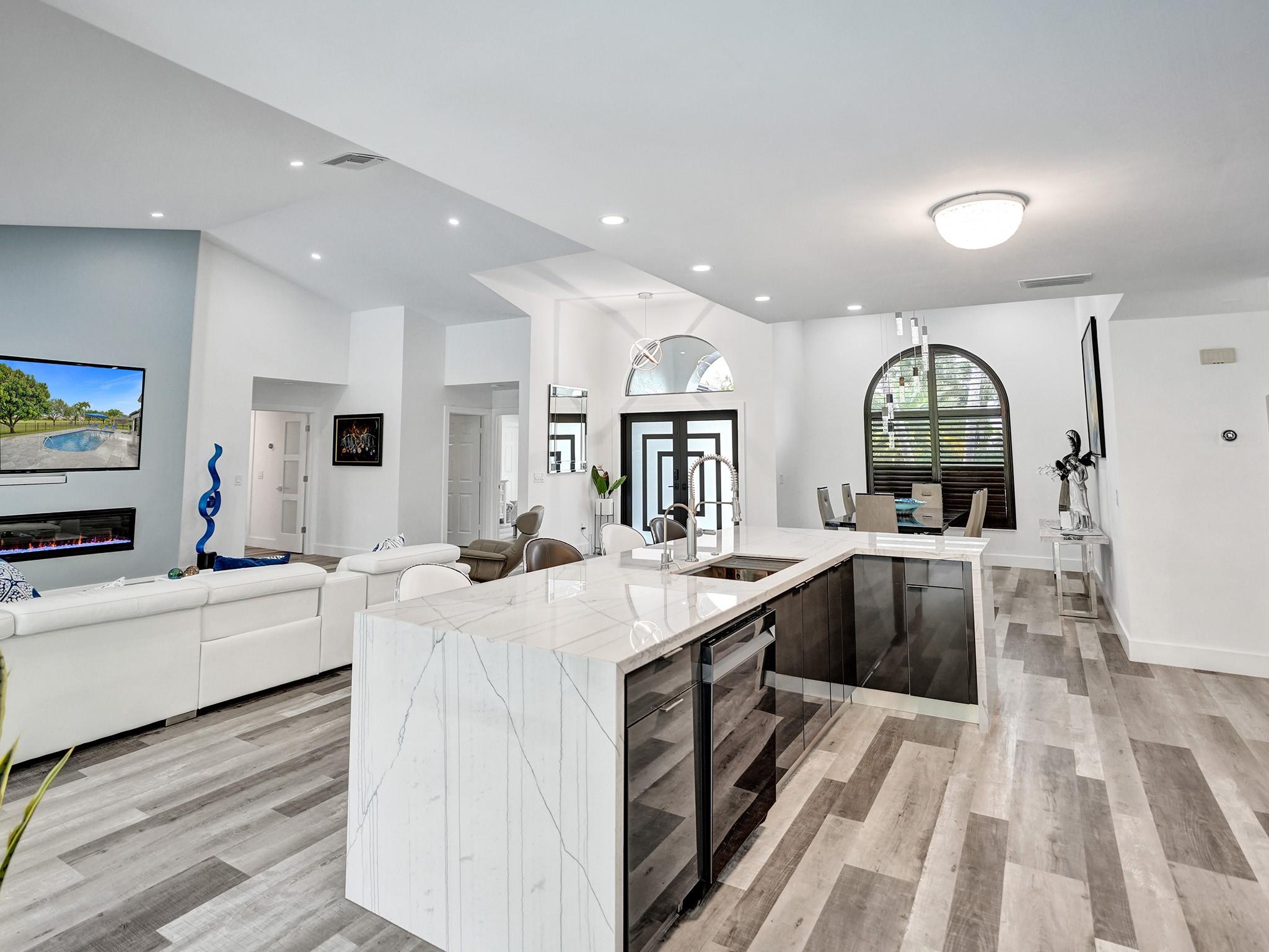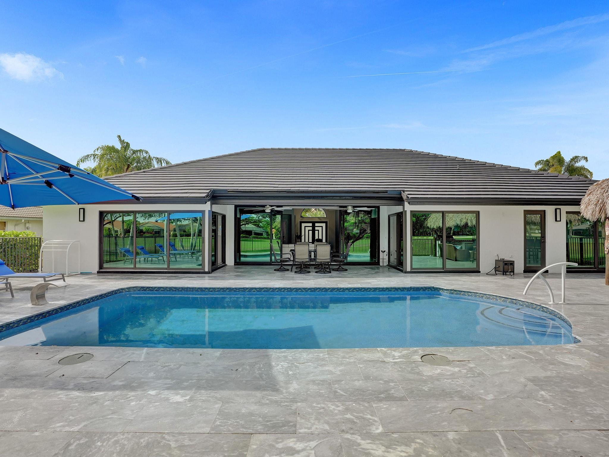 Step into luxury living at its finest with this completely renovated four-bedroom, three-full-bath oasis nestled within the exclusive Boca Woods Country Club. Prepare to be wowed as you enter this upscale spa-like home, boasting a vacation-worthy backyard featuring a saltwater heated/chilled pool, enchanting Tiki Hut, and a Paradise Grill bar, all illuminated by captivating lights. With hurricane windows and doors, enjoy peace of mind while indulging in the resort-style Amenities of Boca Woods, including a state-of-the-art gym, spa, and exquisite dining options. Explore the lush landscape with your personal golf cart, traversing the two championship golf courses. Take advantage of the mandatory membership, with a $20,000 rebate upon sale, and discover the epitome of turnkey luxury living.