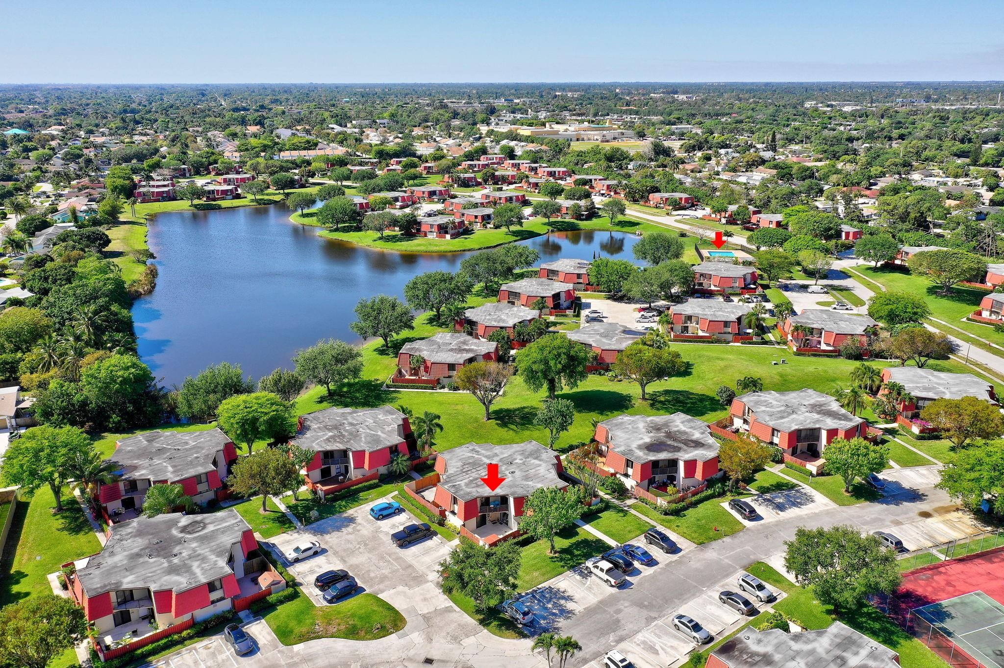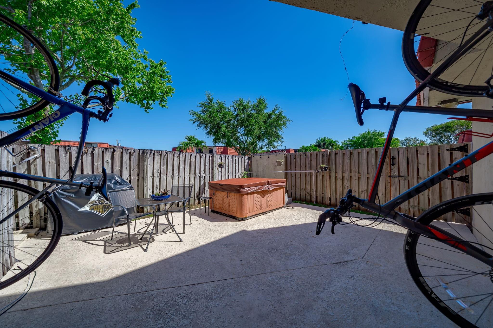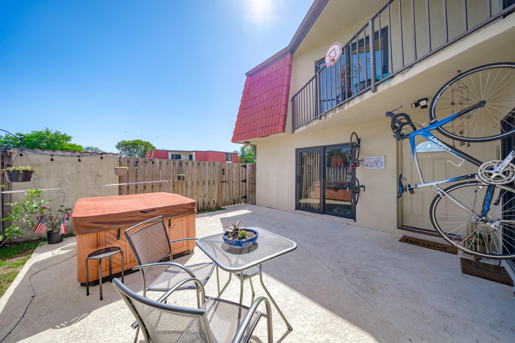 Rarely available Townhouse in this well kept community. Fenced front yard with a hot tub for relaxing evenings and fun family times. New Impact windows and doors. Roof is covered by the HOA. Lake front pool just steps from the unit. No current assessments. This Townhouse is a perfect place to call home. Full size washer and dryer in the unit, extra storage outside.