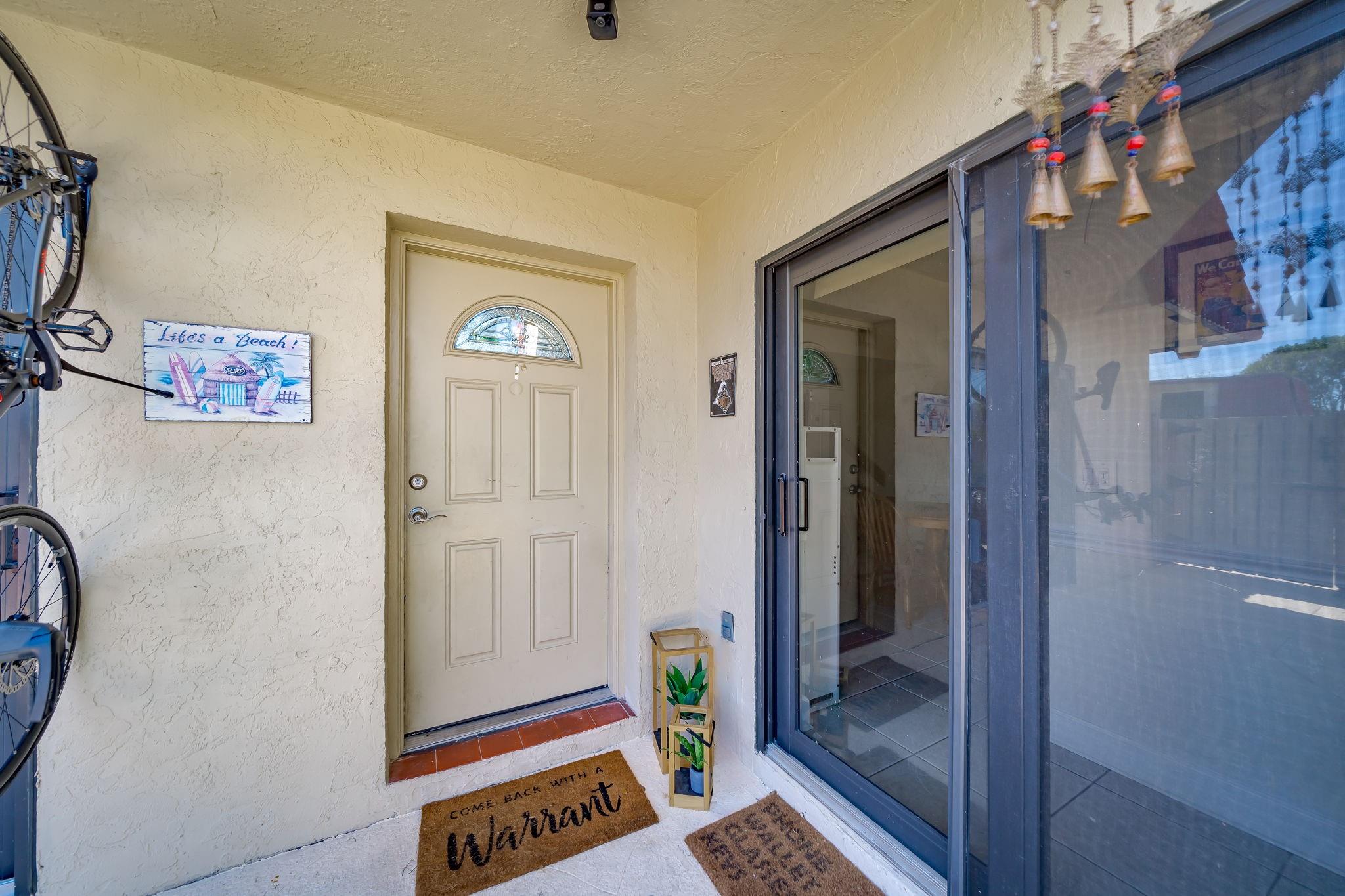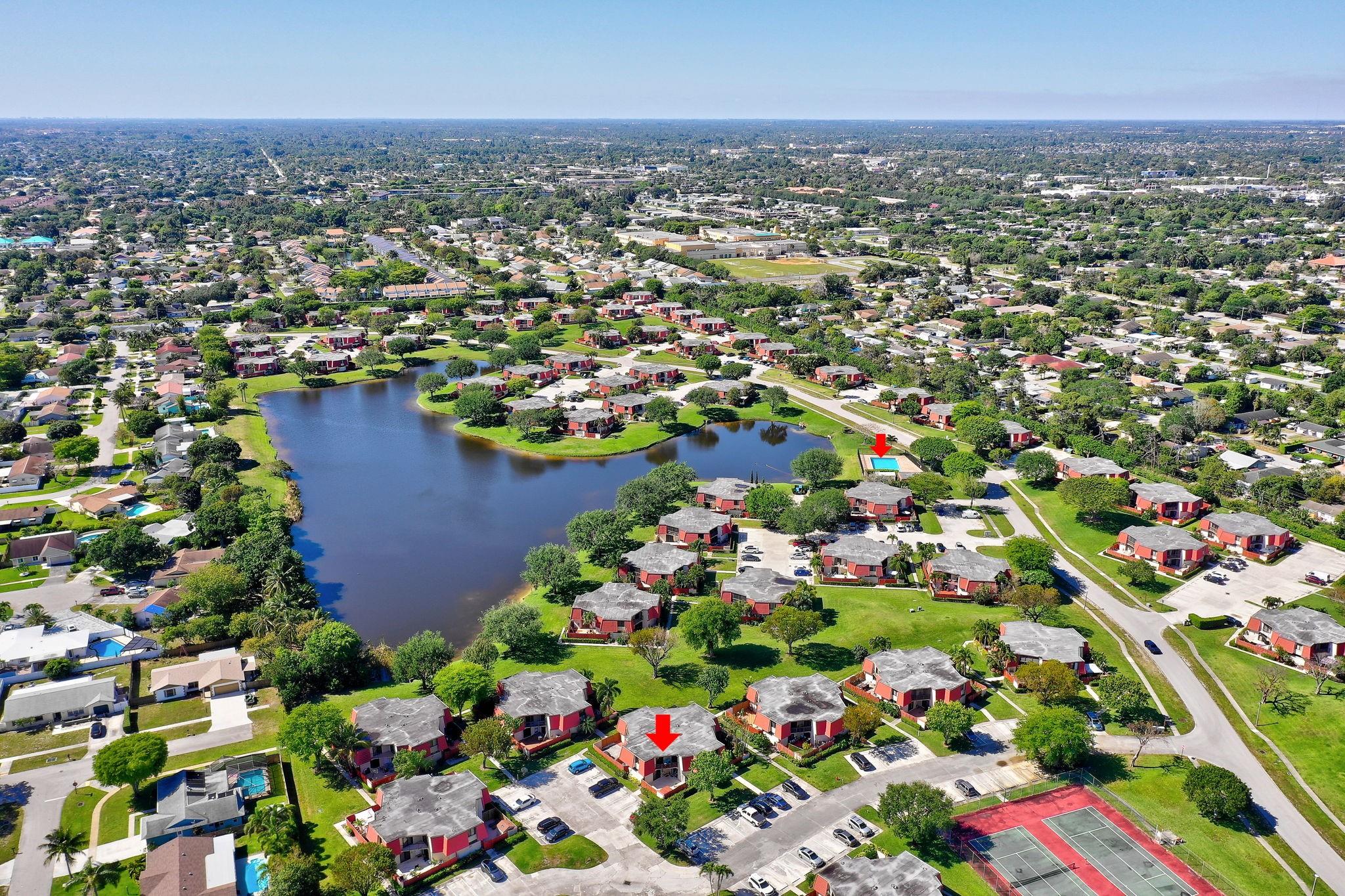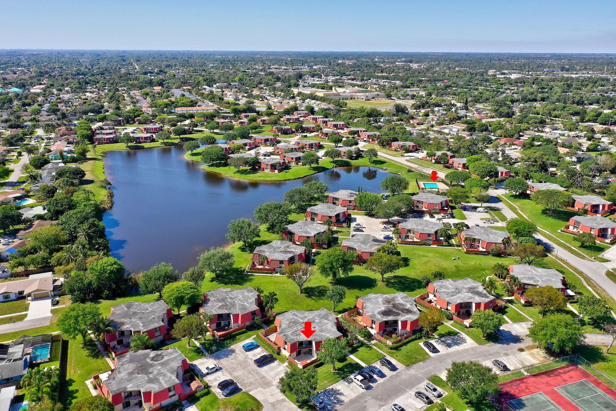 Rarely available Townhouse in this well kept community. Fenced front yard with a hot tub for relaxing evenings and fun family times. New Impact windows and doors. Roof is covered by the HOA. Lake front pool just steps from the unit. No current assessments. This Townhouse is a perfect place to call home. Full size washer and dryer in the unit, extra storage outside.