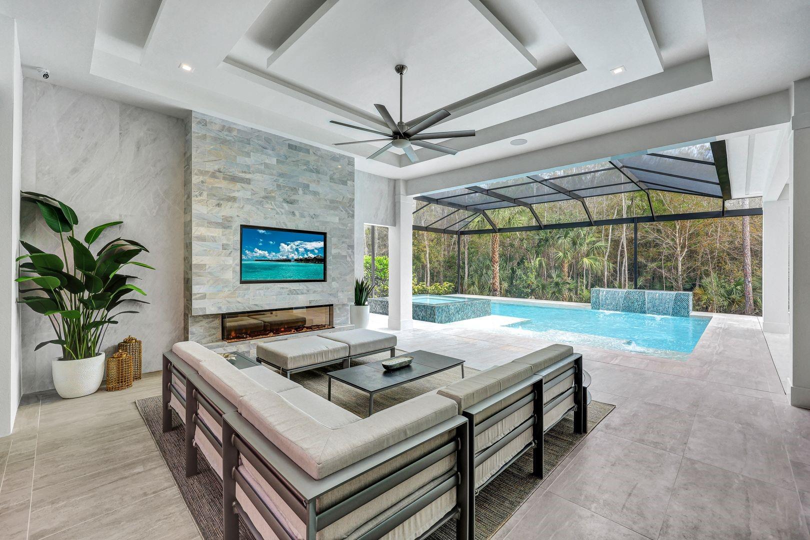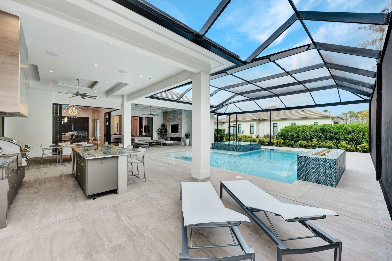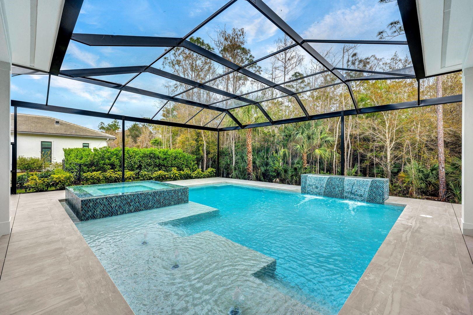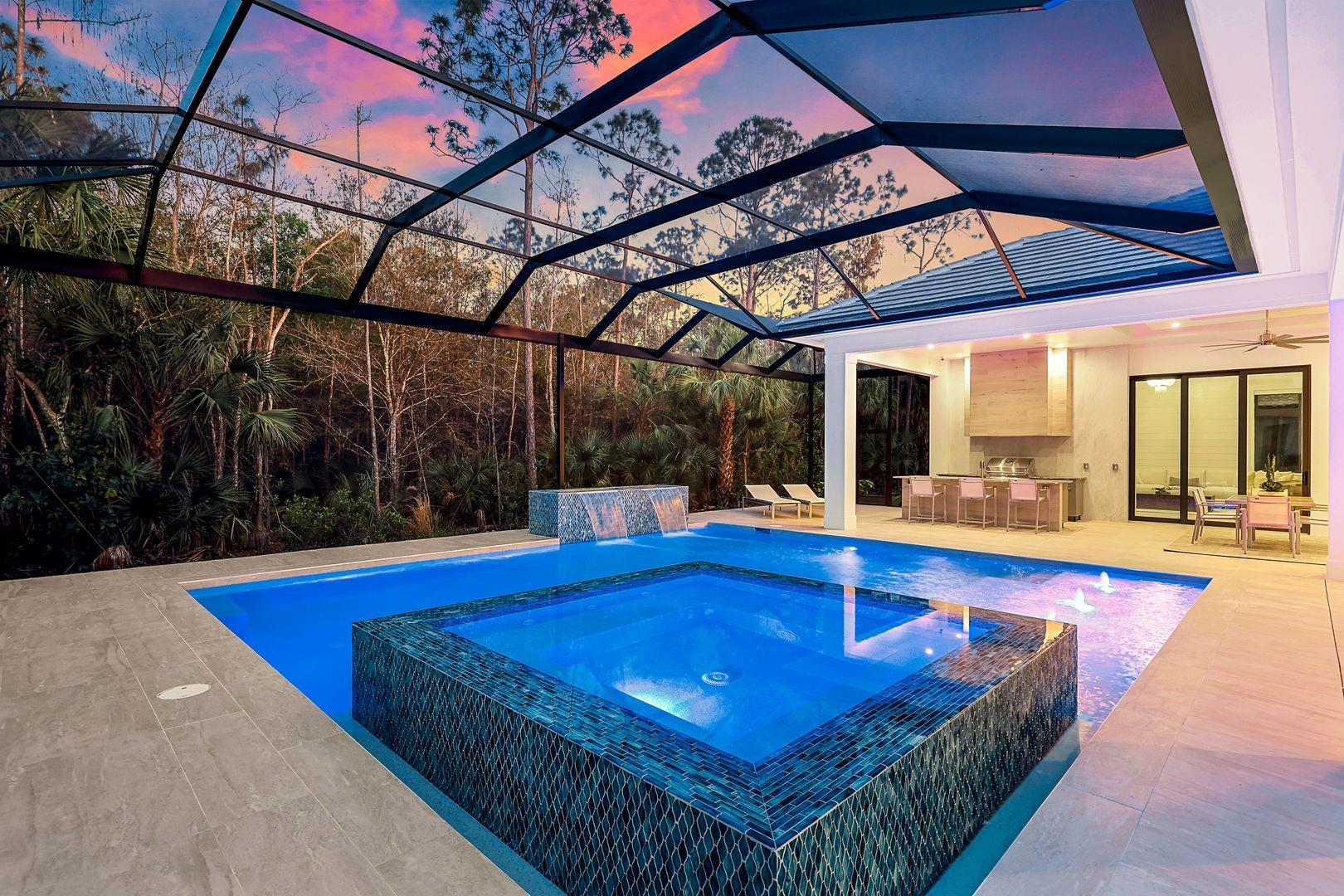 Unfurnished. Exquisite, New Estate Home available now in Quail West Golf and Country Club with Social Membership included! NO WAIT LIST FOR GOLF ON THIS PROPERTY-IMMEDIATE GOLF MEMBERSHIP AVAILABLE at an additional fee. Indulge yourself in this exquisite home with a modern coastal vibe, premium finishes,and tranquil interior decor. Careful attention to craftsmanship and detail are visible throughout this distinctive home with high ceilings, appealing wine room, flex room, study, and four bedrooms. Upscale finishes throughout including modern cabinetry, quartzite countertops, and a custom porcelain fireplace surround. Enjoy entertaining with the ambient lighting features throughout. Elevate your senses with the outdoor retreat, designed for relaxation and entertaining.