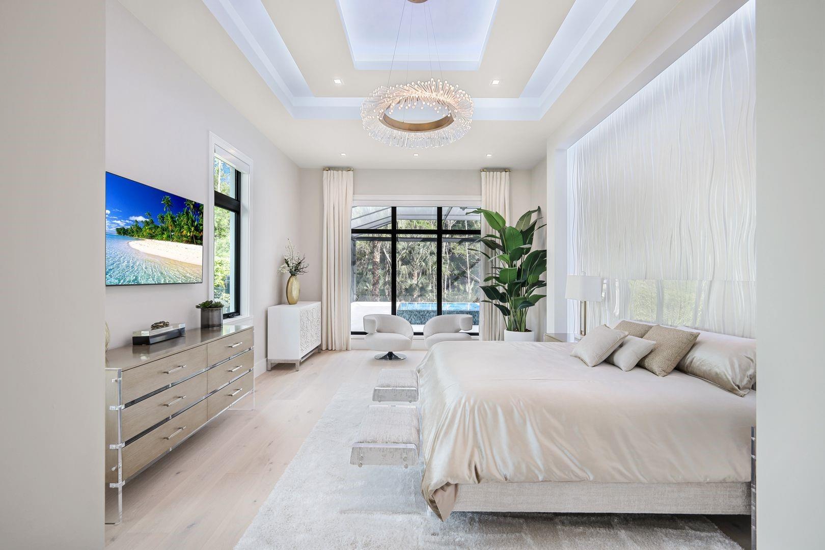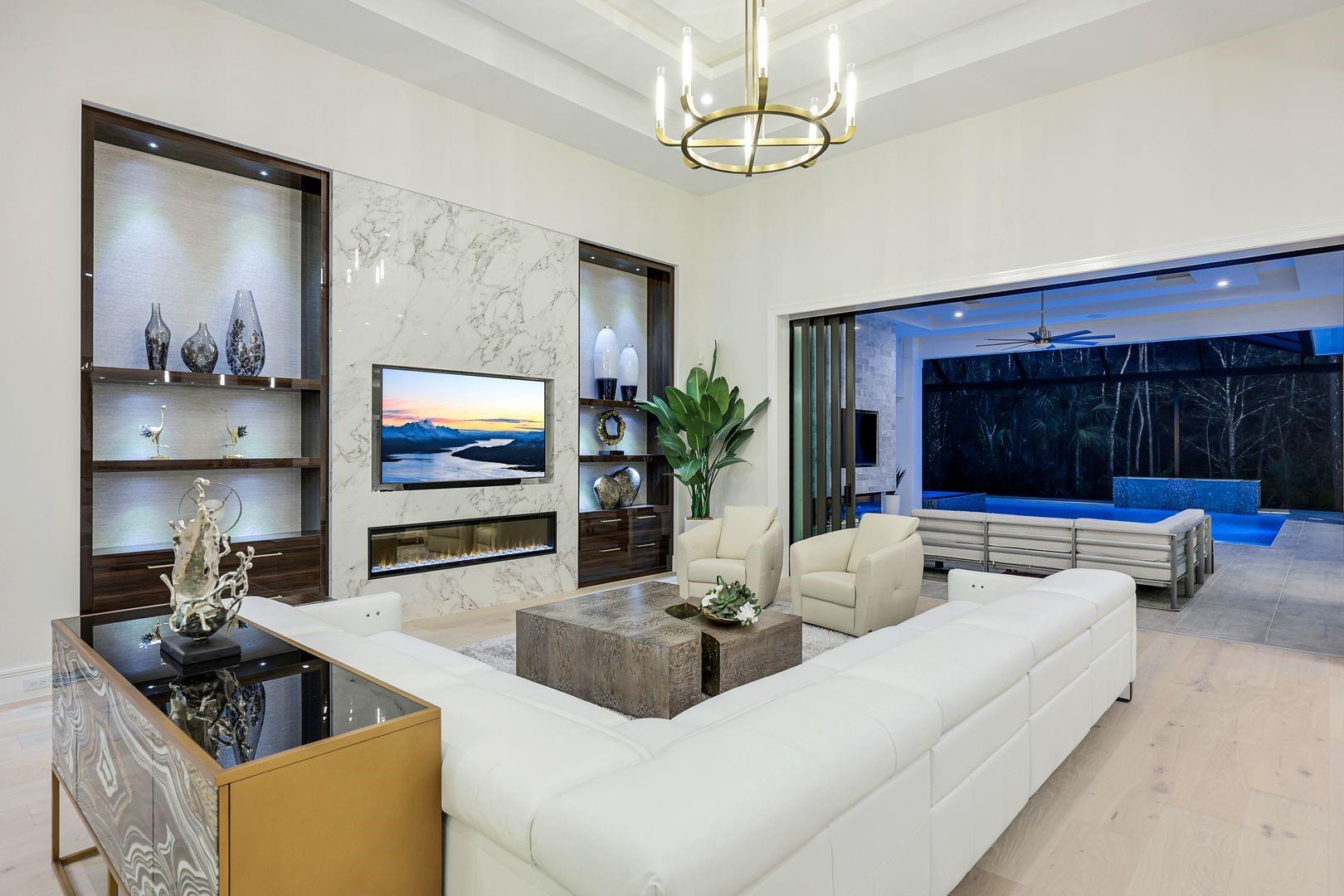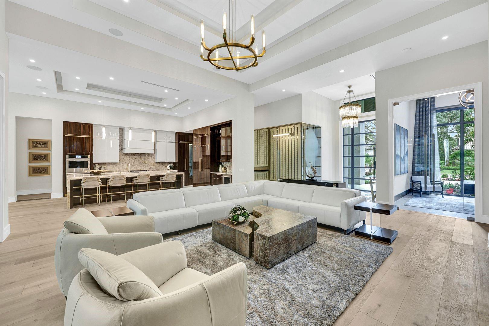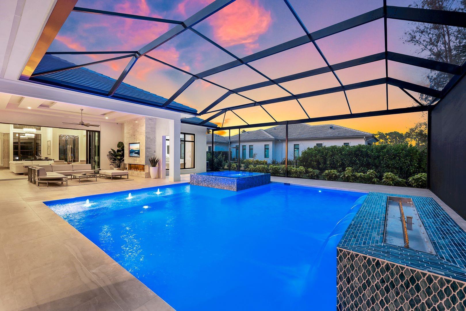 Unfurnished. Exquisite, New Estate Home available now in Quail West Golf and Country Club with Social Membership included! NO WAIT LIST FOR GOLF ON THIS PROPERTY-IMMEDIATE GOLF MEMBERSHIP AVAILABLE at an additional fee. Indulge yourself in this exquisite home with a modern coastal vibe, premium finishes,and tranquil interior decor. Careful attention to craftsmanship and detail are visible throughout this distinctive home with high ceilings, appealing wine room, flex room, study, and four bedrooms. Upscale finishes throughout including modern cabinetry, quartzite countertops, and a custom porcelain fireplace surround. Enjoy entertaining with the ambient lighting features throughout. Elevate your senses with the outdoor retreat, designed for relaxation and entertaining.