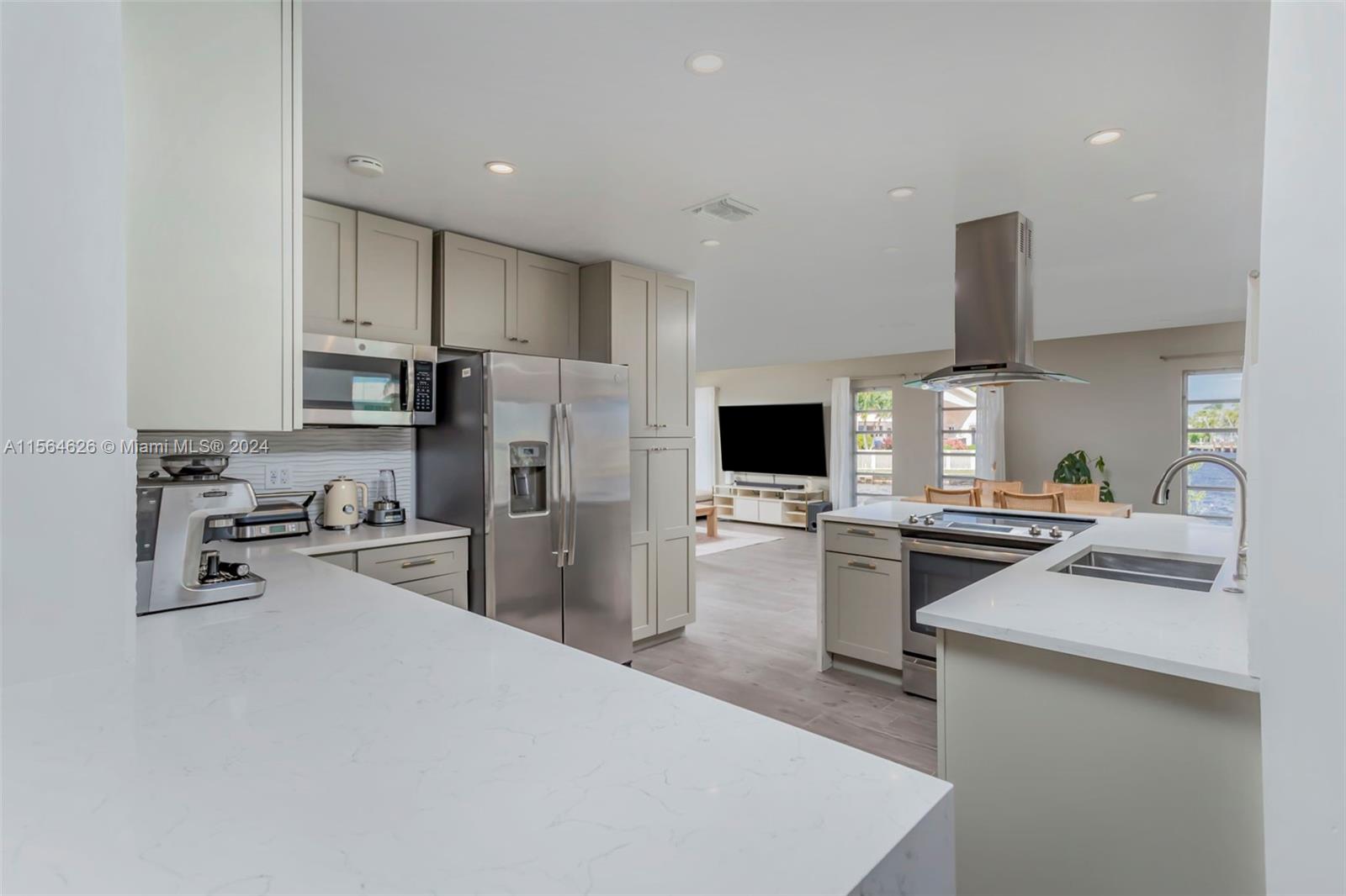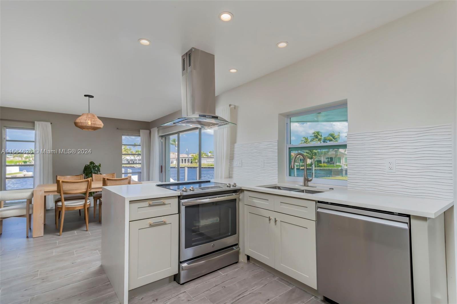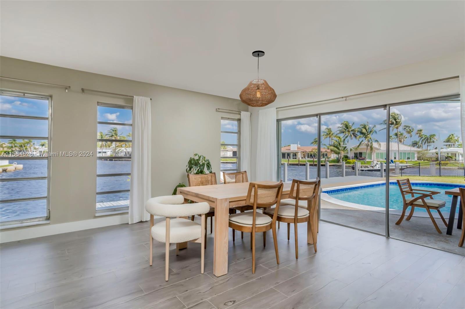 Tastefully renovated Waterfront Home on a canal in Pompano Beach with expansive Water Views, 110 feet of Water-Frontage, Pool, Dock, Sun Deck, 2-Car Garage, New Floors, New Roof (2020), updated Electrical, and Plumbing. Featuring 3 Bedrooms, 3 Bathrooms, and a waterfront Primary Bedroom. Open Kitchen with a modern design, Quartz Countertops and Stainless Steel Appliances. Large Backyard with Waterfront Swimming Pool and Sundeck, perfect for entertaining and relaxing. Only one fixed bridge at Federal Highway.