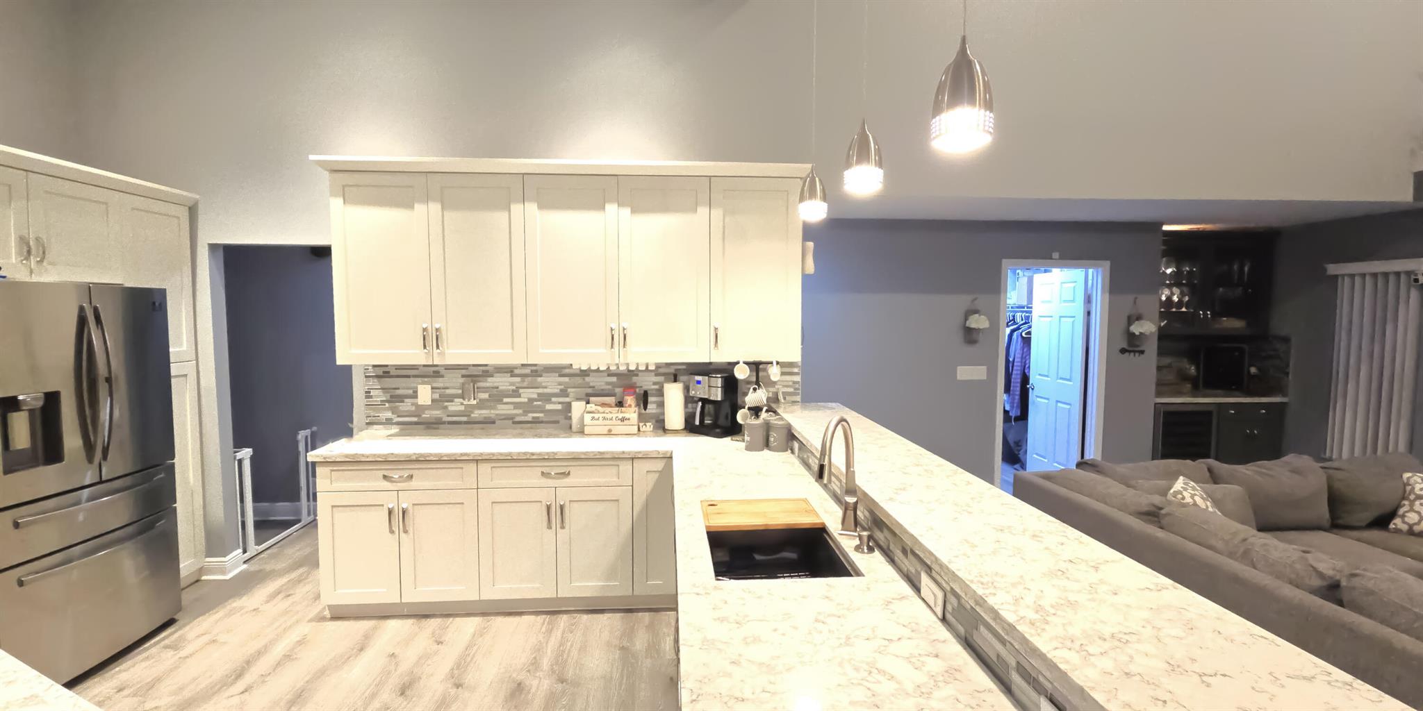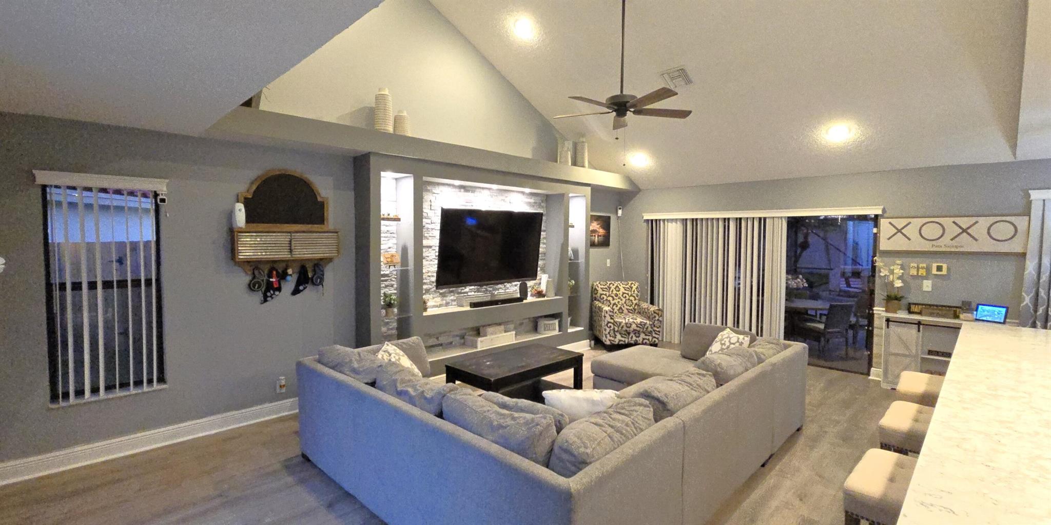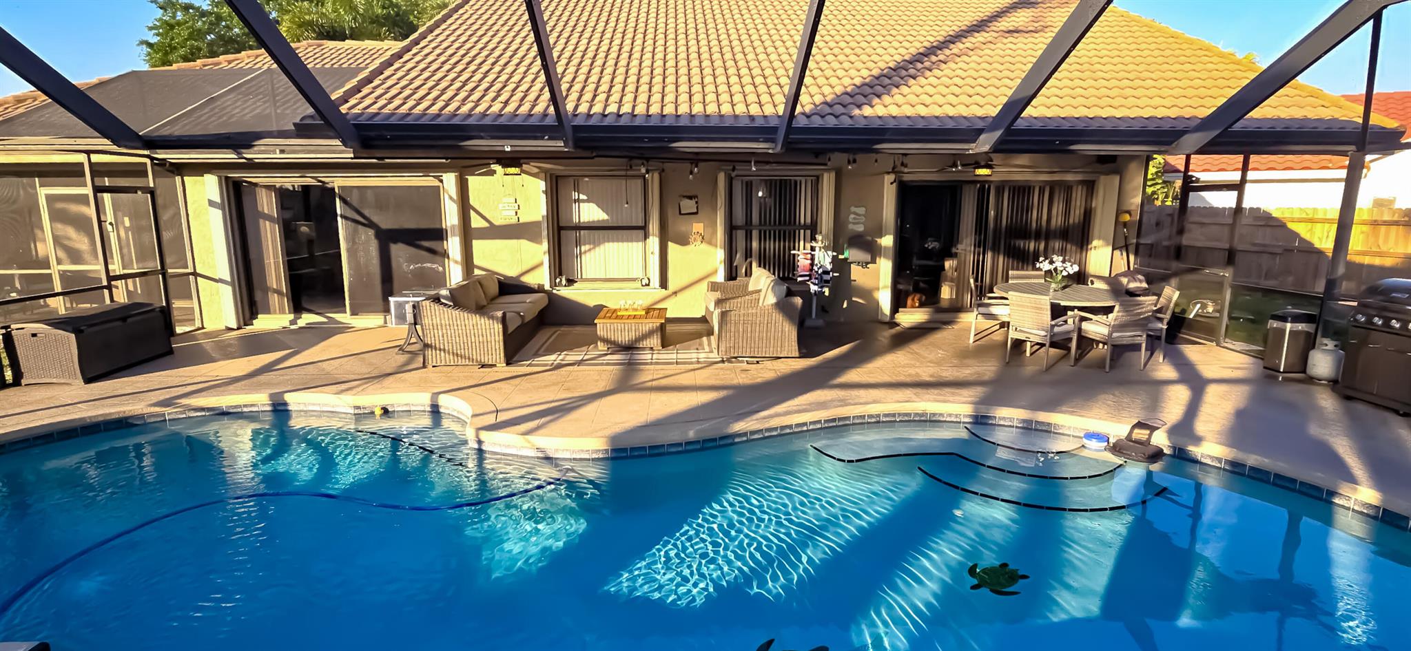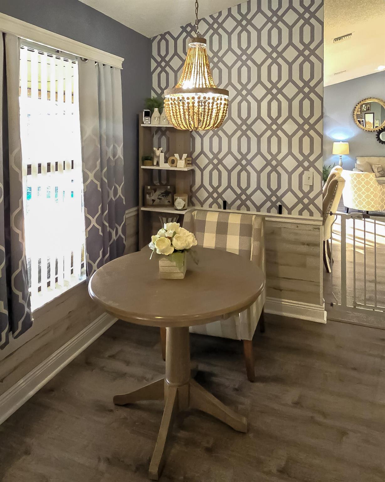 This stunning 4-bedroom, 3-bathroom pool home rests on one of Fox Run's largest lots, offering a rare opportunity in this prestigious community. With over 2500 square feet of living space, this two-story gem has been tastefully updated. High-end vinyl plank flooring graces the first-floor living areas, creating an elegant ambiance. Upon entry, a spacious formal living and dining room welcome you. The expansive master suite, located on the first floor, boasts its own private entrance, a screened-in patio, wood floors, an en-suite bathroom, and a walk-in closet. Another bedroom and full bathroom are conveniently situated on the first floor. The updated kitchen showcases white shaker cabinets, quartz countertops, and stainless steel appliances. A dry bar, complemented by a wine cooler, and