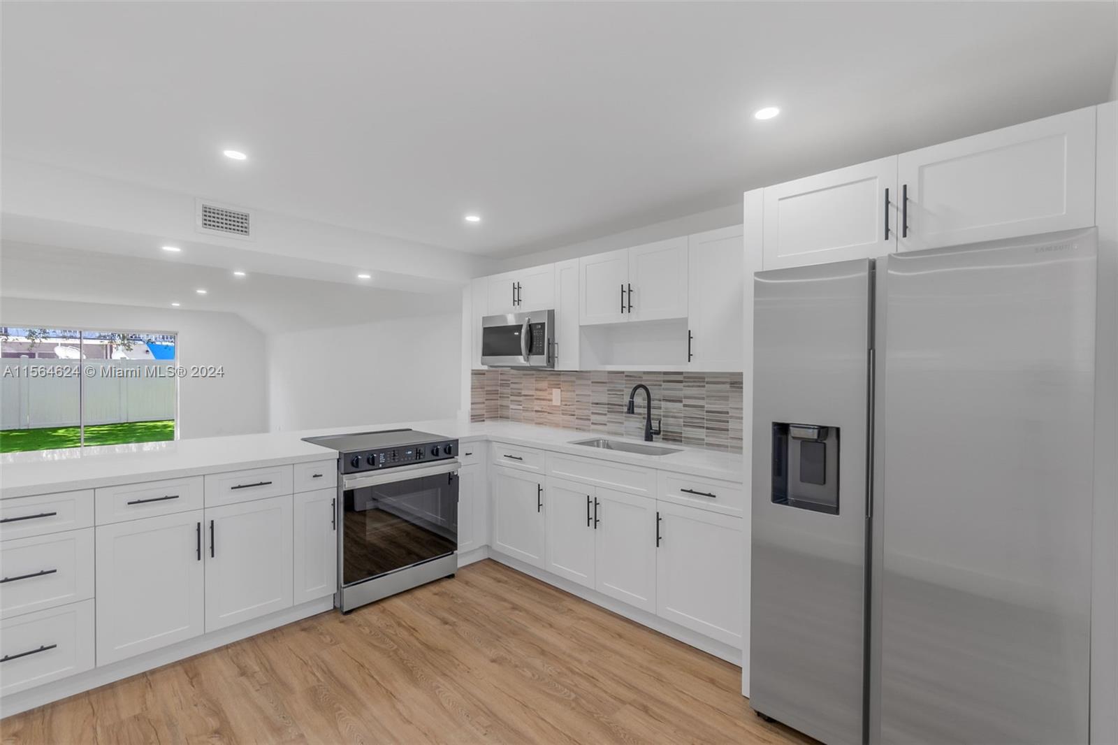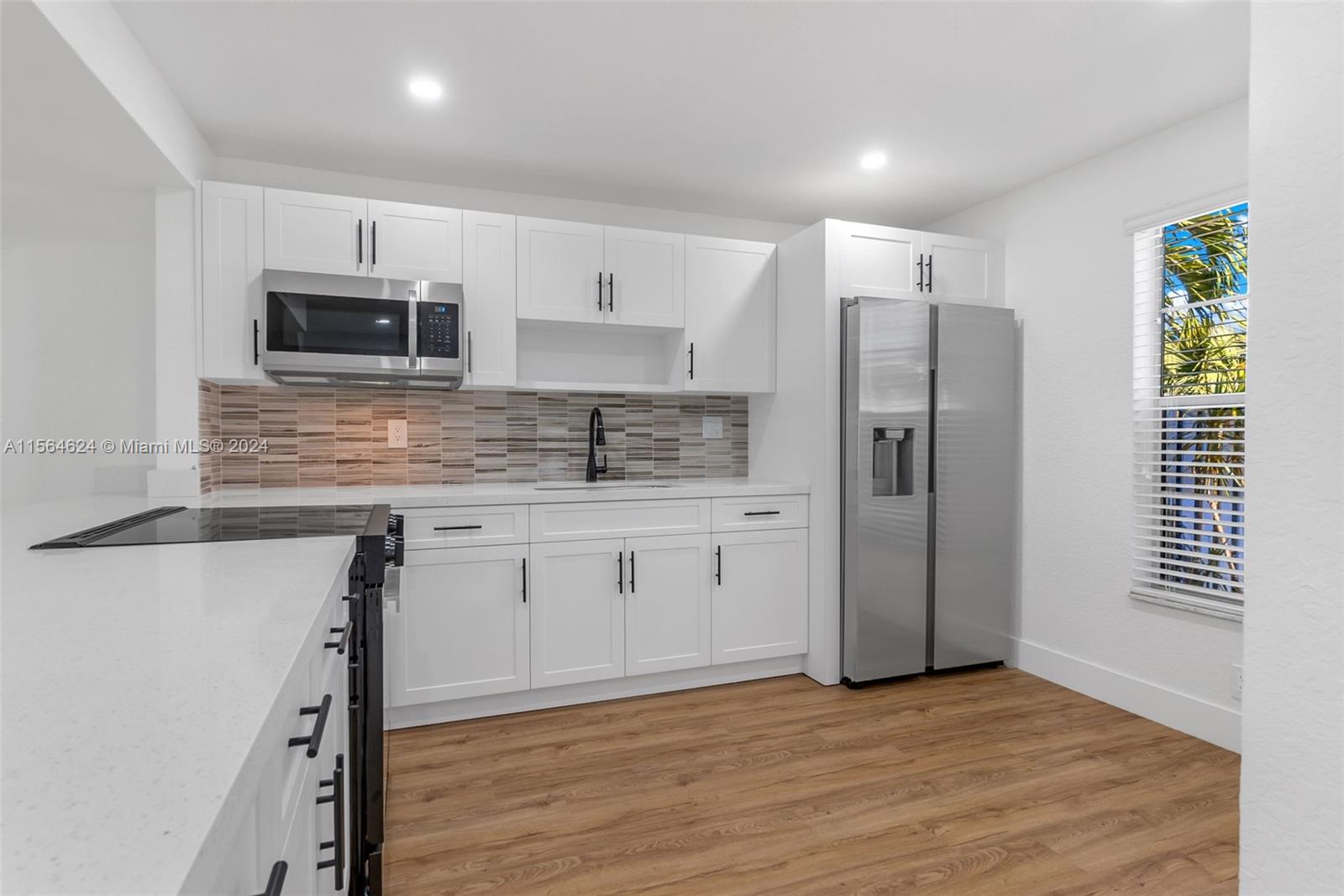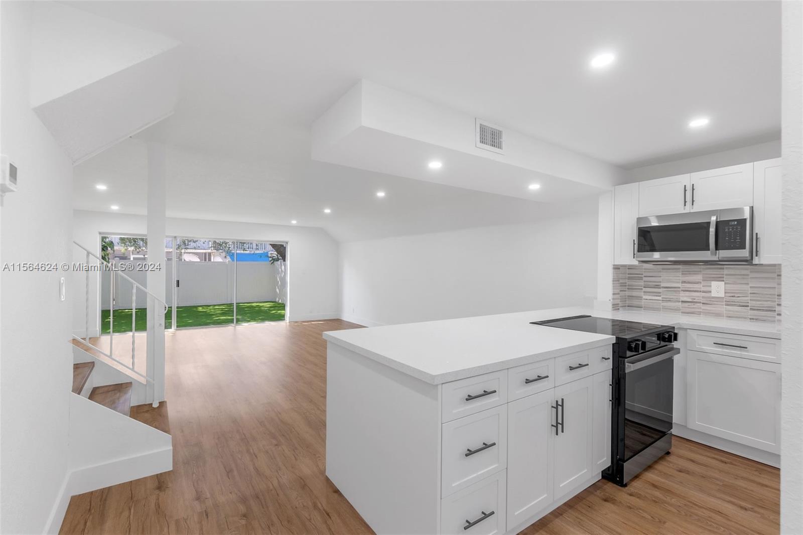 Come see this freshly revamped townhouse in the desired Nova Townhouse community in Davie! This gem showcases 3 spacious bedrooms & 2.5 newly renovated bathrooms. The kitchen is a stunner with its brand-new open peninsula design, featuring sleek white cabinetry, quartz countertops & stainless steel appliances. Complimented with new paint, a newly redesigned staircase & modern laminate wood flooring throughout. The roof was replaced just 2 years ago & its special assessment has been paid in full. You'll love the laundry room and ample amount of closet space. Outside, enjoy the fully fenced patio finished with artificial turf for easy upkeep, the community pool & two assigned parking spaces. Convenient location near major highways and lots of shopping and dining options!