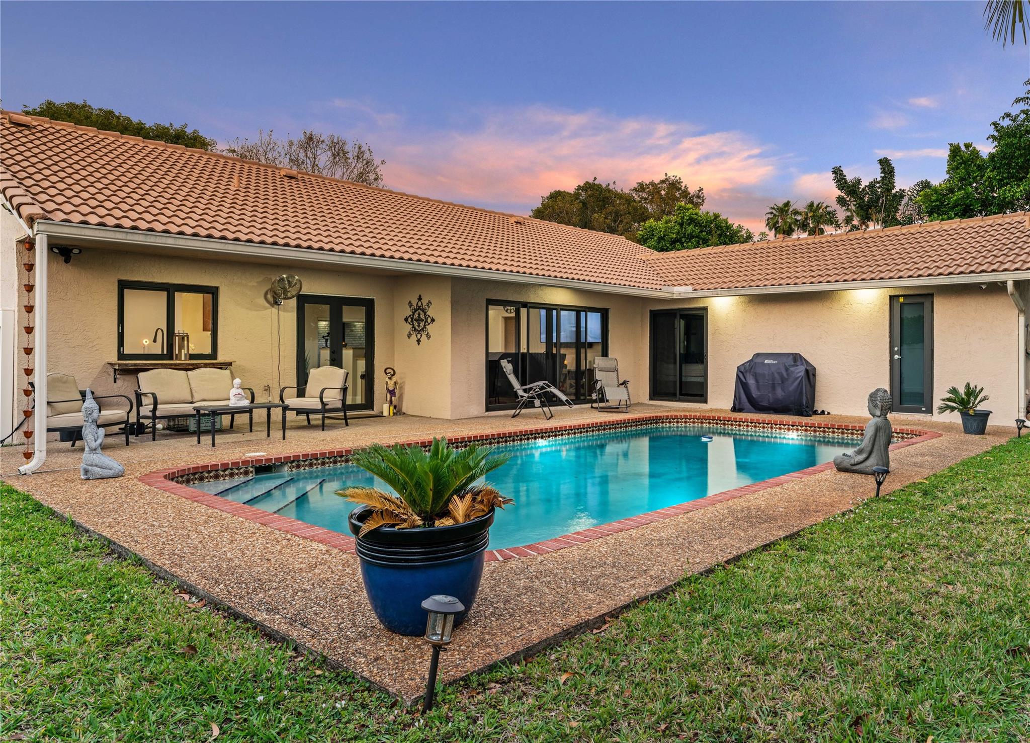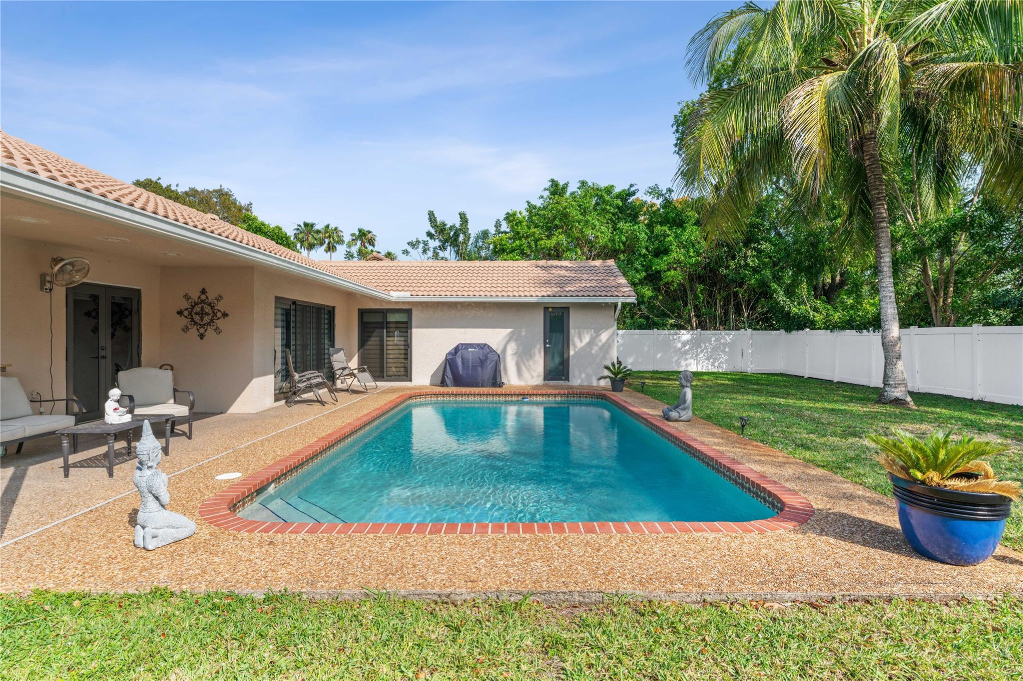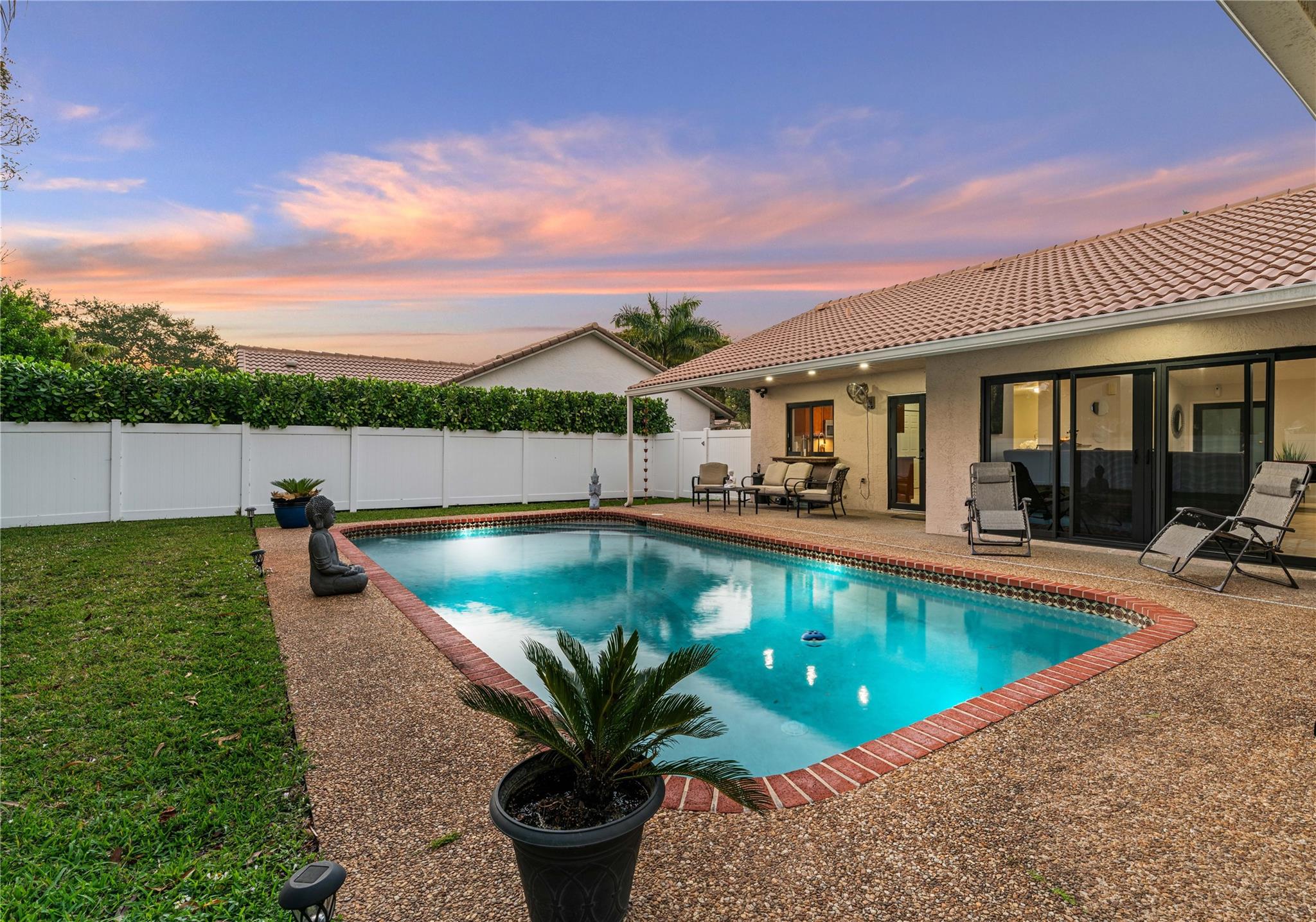 NO HOA! Along a cul-de-sac in sought-after Cypress Glen lies this turnkey 4/2 slice of paradise pool home w/ 2024 Impact W/D & tile flooring. Natural light fills the vaulted ceilings (no popcorn), while recessed lighting compliments the open kitchen & liv/family areas. Each spacious room features zebra blinds for light filtering or evening privacy. Formal dining room & dedicated laundry room w/ full-size W/D. Private backyard w/ salt water pool, vinyl fence & recessed, colored LEDs above lanai. Enjoy the oversized, doorless shower & dual-sink vanity in primary cabana bath w/ wood flooring in suite. Walk to elementary. This 2,194 SF, 2-car garage home (w/ camera/monitoring system that conveys) offers the private, comfortable lifestyle your family is looking for.
