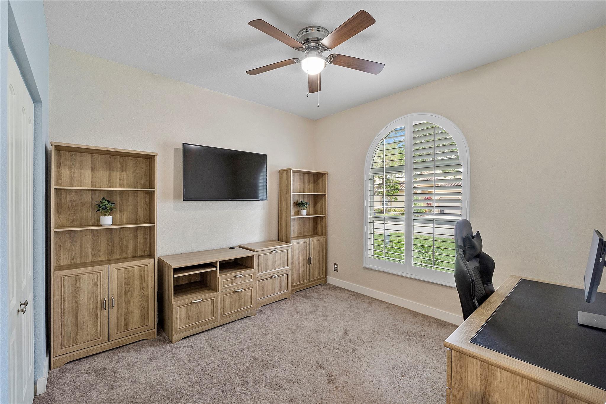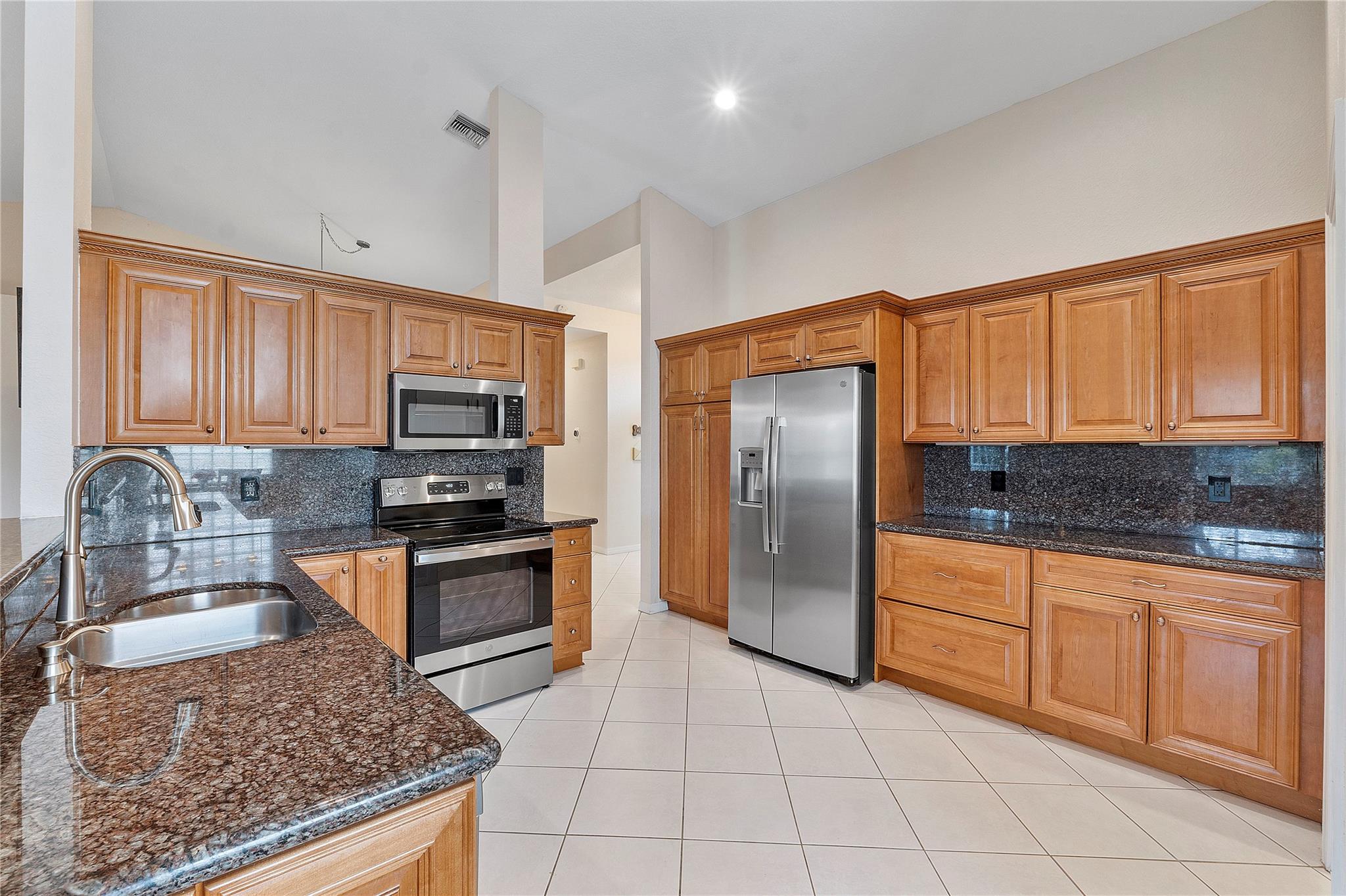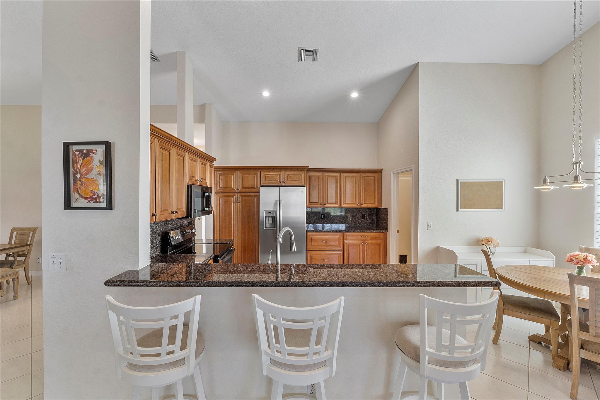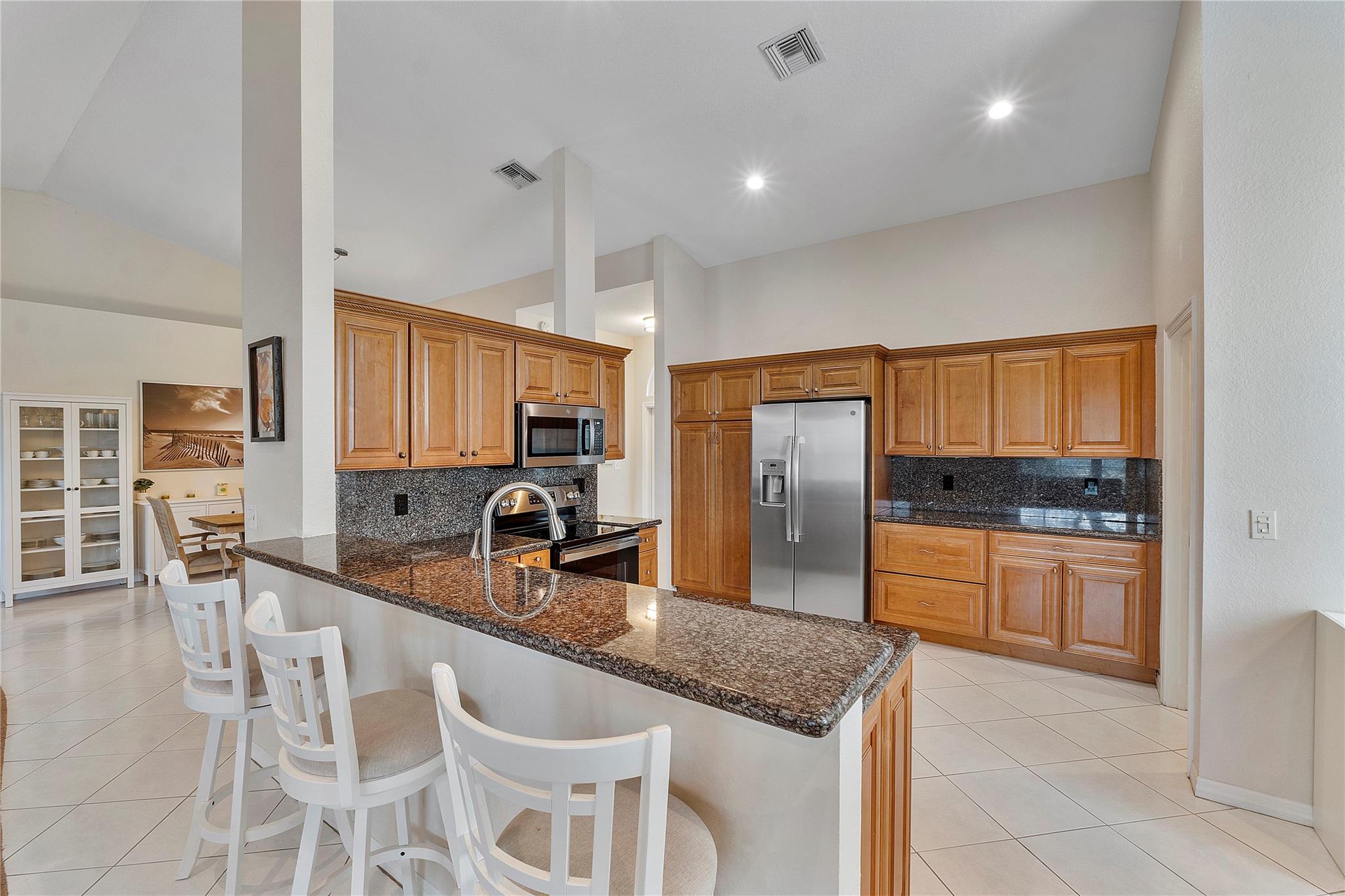 PRICE IMPROVEMENT! Indulge in captivating water views from the screened patio of this meticulously maintained 4/2 retreat nestled in Parkwood with a LOW HOA! Discover an open layout with soaring ceilings and a large, open kitchen featuring granite eat-at counters, new appliances and a breakfast nook! Updates include Impact Windows-2022, Roof-2018, AC-2019 with Nest, SS Appliances-2022/23, Updated Sprinklers-2024, Custom Plantation Shutters-2023, Landscaping-2024, Pressure Washing-2024, Garage Door Motor System-2024, Fence-2019, Drive/Patio Painted, Patio Rescreened-2024, New LED Lighting, New custom blinds/curtains, Ring Doorbell Camera and many more! With top-rated schools nearby, this home offers comfort and elegance in a prime waterfront setting! Explore this gem today!