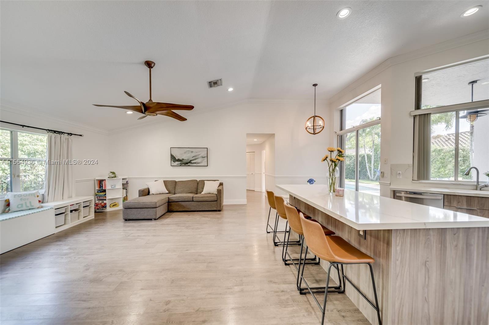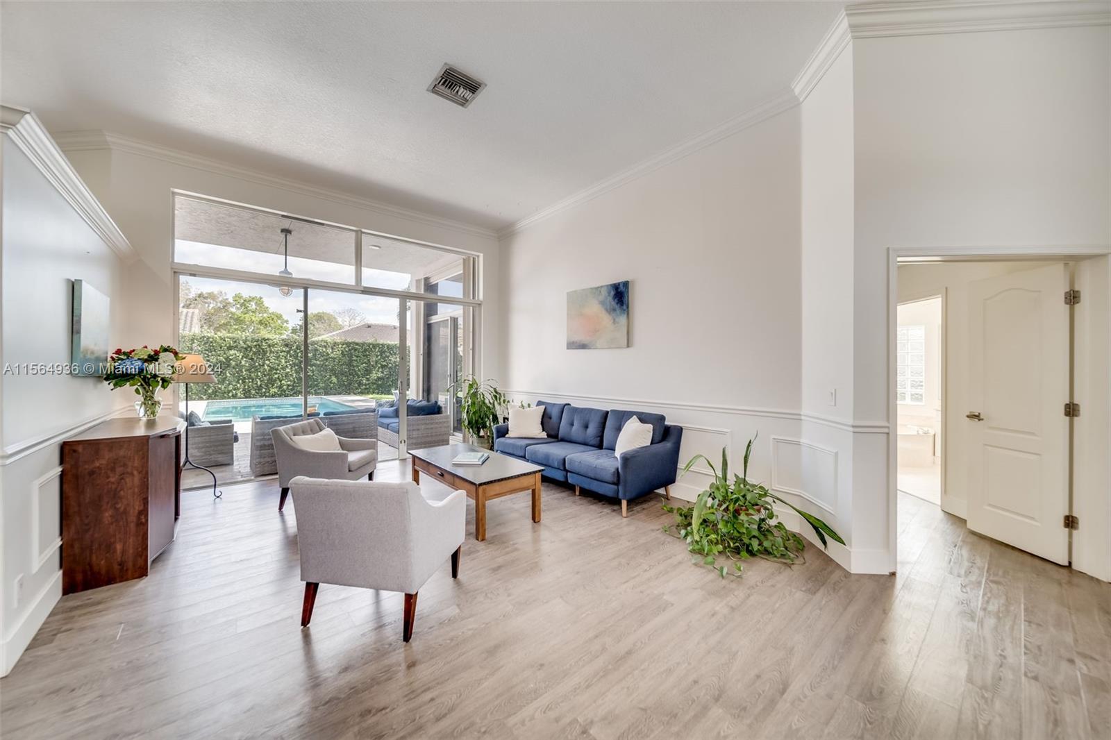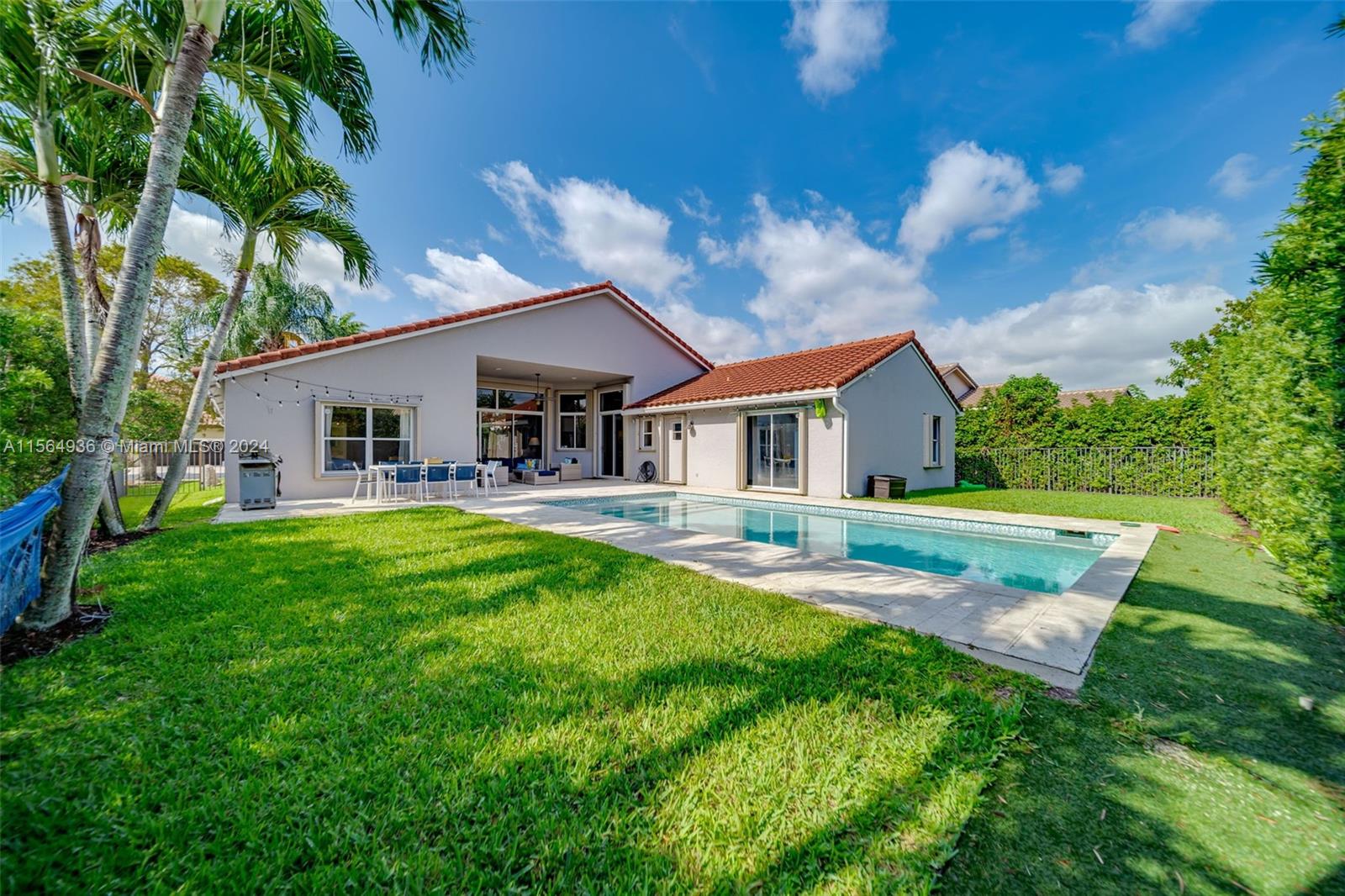 Beyond the double doors, you’ll find a personal oasis in the heart of Weston‘s coveted, guard-gated “Lakes” community: double-volume ceilings & oversized windows provide tons of natural light & views of the saltwater pool, travertine patio area & large backyard. No expense was spared in the kitchen design fit for a chef: GE appliances, 30” sink, European-style cabinetry...stylish & durable Calcutta quartz countertops offer plenty of space to gather & entertain. Bathrooms are spacious, light & bright with neutral contemporary finishes & Kohler fixtures. Enjoy peace of mind knowing the tile roof was replaced in 2019 & with hurricane protection for the entire home. The community has a private park, a game field & a swimming pool. Minutes from shopping & dining, top-rated schools & highways.