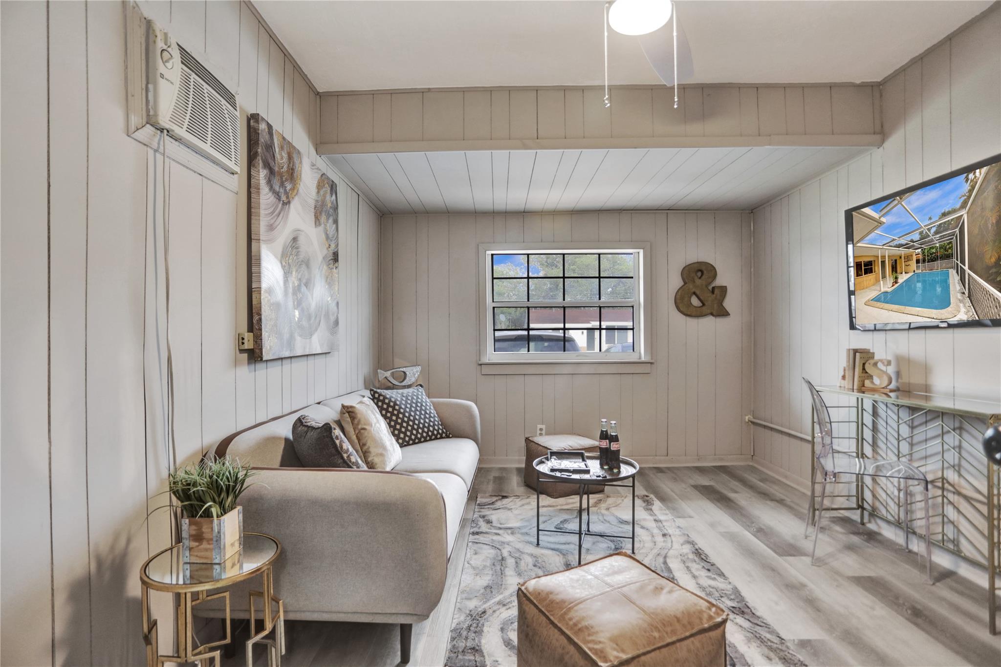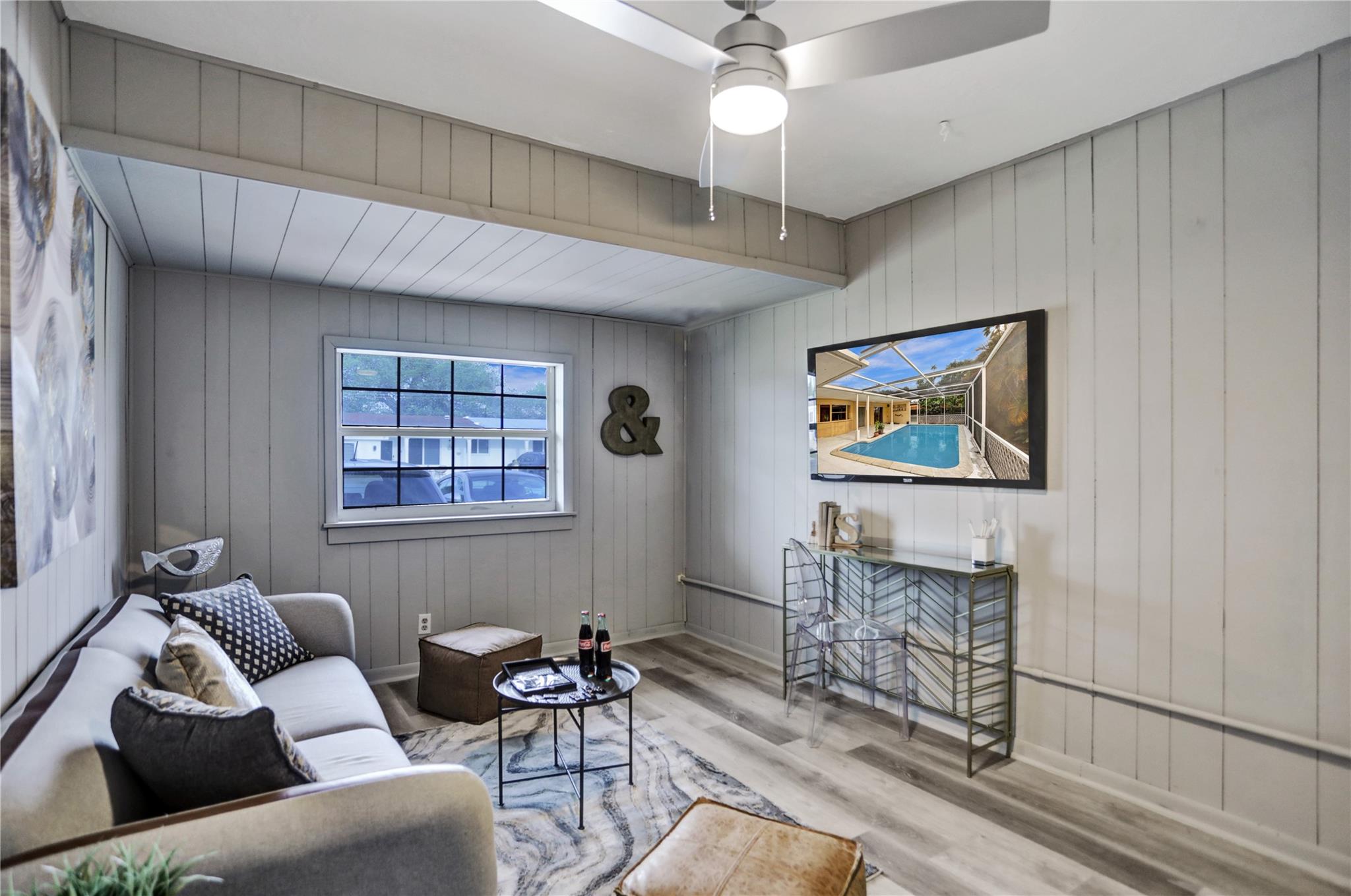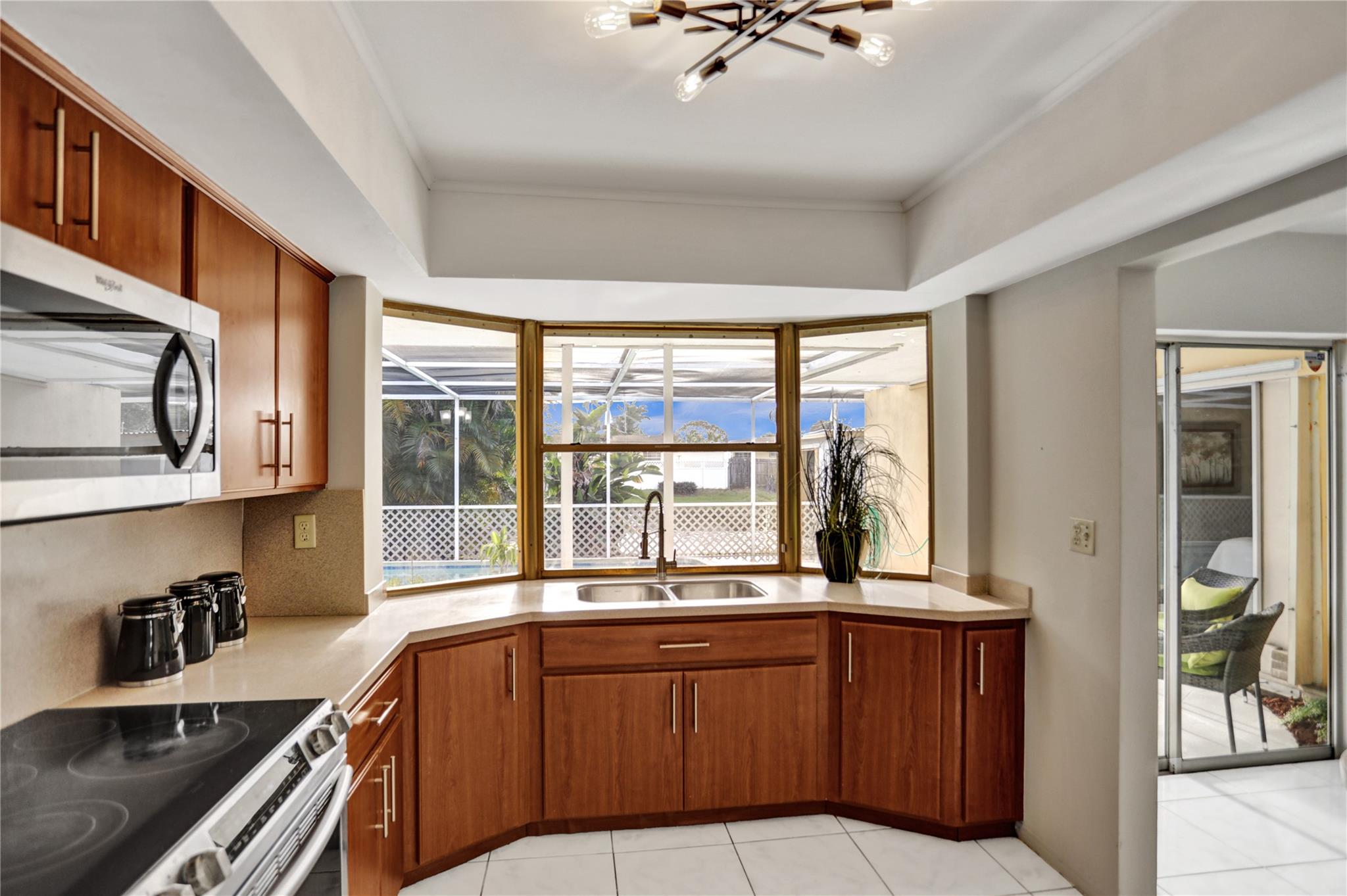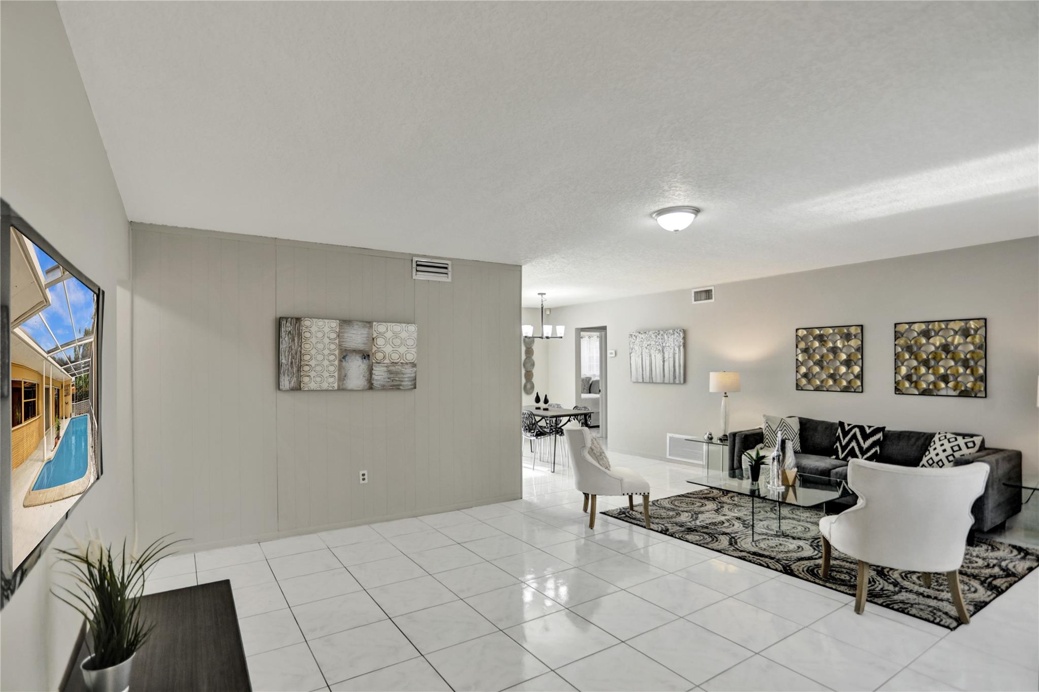 Magnificent marvel in Miramar substantially renovated. Wonderful water views from the newly remarcited & tiled pool make for outstanding outdoor entertainment. Property has 3 bedrooms & 2 bathrooms along with a surprise bonus room off of the laundry area that can be used as an office, den, playroom or whatever suits your fancy. Enjoy the neutral colors with fresh interior paint & brand new vinyl floors in bedrooms & bathrooms. Property clad with 2018 roof as well. Many upgrades include appliances replaced in 2021/2023, washer/dryer replaced in 2022, air conditioning replaced in 2022, shed remodeled & refurbished in 2023, light fixtures brought to 2024 standards & more! Explansive driveway space allows for at least four cars. This home is waiting for the perfect family! Come! See! Own!