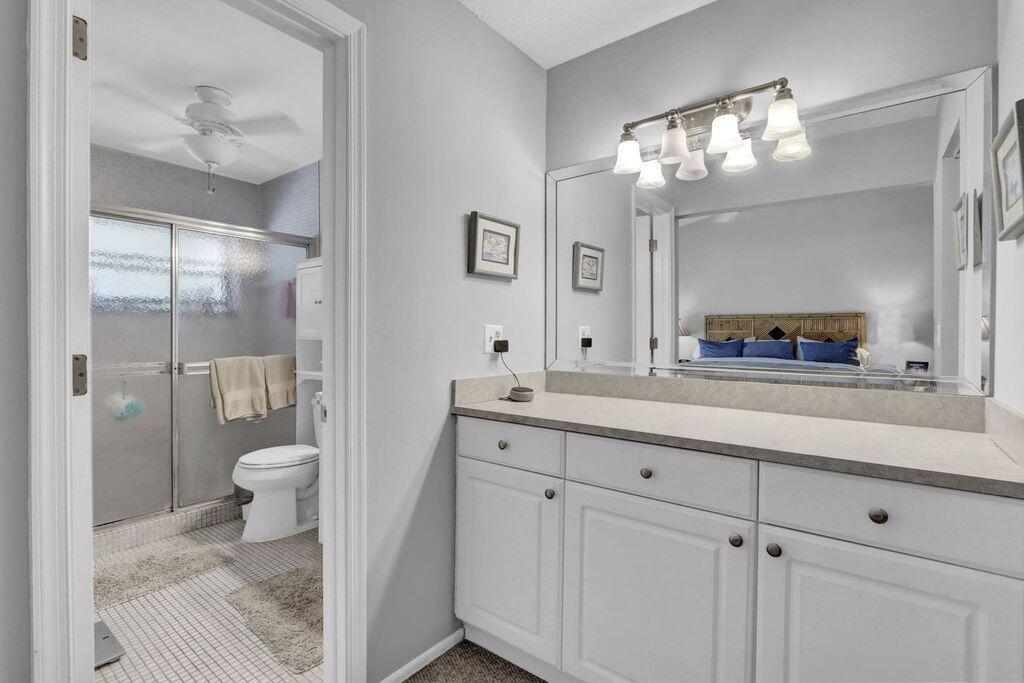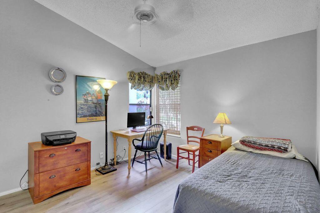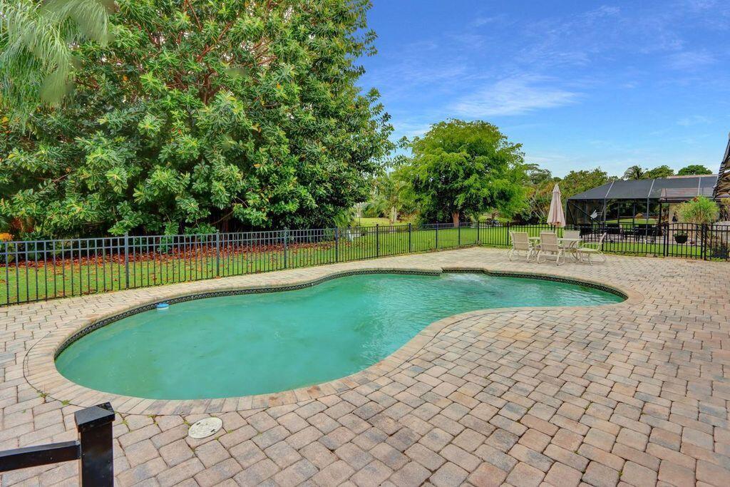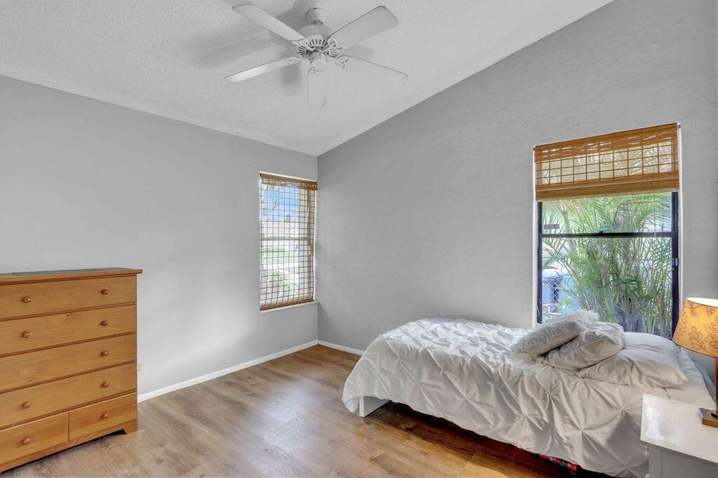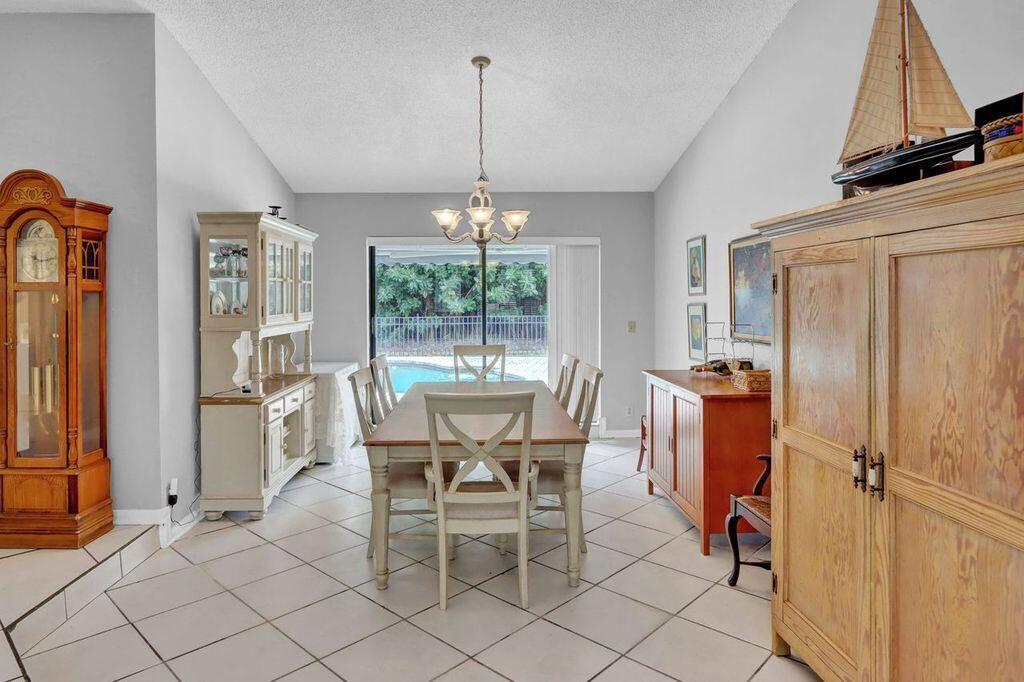 This charming one-story home of 3 bedrooms & 2 baths features an inviting backyard with tranquil lake views offering a spacious fenced-in patio with a freeform pool and retractable awning. Interior features include a lovely kitchen with white cabinetry, granite countertops & a stainless steel refrigerator & dishwasher; a sunken living room; white tile in the living areas and neutral carpeting & vinyl flooring in the bedrooms. Washer & dryer are in the garage; metal panel shutters; circular driveway & 2-car garage. Non-motorized boats permitted on the water.