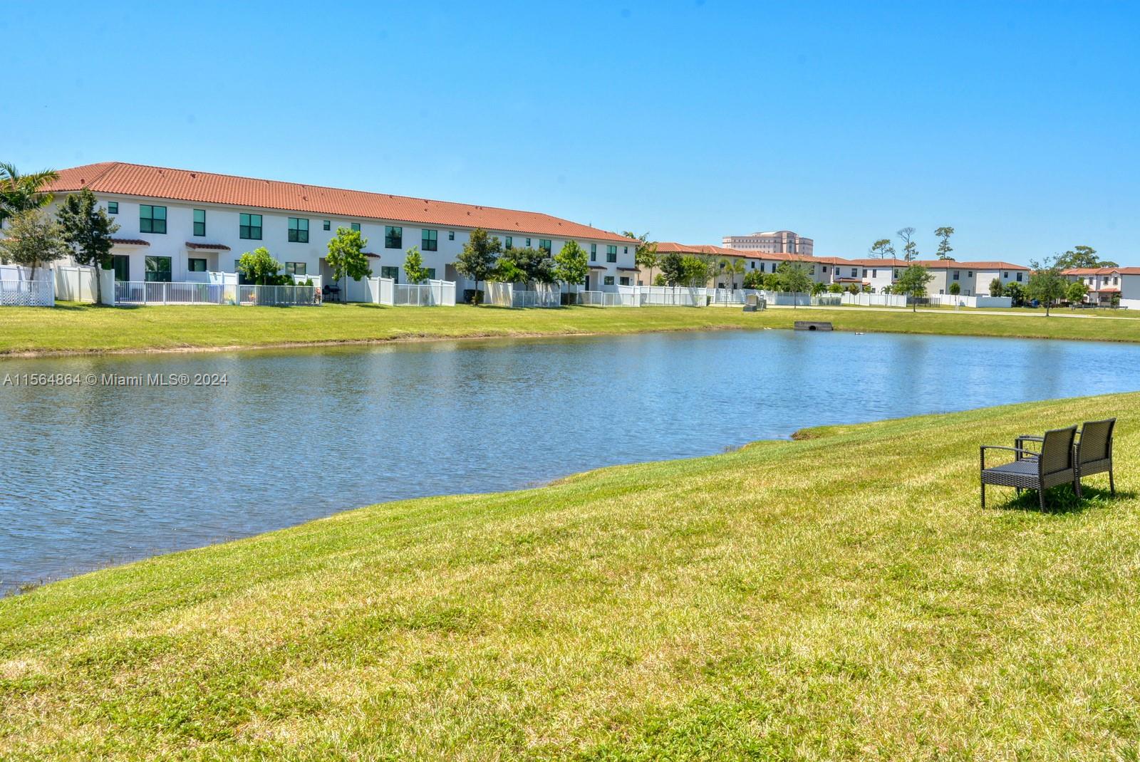 Beautiful Lake view townhome 3/2 in exclusive gated community of Mediterranea has 1,746 square feet of living space. This 2 story home offers three bedrooms and two-and-a-half bathrooms. This open plan wraparound kitchen is fitted with modern stainless steel appliances. Plenty of space in dining room that flows right to a beautiful lake view. Upstairs, discover a Master Suite with a walk-in closet and in-suite bathroom with double-sink vanity as well as two generously sized bedrooms and a full bathroom.