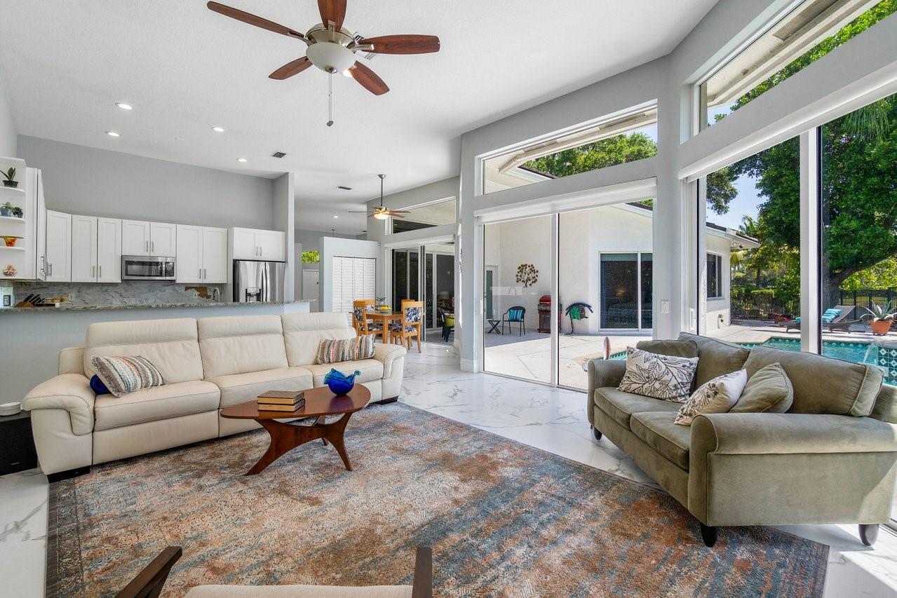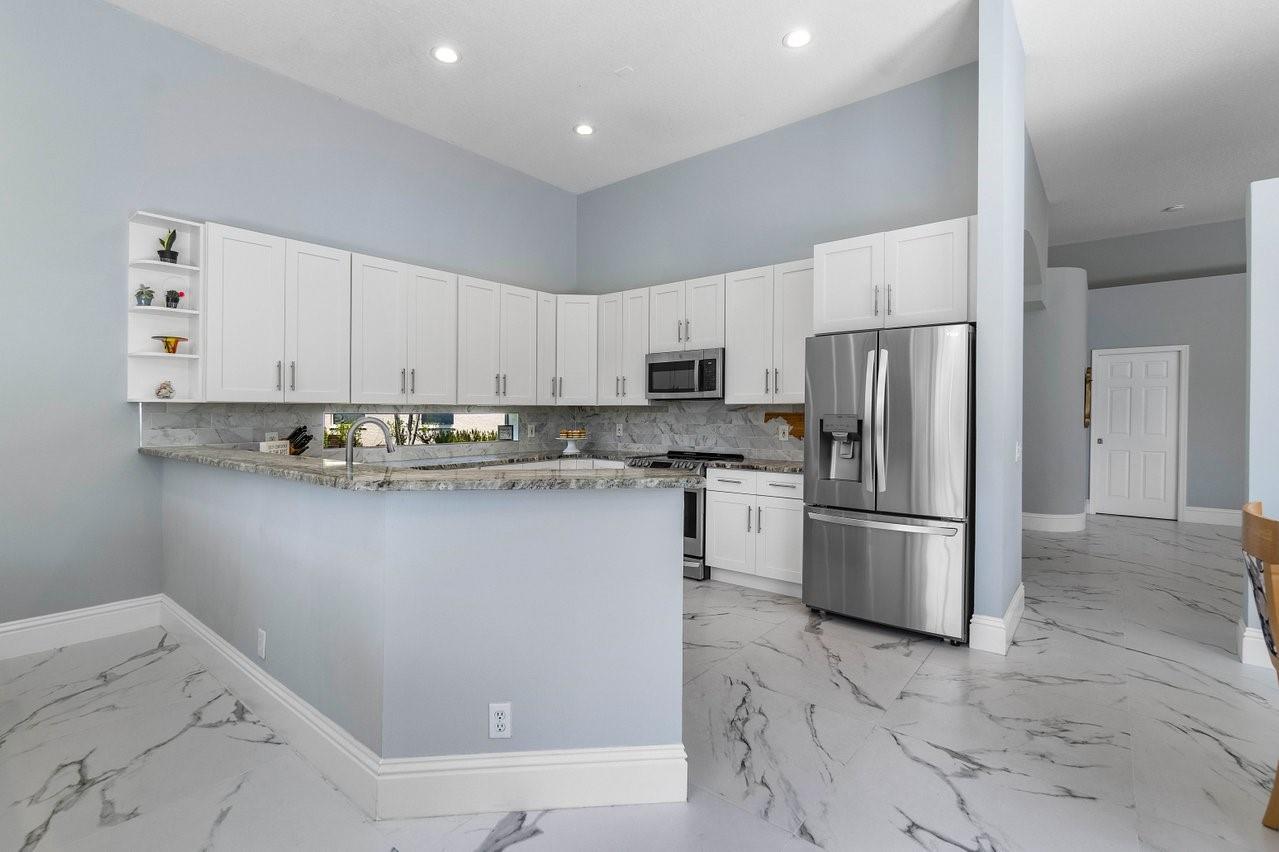 MAJOR PRICE REDUCTION! Majestically situated between a secluded cul-de-sac & expansive lake in prestigious RIDGES of Weston, sits this 5 bdr, 3 ba waterfront pool home. remodeled kitchen! This residence will impress! Favorable split floor plan, tremendous closet & storage space, enormous primary bathroom w/ frameless glass shower. Stainless steel appliances, & high-end products such as induction cooktop & convection oven. Quartzite countertops, & all wood cabinets adorn the open kitchen abutting a welcoming family room. Dine al fresco from your pool & patio while enjoying crimson sunsets & unobstructed views! Grow your family & enroll your kids in Weston's BEST school system! "TU CASA TROPICAL TE ESPERA"
