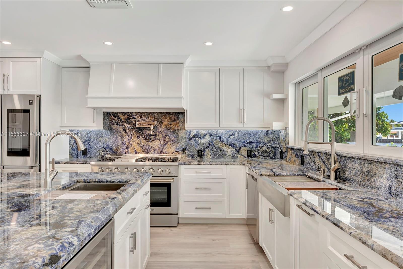 REMARKABLE POINT LOT. 90 FEET OF DIRECT INTRACOASTAL FRONTAGE. MINUTES TO HILLSBORO INLET. HIGHEST LEVEL OF NEW CONSTRUCTION, COMPLETED 2024. HIGHEST END MATERIALS THAT EXIST + THE HIGHEST QUALITY OF CRAFTSMANSHIP. COMPLETELY CUSTOM EVERYTHING. THOR NATURAL GAS RANGE & OVEN - PLUS ADDITIONAL ELECTRIC OVEN. CUSTOM CABINETRY, REFRIGERATED DRAWERS IN THE MASSIVE KITCHEN ISLAND. BUILT IN WINE COOLERS, ICE MACHINE, GRANITE, ONYX, AND QUARTZITE COUNTERS. SMART LIGHTING THROUGHOUT, CORDLESS CELL PHONE CHARGING. WIRED VORTEX SECURITY SYSTEM. SMART HOME - CONTROL ENTIRE HOME FROM PHONE - THERMOSTATS, CAMERAS, ETC. BRAND NEW SEA WALL - 45,000 LB BOAT LIFT. ROD STORAGE ROOM. SAFE ROOM. UNDERGROUND CABLE. WHOLE HOUSE GENERAC GENERATOR. IMPACT WINDOWS. POOL & SPA. FIREPLACE. OFFICE. 2 CAR GARAGE. WOW