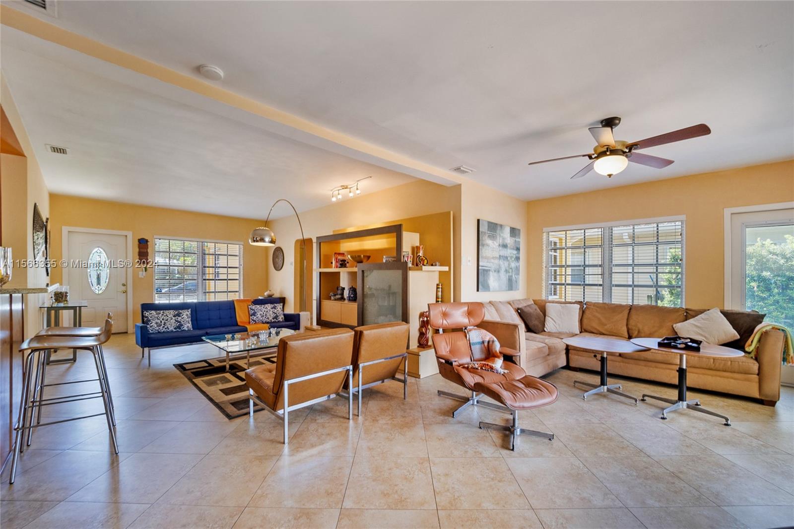Beautiful home in the sought-after Town of Surfside! This gem offers 3 bedrooms, 2 bathrooms and a functional 1-car garage. Open layout with a large living room, dining room, and family room. There are stylish tile floors throughout, with the exception of parquet wood floors in one bedroom. The renovated open kitchen has a gas stove, wood cabinetry and stainless steel appliances. The primary bedroom at the back of the house has an en suite bathroom & walk-in closet. The private backyard has a large wood deck and inviting hot tub & is fully fenced with room for a pool. Just blocks to the beach, Surfside Community Center/pool, shopping, fine dining, houses of worship, Bal Harbour Shops & the Four Seasons Surf Club. Zoned for A-rated Bay Harbor K-8 School. Watch the virtual tour!