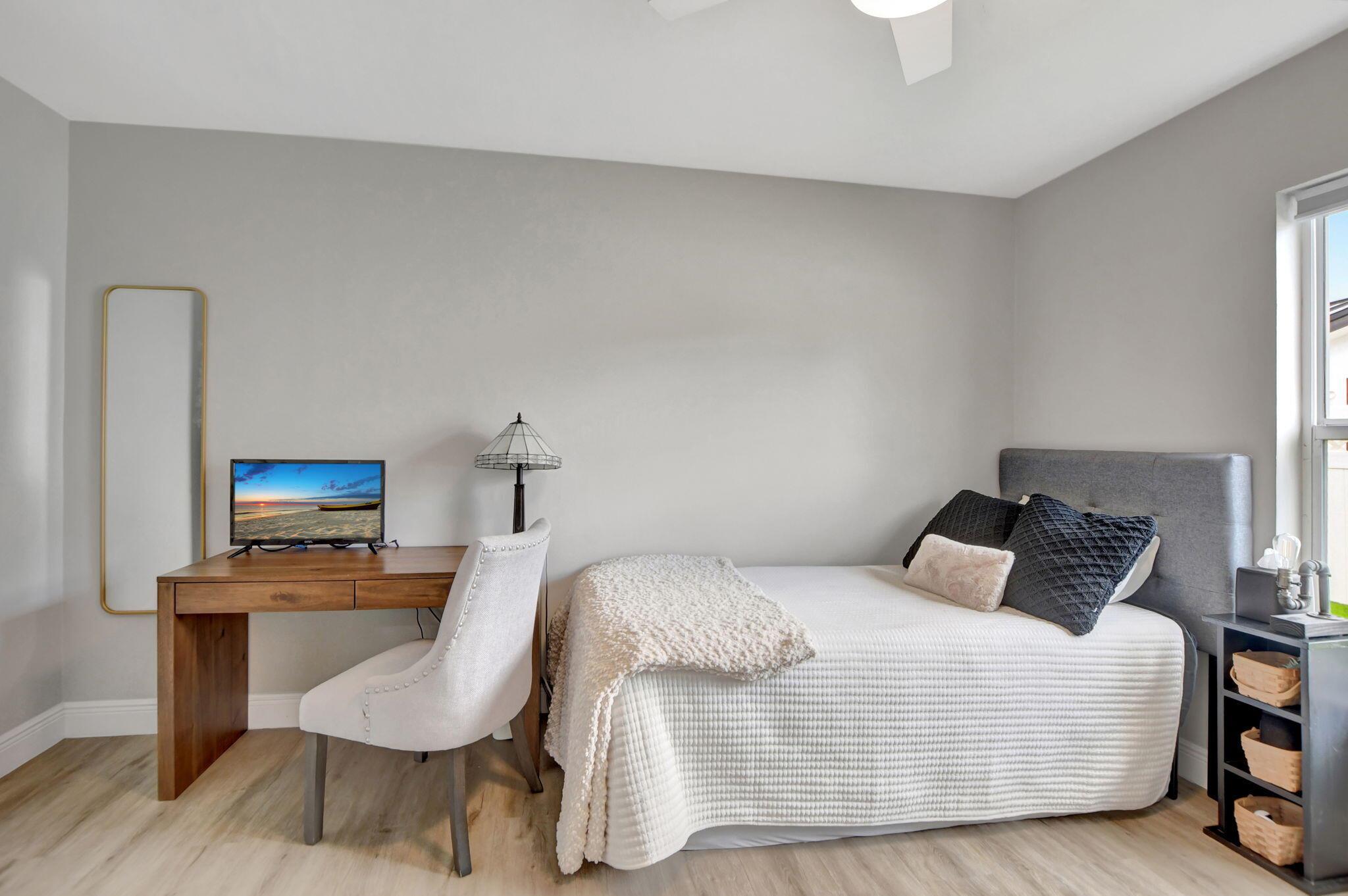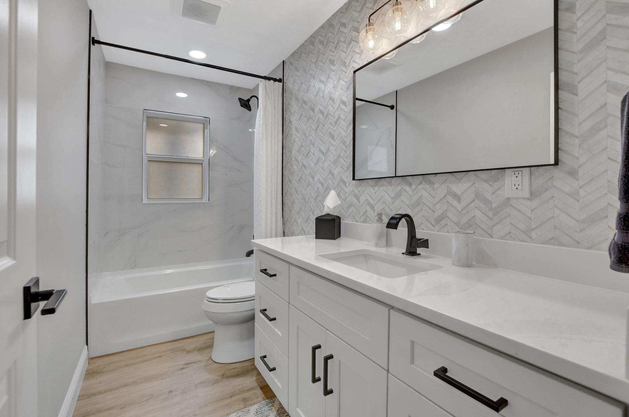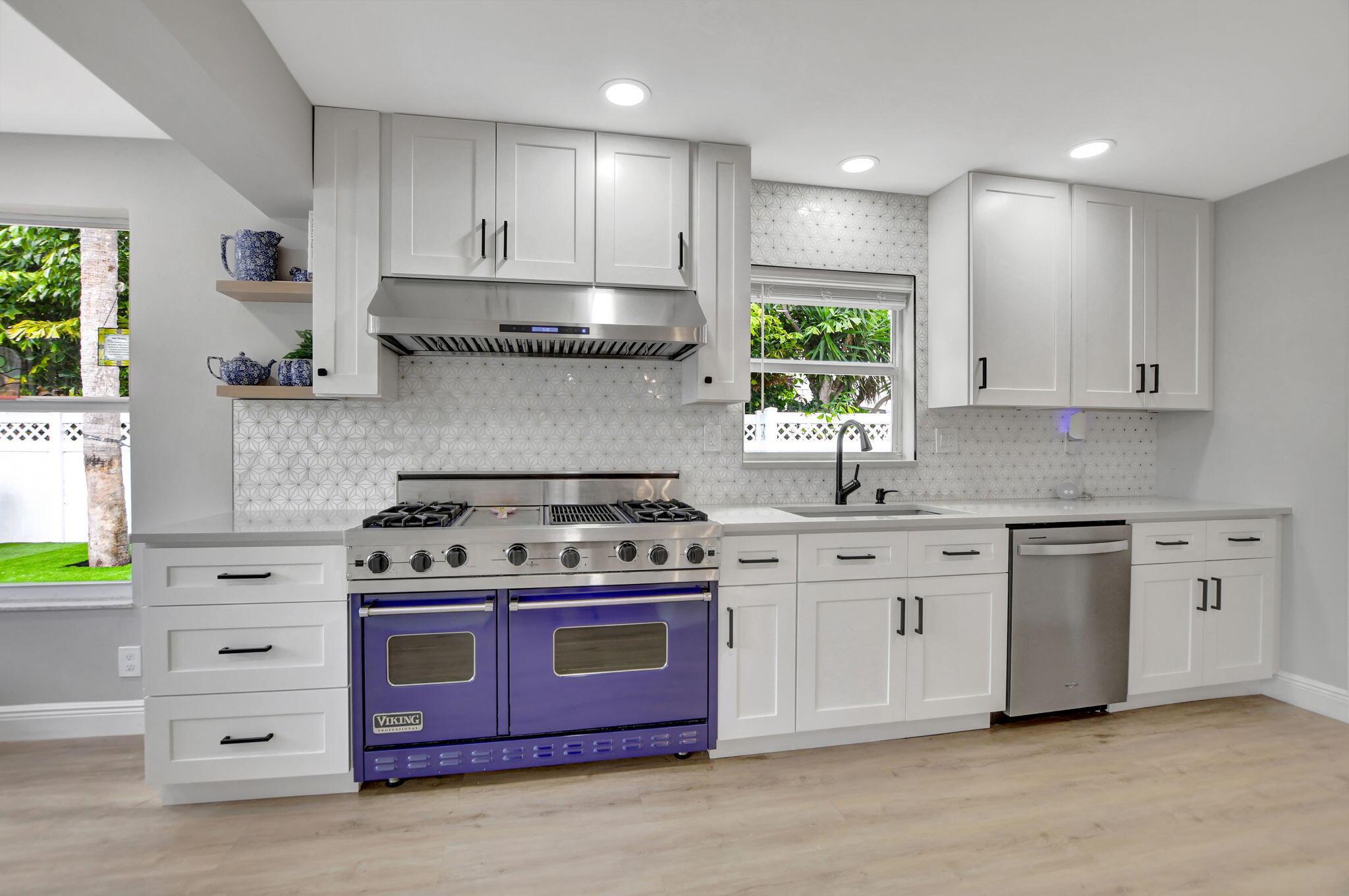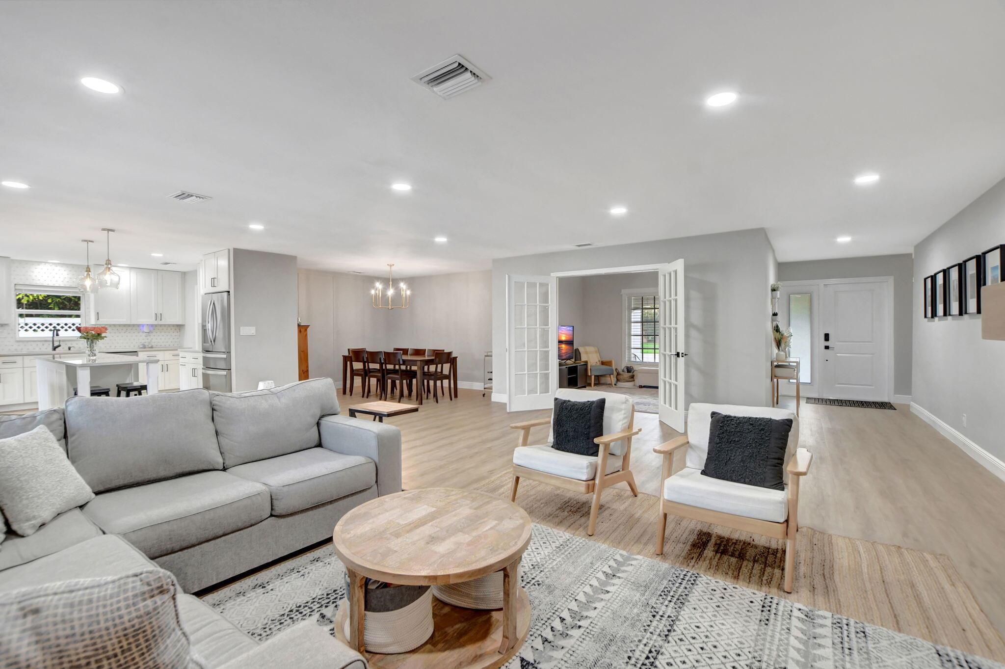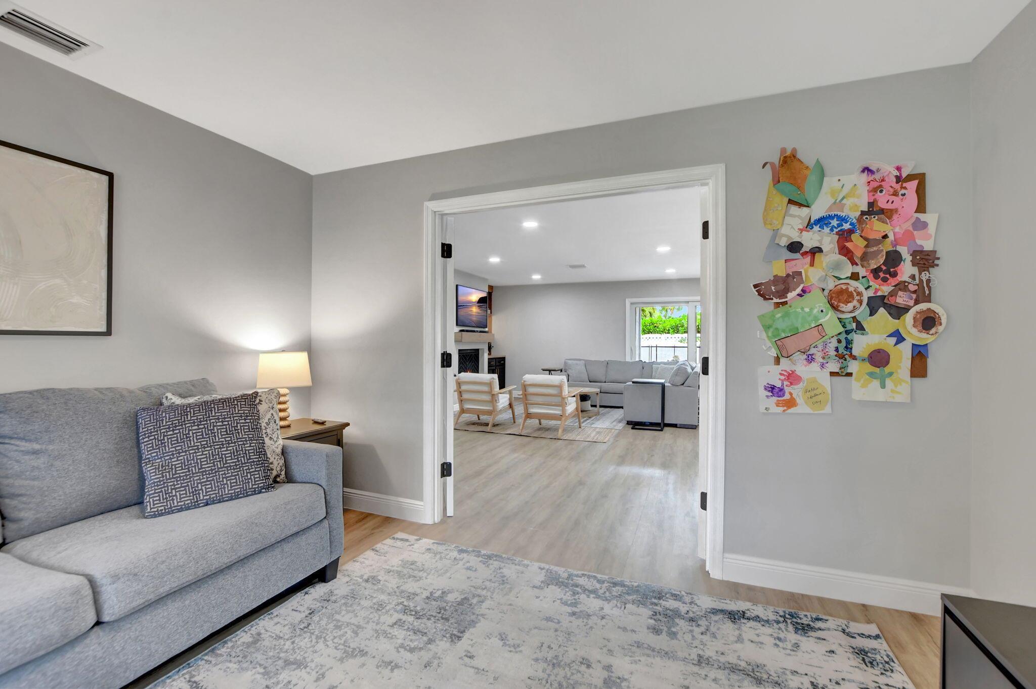 Stunningly renovated 4-bedroom, 2-bathroom plus den home with in the highly coveted community of Camino Lakes in East Boca Raton. This home features a completely updated interior with an open floor concept, immaculate finishes, and all impact windows. The new flooring throughout complements the spacious layout. The kitchen is a highlight, boasting a large island, plenty of cabinets, and bench seating around the bay window overlooking the pool and backyard. The master suite includes two large closets, making it easy to move right in. Outside, the fenced backyard is beautifully landscaped with artificial turf, and the fencing is made of white vinyl. Enjoy the luxury of a Viking gas range and a wood-burning fireplace. Additional storage space is available in the laundry room. See MORE