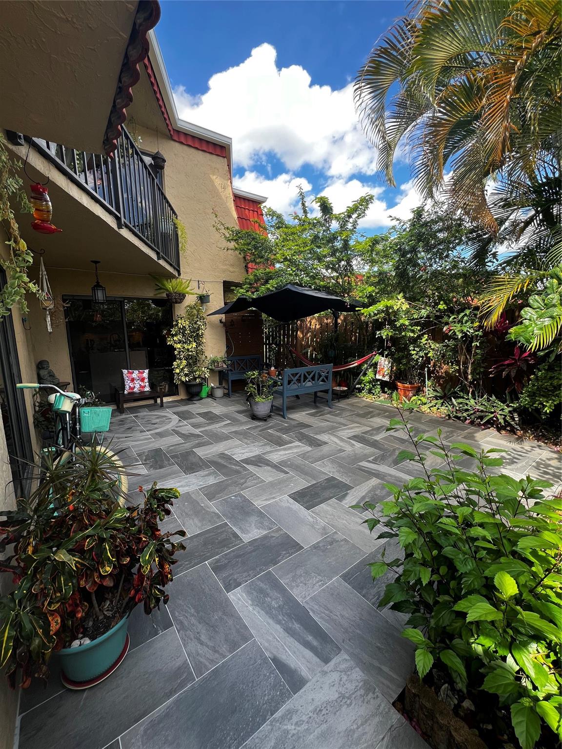 This is the best location in the complex! It is far from the entrance and turnpike, so it is very serene and quiet. Come and see this tastefully updated sanctuary. The moment you walk through the door, you will feel the calm and peacefulness of this two-bedroom, 2.5-bath townhouse. The neutral updates will complement anyone's style and furnishings and the tropical courtyard is a welcoming oasis. Both spacious bedrooms have a full ensuite bath making it perfect for roommates. This bright airy home must be seen to be believed.