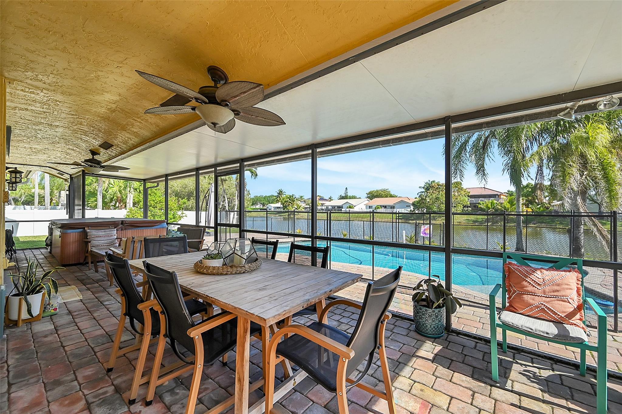 Welcome to 5010 King Arthur Avenue, a beautiful home in the desirable neighborhood of Hawkes Bluff! This spacious property has open living spaces with lovely skylights & a kitchen renovated in 2020 with white shaker cabinets, granite countertops, stainless steel appliances and a bar area. Wood-like tile floors in living areas with crown molding & recessed lighting through out. Panel hurricane shutters and one impact window. The best is the backyard- serene water view, screened in patio with hot tub, pool with child safety gate & a completely fenced-in yard! Low HOA and located in the city of Davie, you will enjoy easy access to shopping, dining, parks, and top-rated schools. Don't miss out on the opportunity to make this house your home. Schedule a showing today!