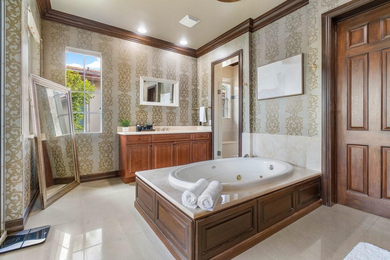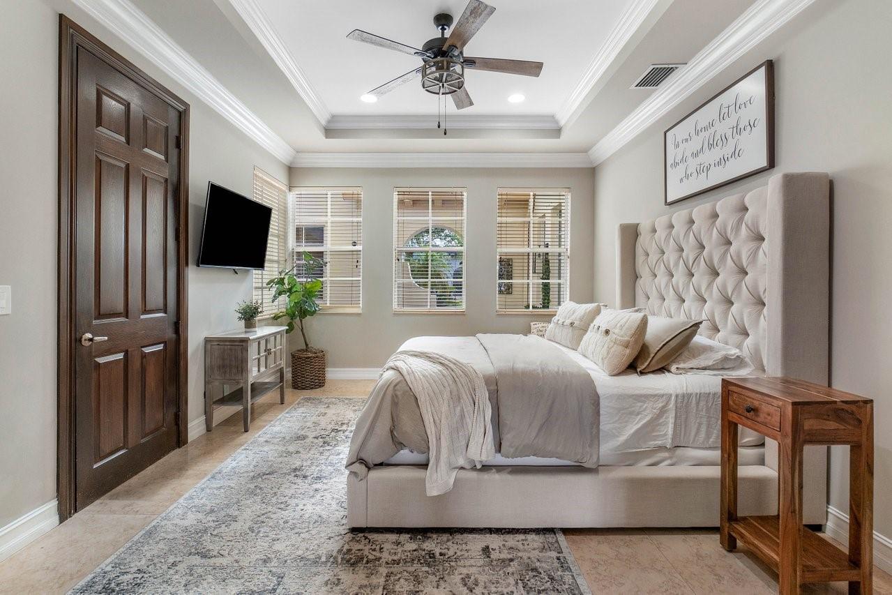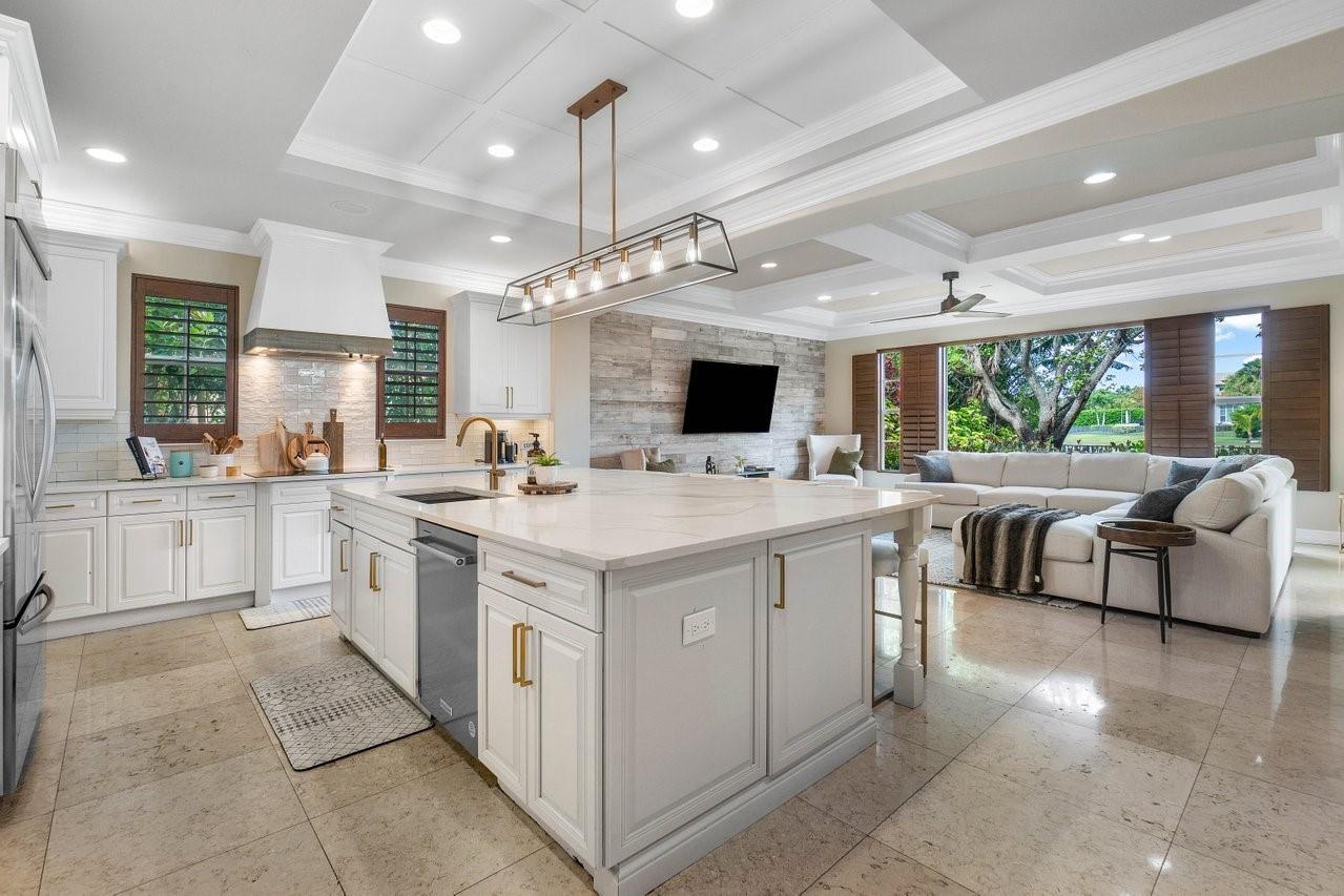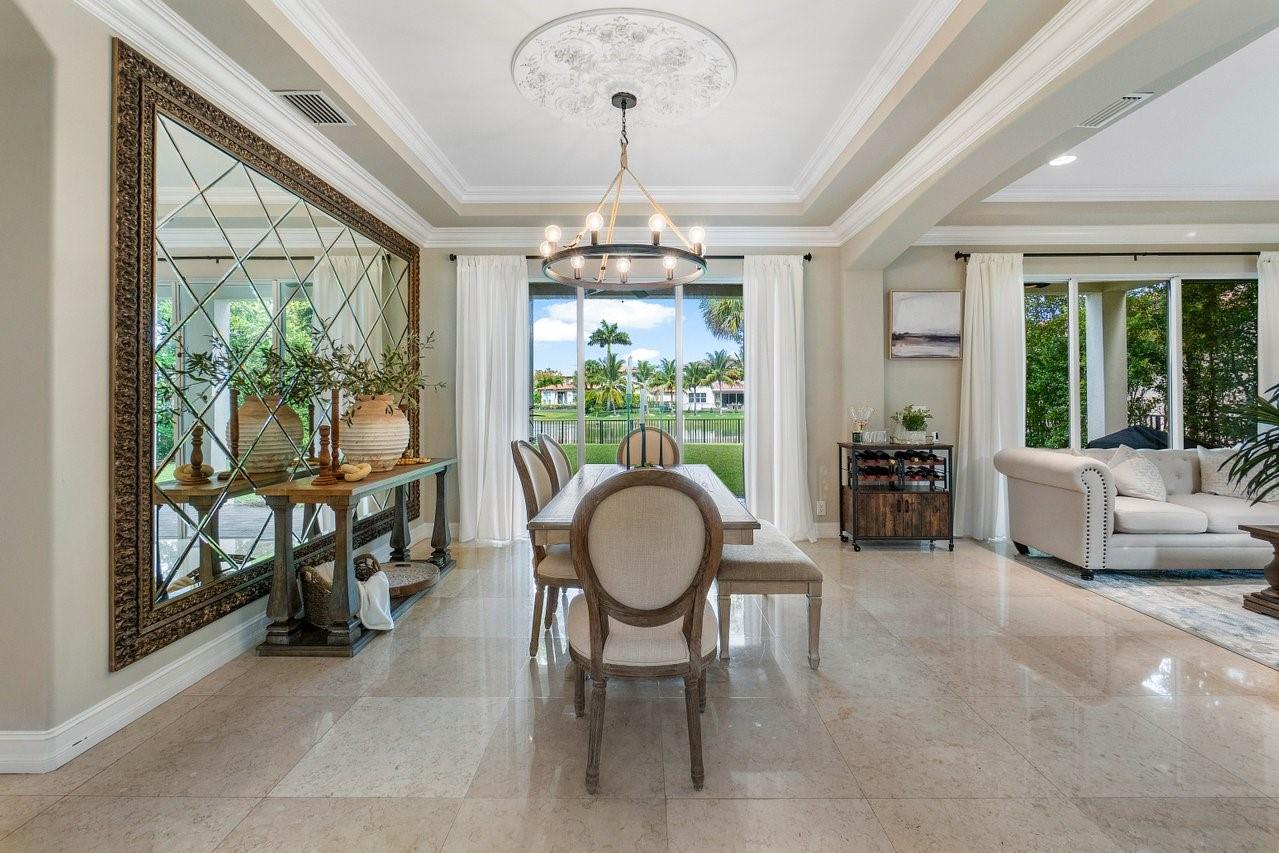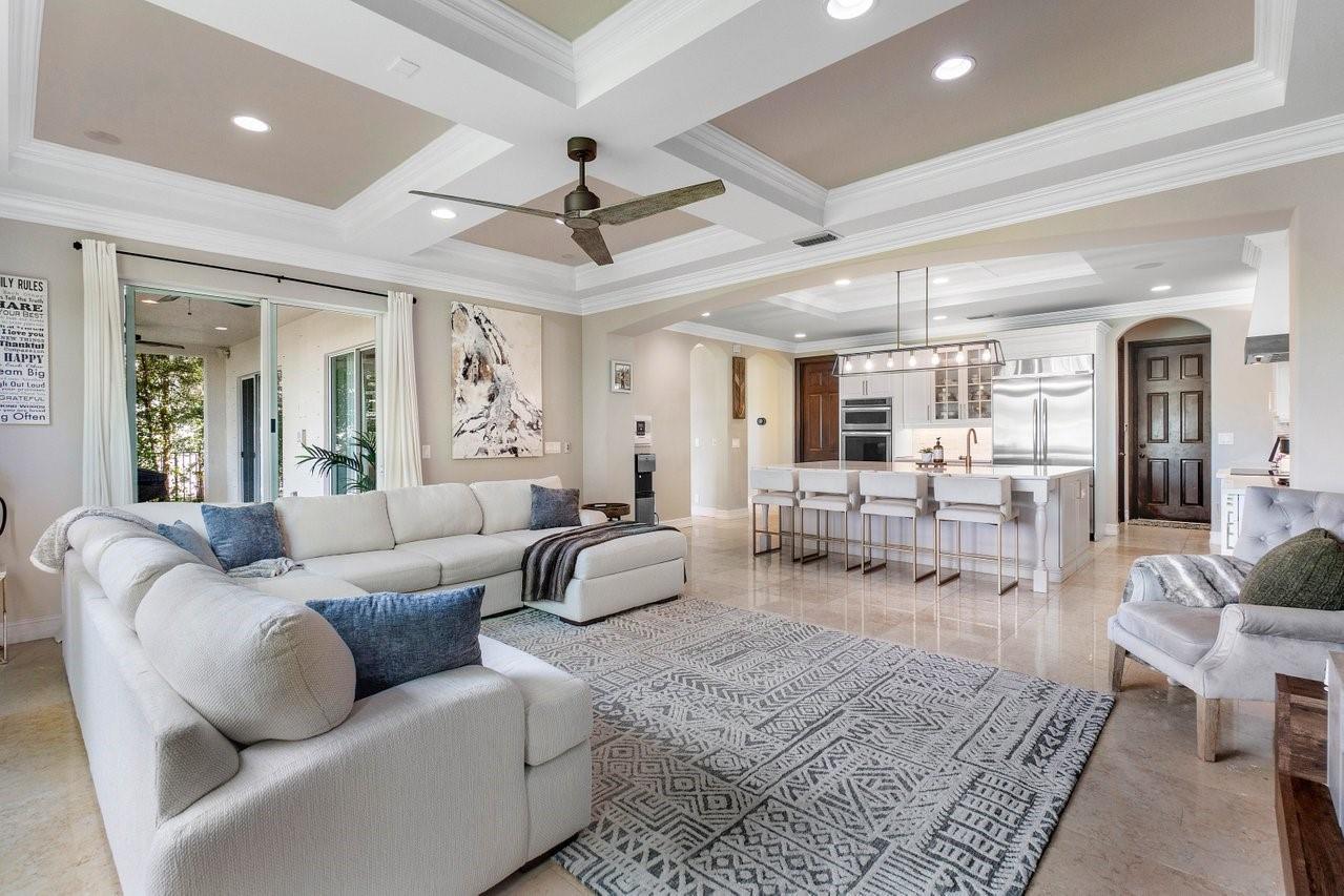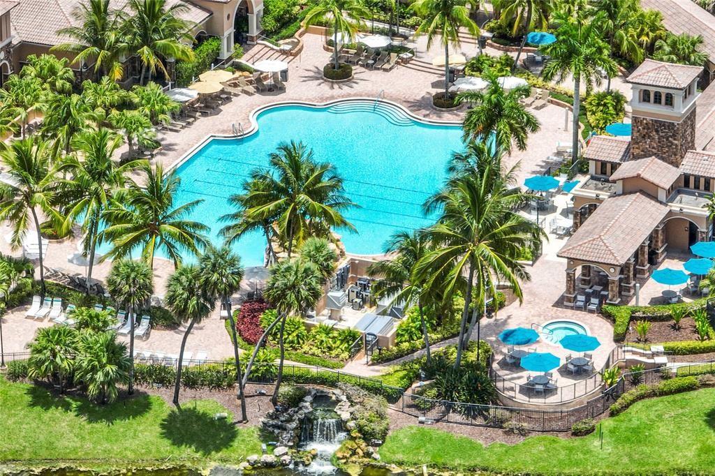 Simply a beautiful waterfront home nestled within a cul-de sac in one of south Florida's most sought after communities. An impressive curb appeal welcomes you with manicured landscape, balconies & an Idyllic courtyard. The sophisticated yet relaxed interior is drenched in natural light & features soaring 2 story ceilings, a grand stairway, walls of glass doors/windows, & stunning finishes. The large & open kitchen/family room area features a gorgeous kitchen with soft color white cabinetry, a large island, quartz counters & it comingles with the huge backyard with serene waterfrontage & glorious outdoor living areas. Sublime primary suite is impressive in size & has a sitting room & spa like bath. Media Room! Resort style living at its finest with world class amenities! Room for a pool!