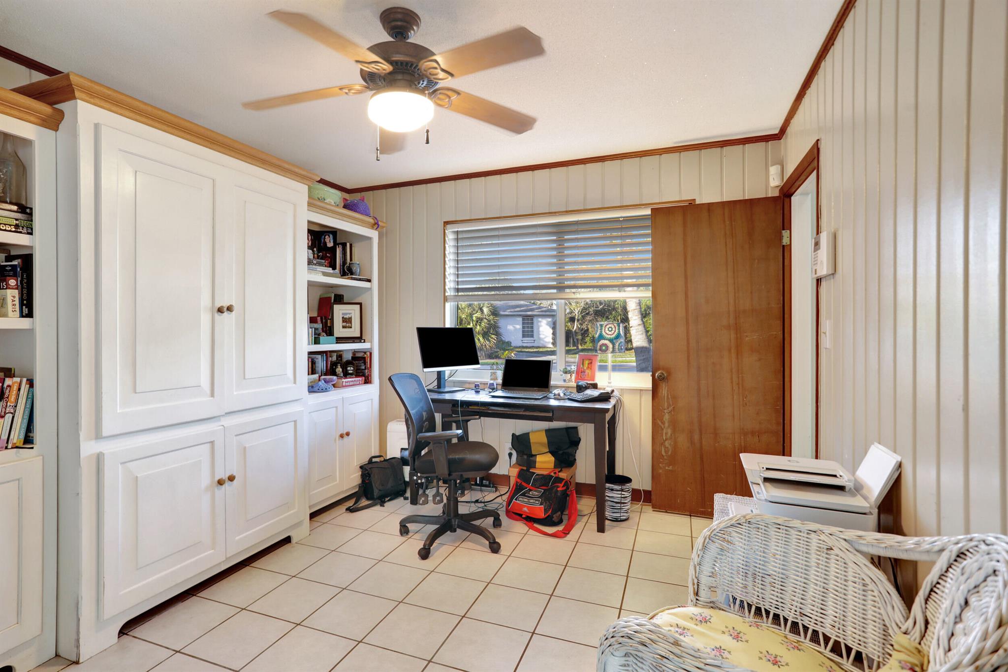 Countless opportunities beckon in this dynamic 3-bedroom, 2.5-bathroom residence boasting a study, extra lounge space, and a cozy cabana corner in the desirable Boca Square neighborhood of South Florida. This property, ripe for refurbishment, presents an exclusive chance for renovation, already featuring modern impact windows and doors installed in 2020, a new flat roof as of 2021, AC from 2019. Positioned on a corner lot, the home offers abundant room for a boat and potential expansion, free from the restrictions of an HOA. The bright kitchen, bathed in natural light, affords a charming vista of the secluded backyard and swimming pool through its window above the sink. A single-car garage boasts a dedicated laundry space, perfect for housing sports gear, bicycles, and tools. A private