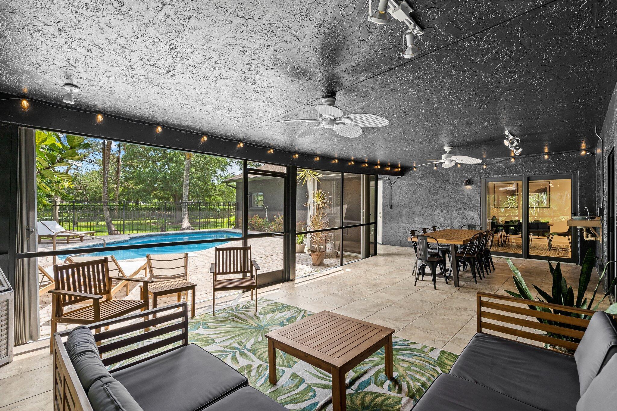 Welcome to the heart of Southwest Ranches! This stunning home offers a spacious layout with 5 bedrooms and 4 bathrooms, encompassing a generous 3321 square feet. Sitting on a sizable lot of 35533 square feet, this property is a true gem.As you step inside, the airy and bright interiors create a welcoming atmosphere. The open kitchen is a chef's dream. The primary suite is a peaceful haven, featuring a roomy walk-in closet and a luxurious en-suite bathroom. All rooms in the main home are spacious and it also Features an attached in-law/guest house w living room, kitchen, laundry, Master Suite and full bath.Outside, you'll find a private covered patio, perfect for outdoor gatherings and relaxation overlooking the pool. At night you can enjoy time by the fire pit with your family and