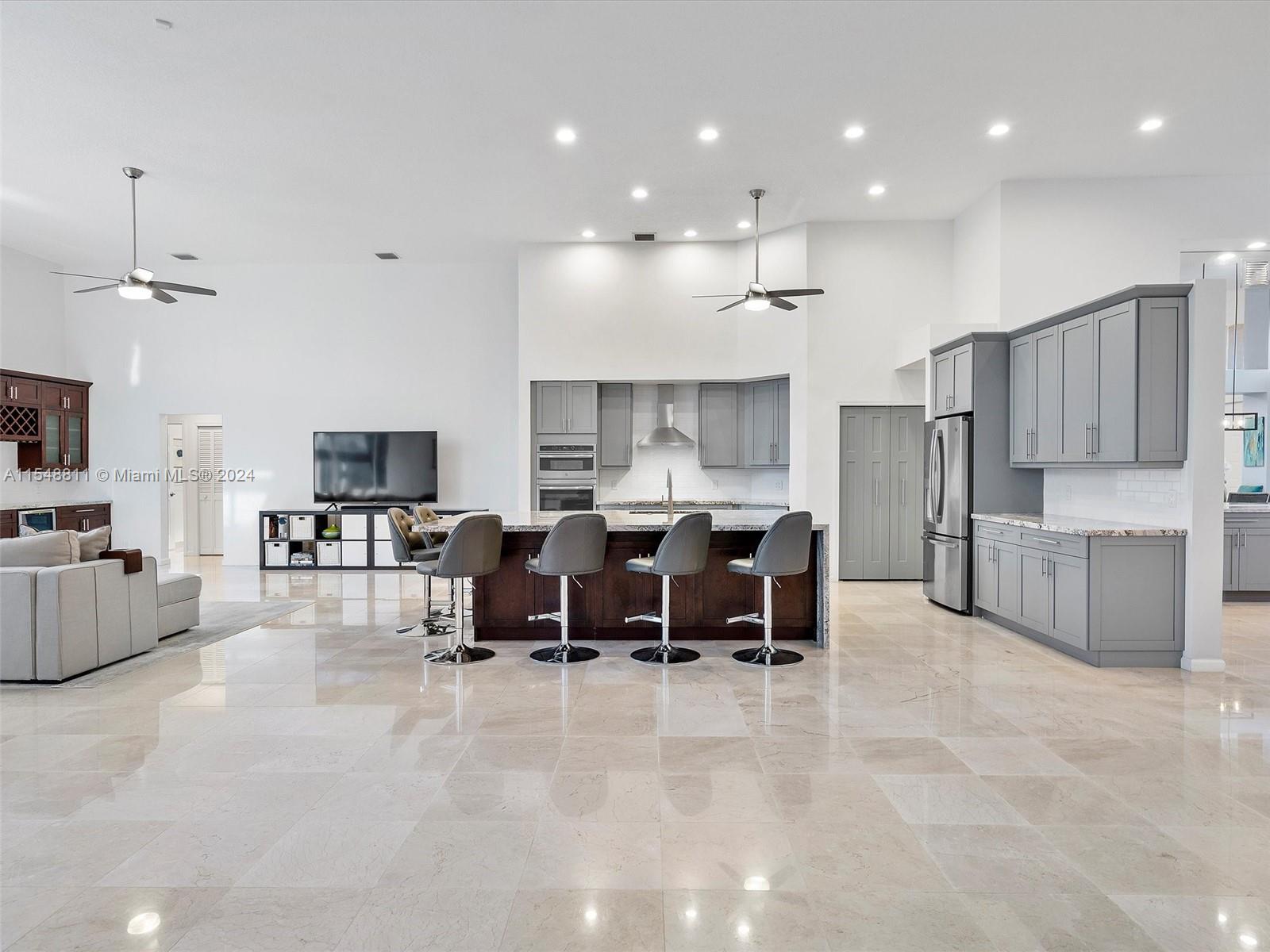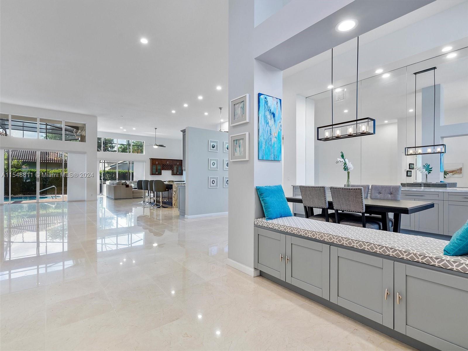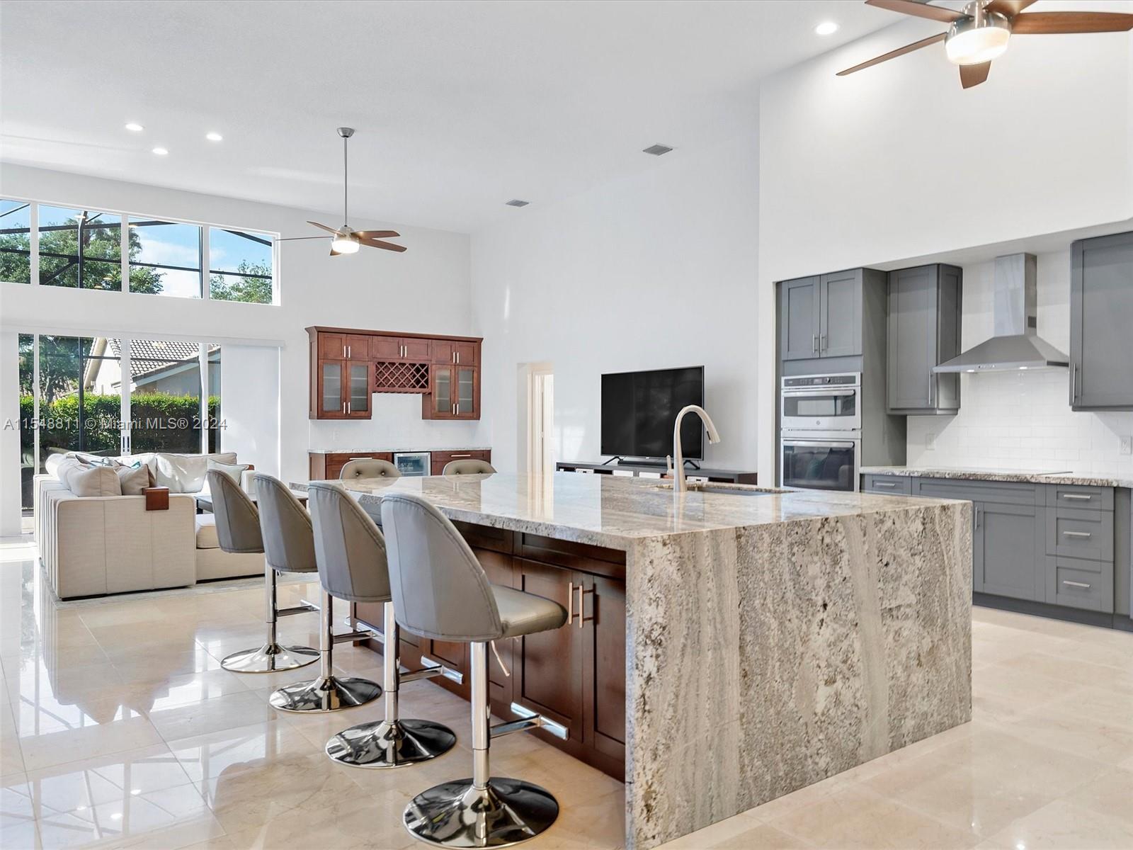 Stunning 1-story home in the desirable gated community of The Laurels @ Grand Palms in West Pembroke Pines. This renovated single-family with 5BD/3.5BA and pool offers the perfect blend of contemporary urban living and timeless elegance. The moment you open the front door, you'll be captivated by the open floor plan, high ceilings and abundant natural light. The heart of this home is the open gourmet kitchen with SS appliances, marble countertops & large center island. The family room includes a custom built-in bar & mini fridge. Marble flooring throughout the living areas; wood and luxury vinyl plank floors in the bedrooms. On an oversized lot, with a screened porch, large pool, and plenty of space to entertain. 3-Car Garage. Top rated school district. Close to I75, shopping, & dining.