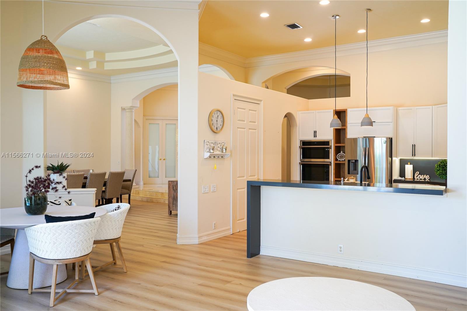 Welcome to your dream home in Weston Hills! This recently renovated single-family home features 5 bedrooms, 4.5 bathrooms, a 3-car garage, and a pool with tranquil waterfront views. Wood flooring throughout adds elegance, complemented by custom carpentry and modern finishes. Relax in the garden with stunning lake views, or enjoy the heated saltwater pool. The home also offers a convenient coffee station, new appliances, and two new air conditioning units. Located in an A+ school district with a community golf course, this home truly has it all. Don't miss the chance to own this luxurious property in one of Weston's most sought-after neighborhoods. Live the life you've always dreamed of in this beautiful Weston Hills home.