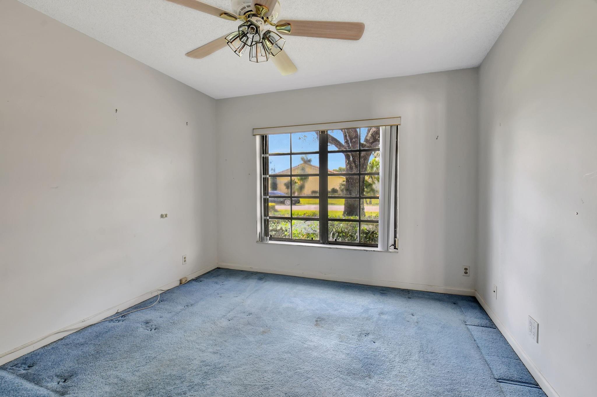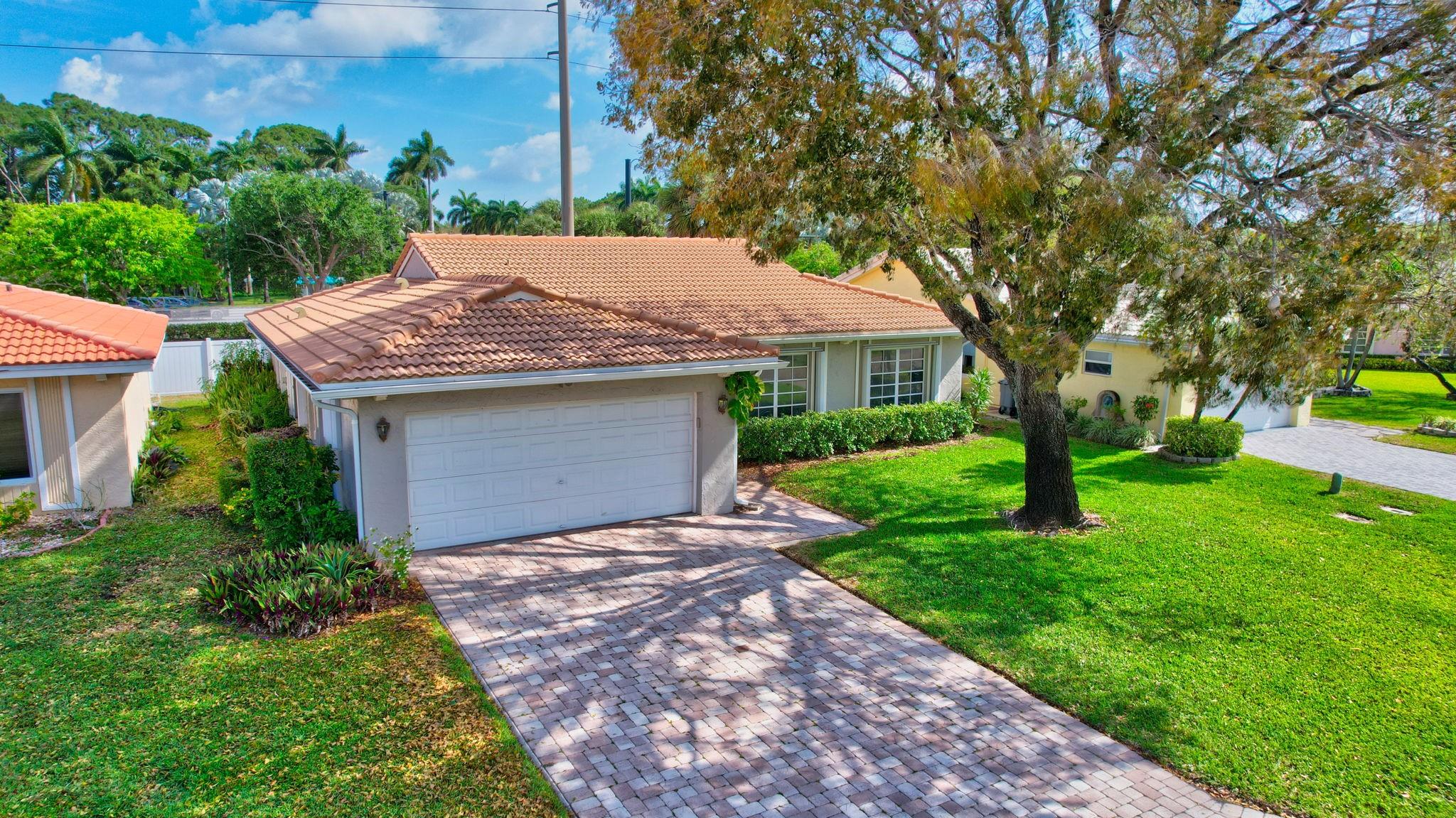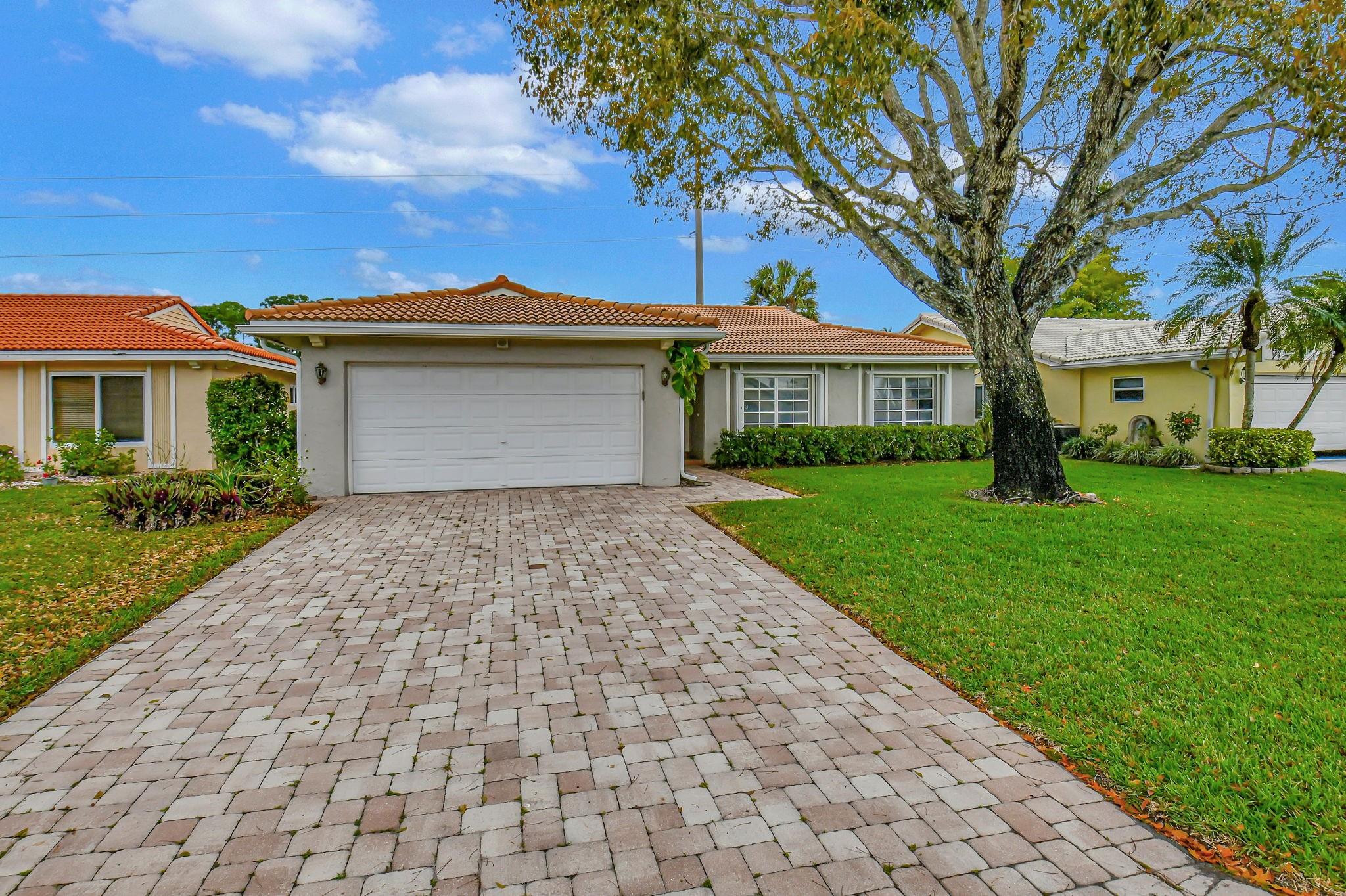 One of the lowest priced 3BR/2BA/2GA in Boca Raton with just under 2000 sf! Desirable 55+ community, Colony Woods, minutes from beach and Mizner Park! Quarterly fee ($825) includes landscaping/roof cleaning. Community pool. Three bedrooms all on one level with attached 2 car garage with hurricane impact door. Accordian shutters.. Spacious primary bedroom with walk-in closet and 2nd closet, double vanity and large shower. Second bedroom offers ample storage. Third bedroom ideal for den/family room. The vaulted ceiling enhances LR and DR. Florida room has glass and AC! Laundry room has additional storage. Bring your ideas for interior updates. Roof (2007), Accordian shutters (2009), Paver driveway (2009), AC (2015). Great location to enjoy everything Boca Raton has to offer!