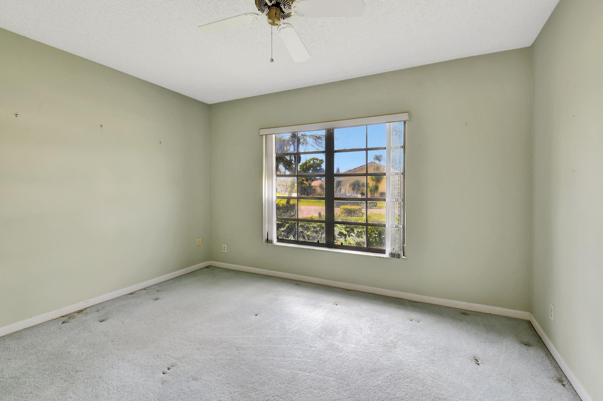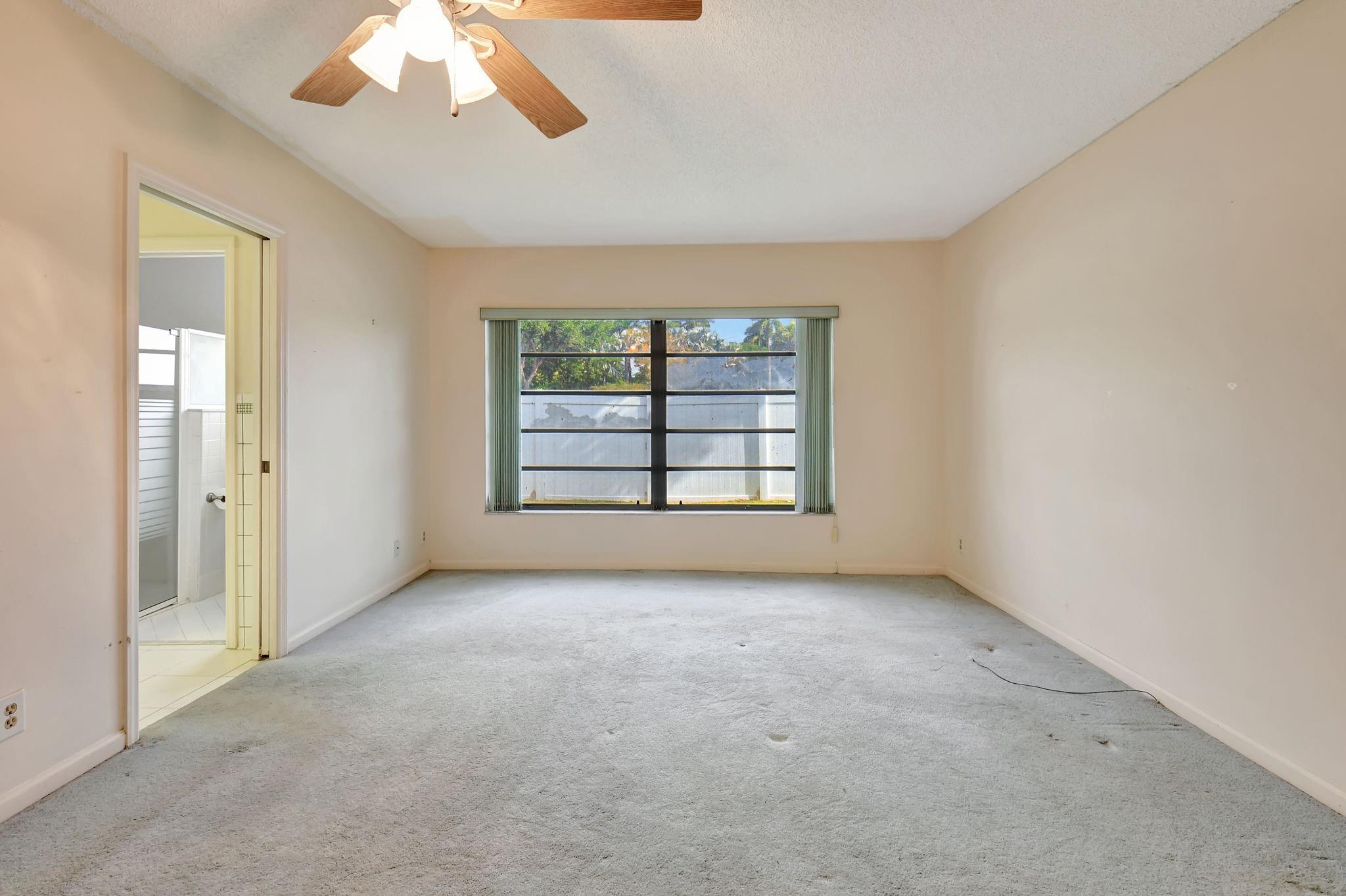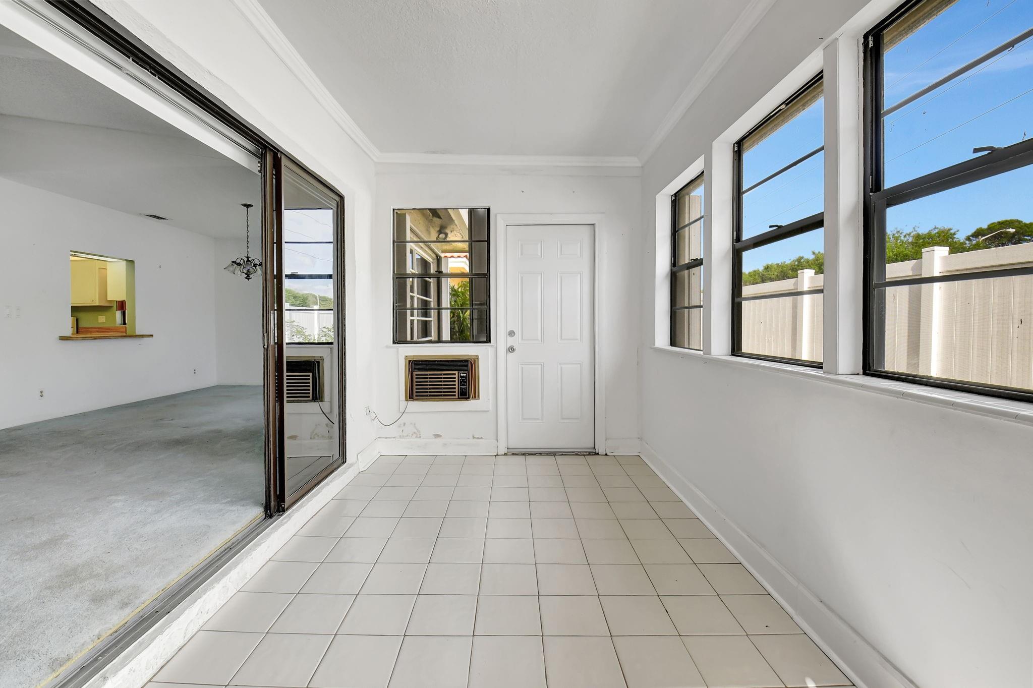 One of the lowest priced 3BR/2BA/2GA in Boca Raton with just under 2000 sf! Desirable 55+ community, Colony Woods, minutes from beach and Mizner Park! Quarterly fee ($825) includes landscaping/roof cleaning. Community pool. Three bedrooms all on one level with attached 2 car garage with hurricane impact door. Accordian shutters.. Spacious primary bedroom with walk-in closet and 2nd closet, double vanity and large shower. Second bedroom offers ample storage. Third bedroom ideal for den/family room. The vaulted ceiling enhances LR and DR. Florida room has glass and AC! Laundry room has additional storage. Bring your ideas for interior updates. Roof (2007), Accordian shutters (2009), Paver driveway (2009), AC (2015). Great location to enjoy everything Boca Raton has to offer!