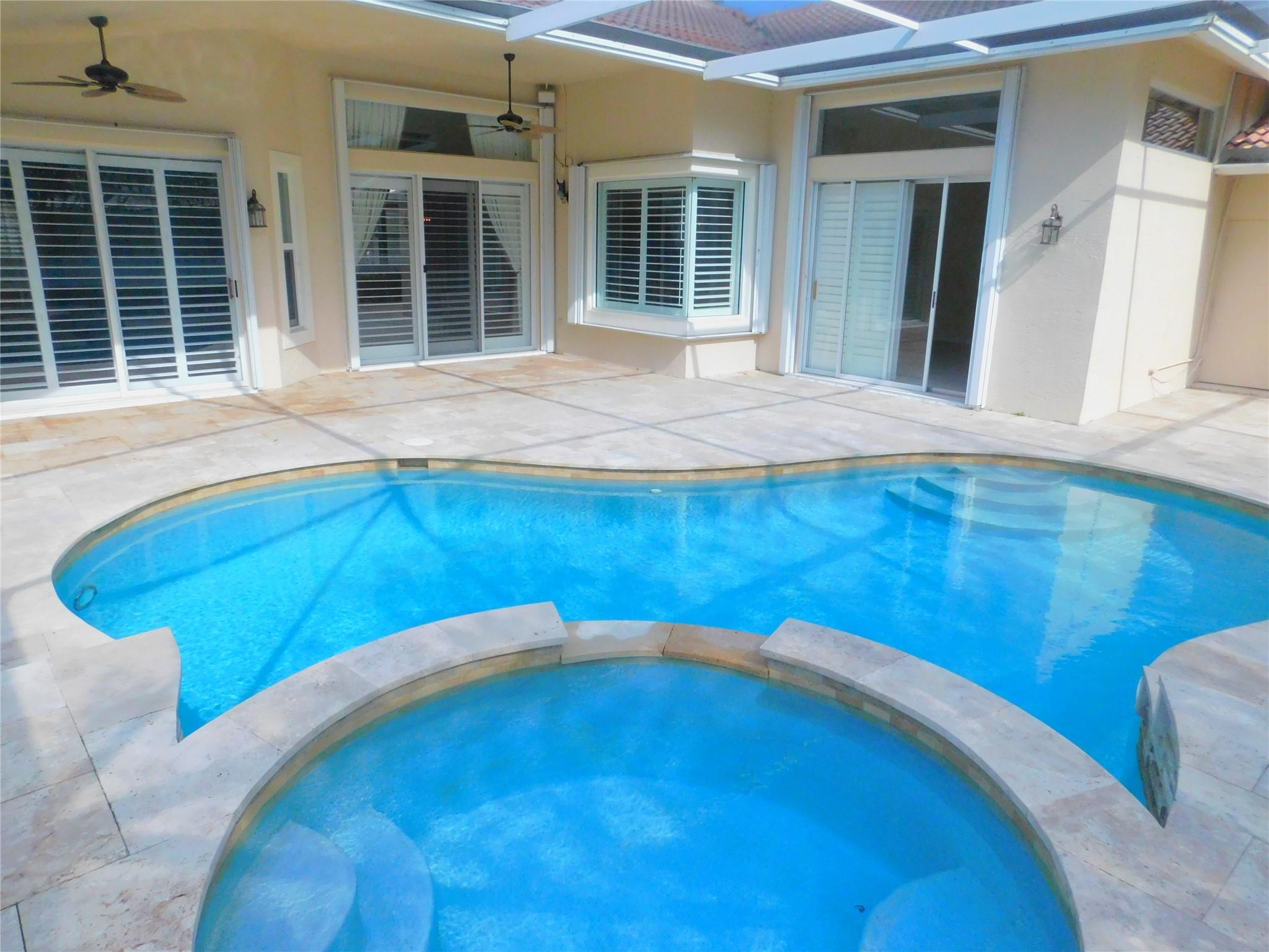 Turtle run has another beautiful property to present. One of Coral Springs prestigious areas. The minute you enter, you can feel the spaciousness of the high ceilings, the sunshine coming in broad windows w/plantation shutters & the open flow of the triple split floor plan that also gives seclusion. Primary bedroom has double door entry, 2 separate walk in closets, sliders going out to screened heated pool with hot tub. Primary bath has separate shower and large tub. AC 2010. Corian kitchen counters, two wall ovens, kitchen island and nice stainless steel appliances. Hurricane accordion shutters and panels. Under air laundry room with granite counters, wine cooler, stainless steel sink and plenty of cabinetry! Three car garage. A playground, ball parks, basketball and great schools near by