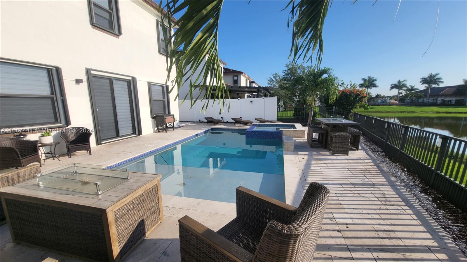 BEST PRICED HOME ON THE MARKET. This magnificent residence boasts an expansive open floor plan adorned with high-quality upgrades and finishes. Its state-of-the-art custom kitchen features Samsung/KitchenAid appliances, quartz countertops, built-in island, & sleek white wood cabinets. Step into your own private backyard oasis complete with a customized heated salt water pool & jacuzzi, offering breathtaking views of the lake. A stunning glass railing staircase guides you through the home, illuminated by modern LED lighting. The first floor is adorned with tiled floors while the second floor features elegant wood flooring, electrical white zebra blinds provide both privacy and style. Other amenities include a two-car garage, security cameras, a Ring doorbell, and a smart home alarm system.