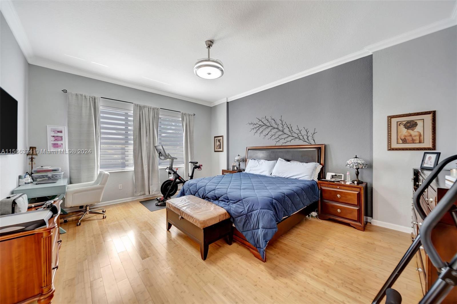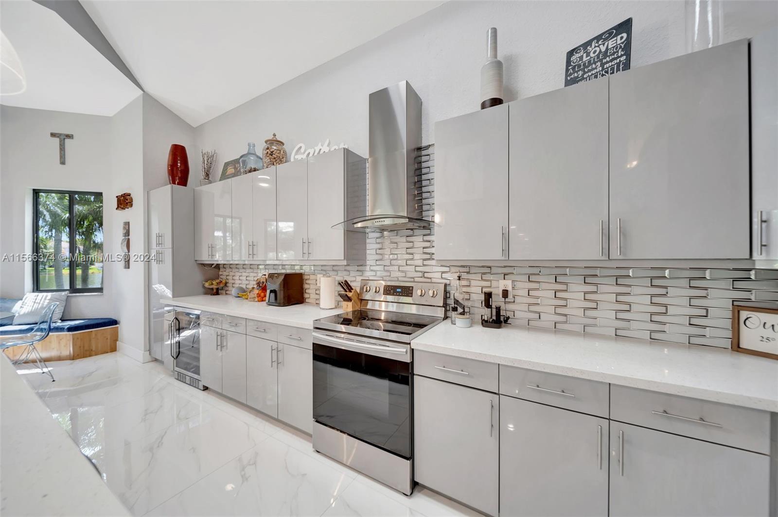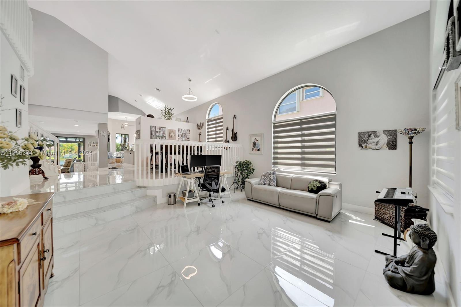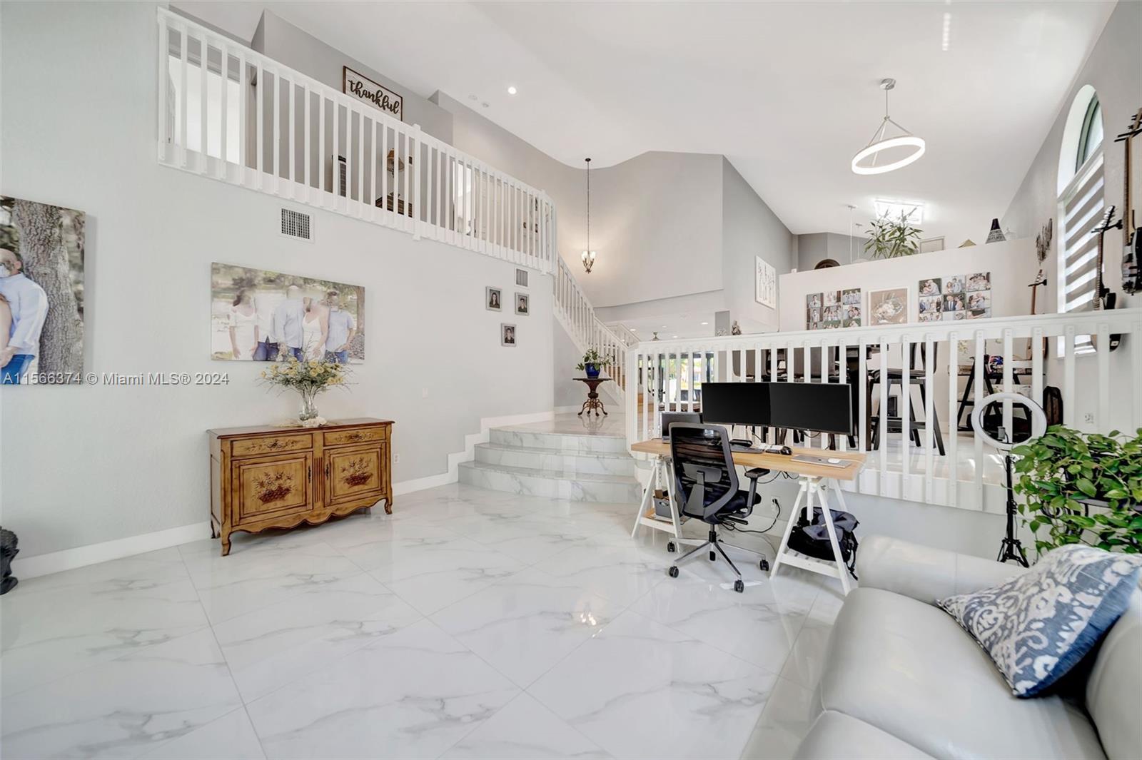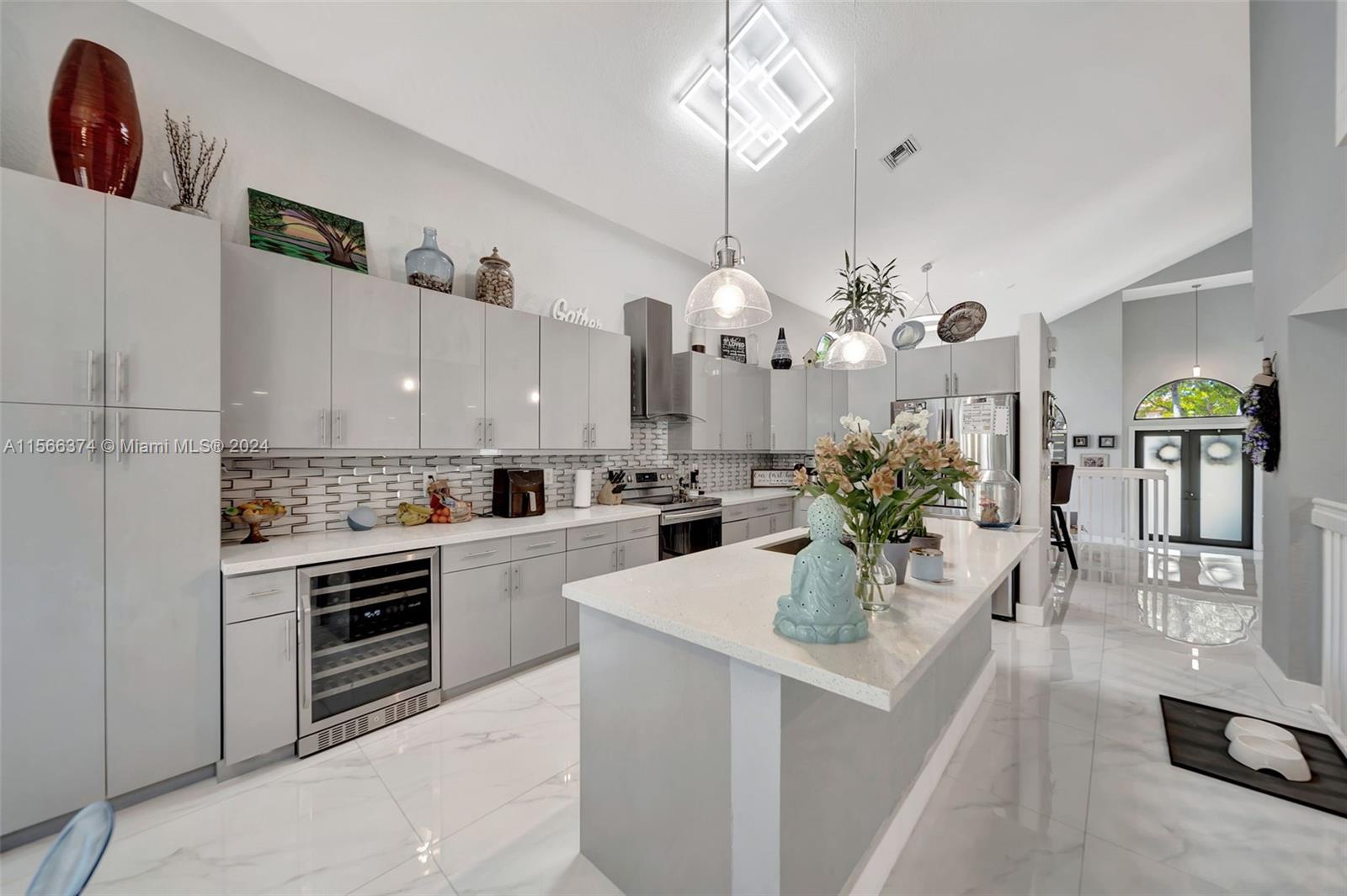 Gorgeous two story, lakefront home in Capri section of Riviera Isles Cambria Model. Very open and bright! Large, remodeled kitchen and new Porcelain tile flooring downstairs with vaulted ceilings. New Impact Windows and Doors thru-out. Original Roof. One Full bedroom & totally remodeled full bath downstairs. Formal dining room, living room and large family room are Perfect for family gatherings. Primary BR upstairs with separate sitting area. Could be office/den. New Covered Gazebo & patio in the waterfront backyard. Serene Tropical Setting. Additional upgrades include New Solar Water Heater, New Water Filter/Softener, Attic insulation & solar attic fan keep the house nice & cool. Separate Laundry Room in house. Riviera Isles has a 24/7 manned guard gate & amazing community pool.