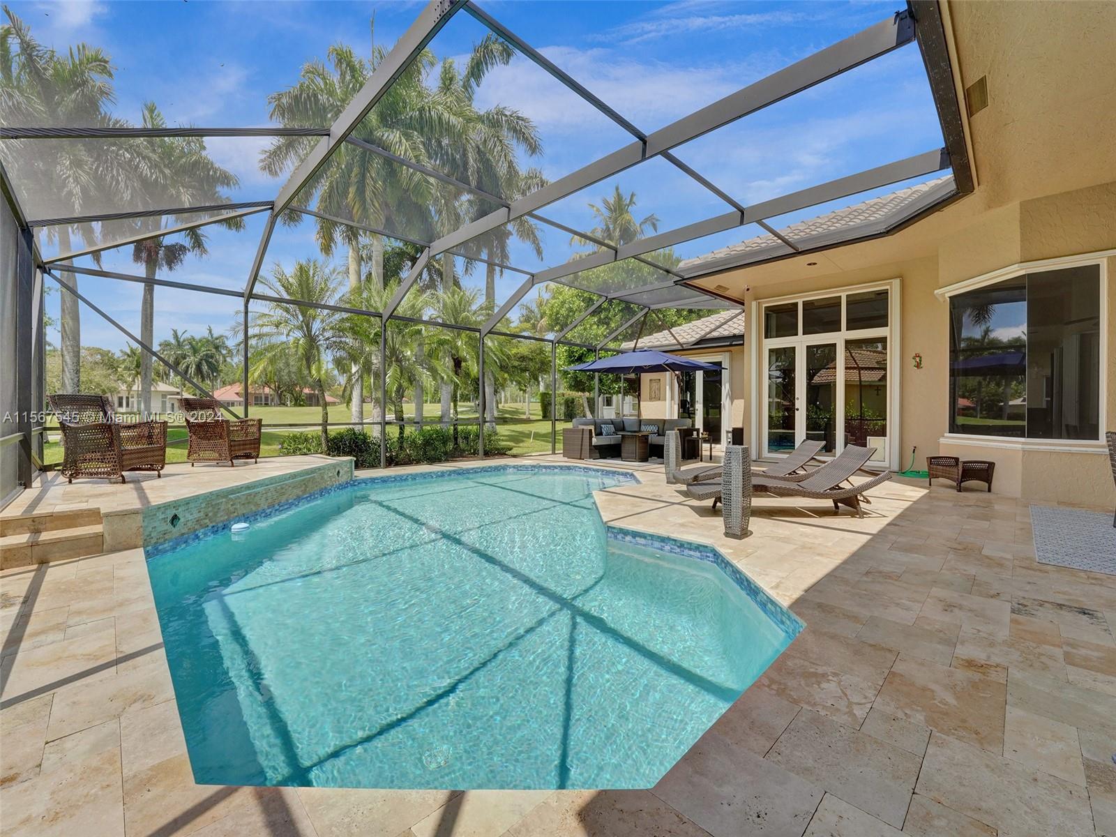 Welcome Home to a fully renovated, luxurious home in the prestigious Weston Hills CC. Featuring new roof 2022, 5 beds, large bonus room, 3.5 renovated baths, marble flooring throughout living areas, and abundant natural lighting overlooking pool and golf course views. Newly designed kitchen w/ premium appliances, quartzite countertops, custom cabinets, wine fridge, and wet bar area. The primary suite is a haven of relaxation w/ pool area views, renovated spa-like bathroom, w/ vessel tub, and rainfall shower. Three-way split floor plan that ensures privacy for every family member. Step outside French Doors to the redesigned and resurfaced heated pool, travertine pool deck, and screen enclosure. Move-in and experience luxury living at Weston Hills CC. See attachments for full upgrade list.