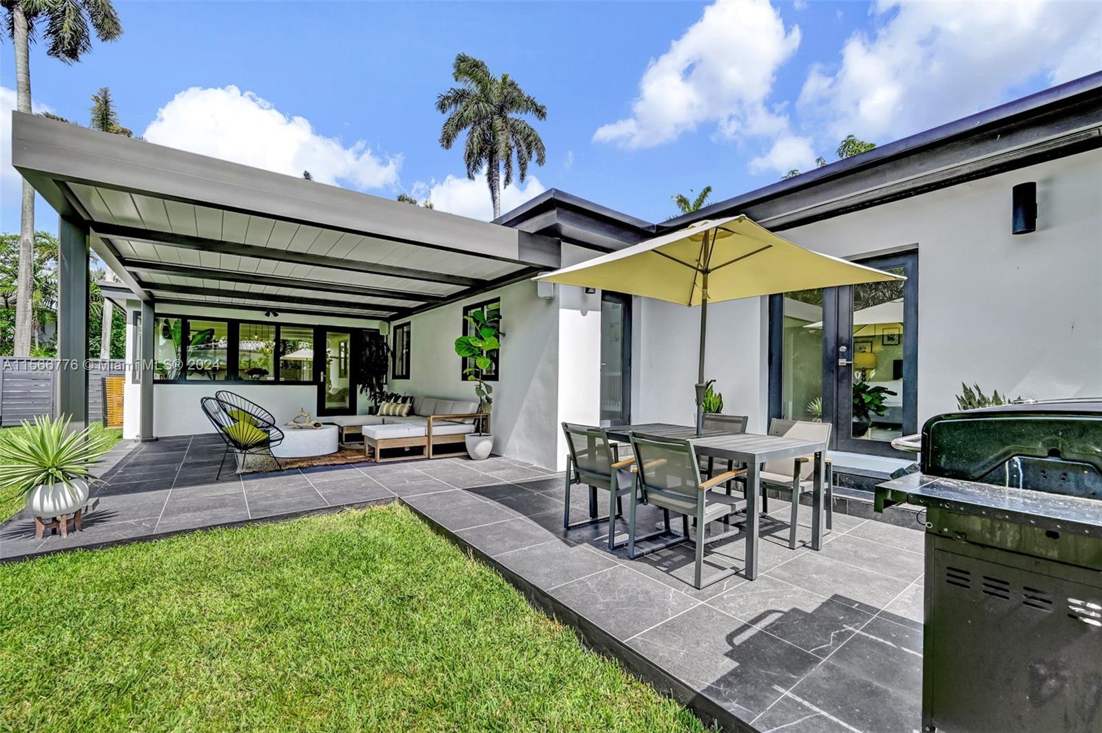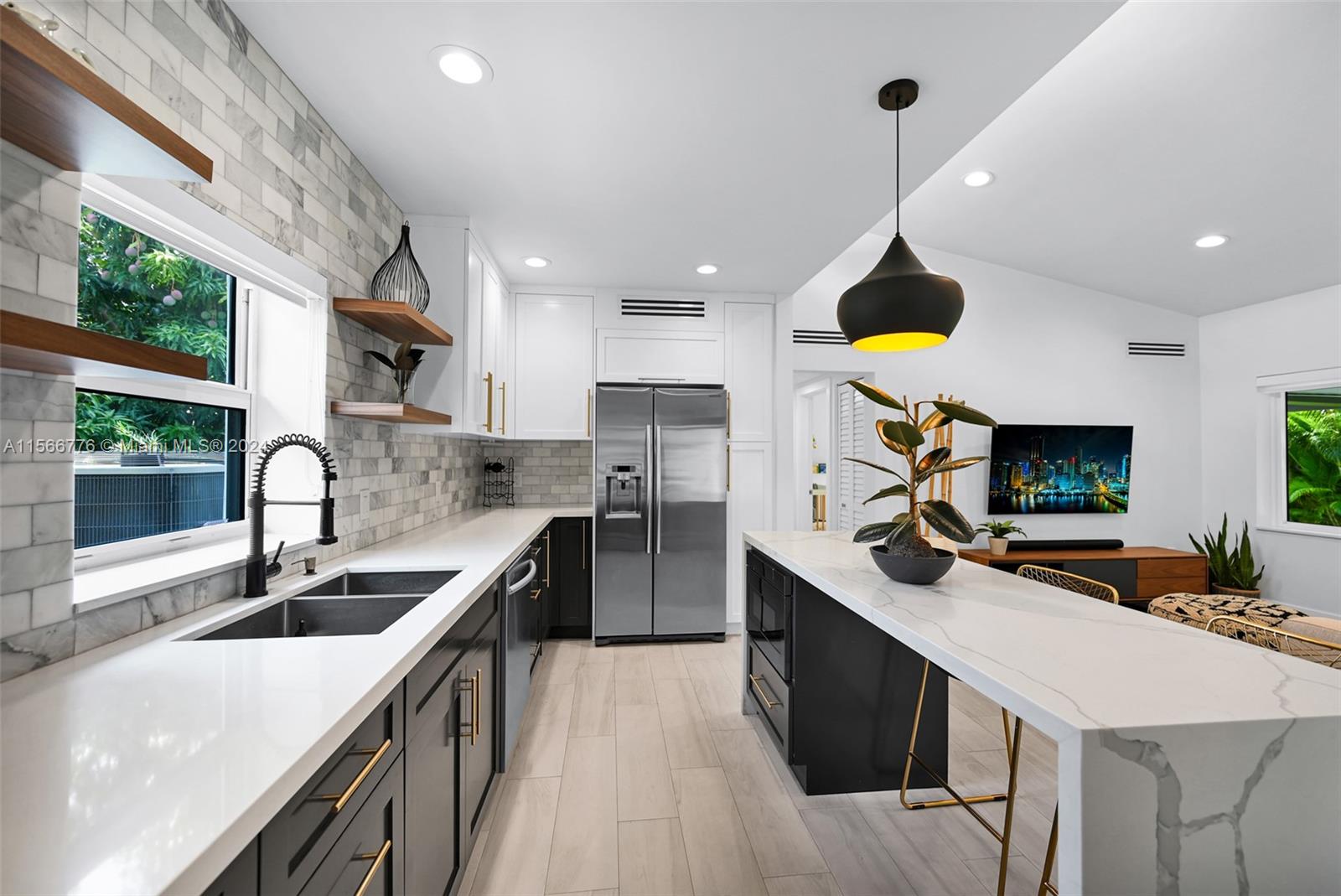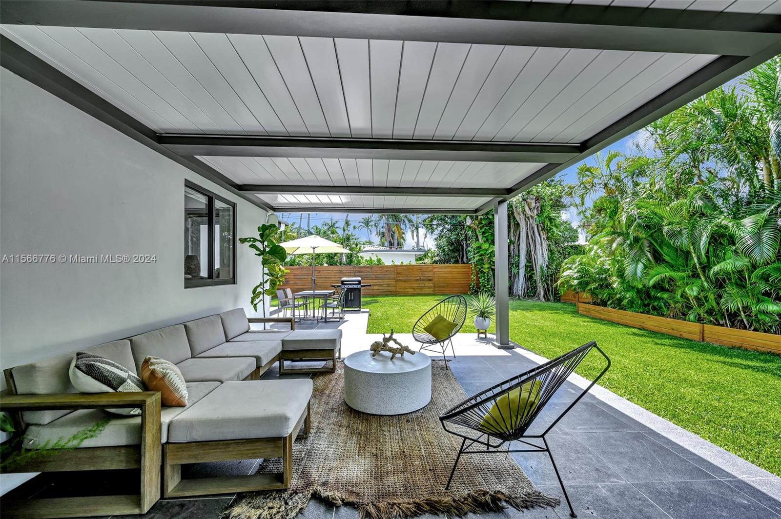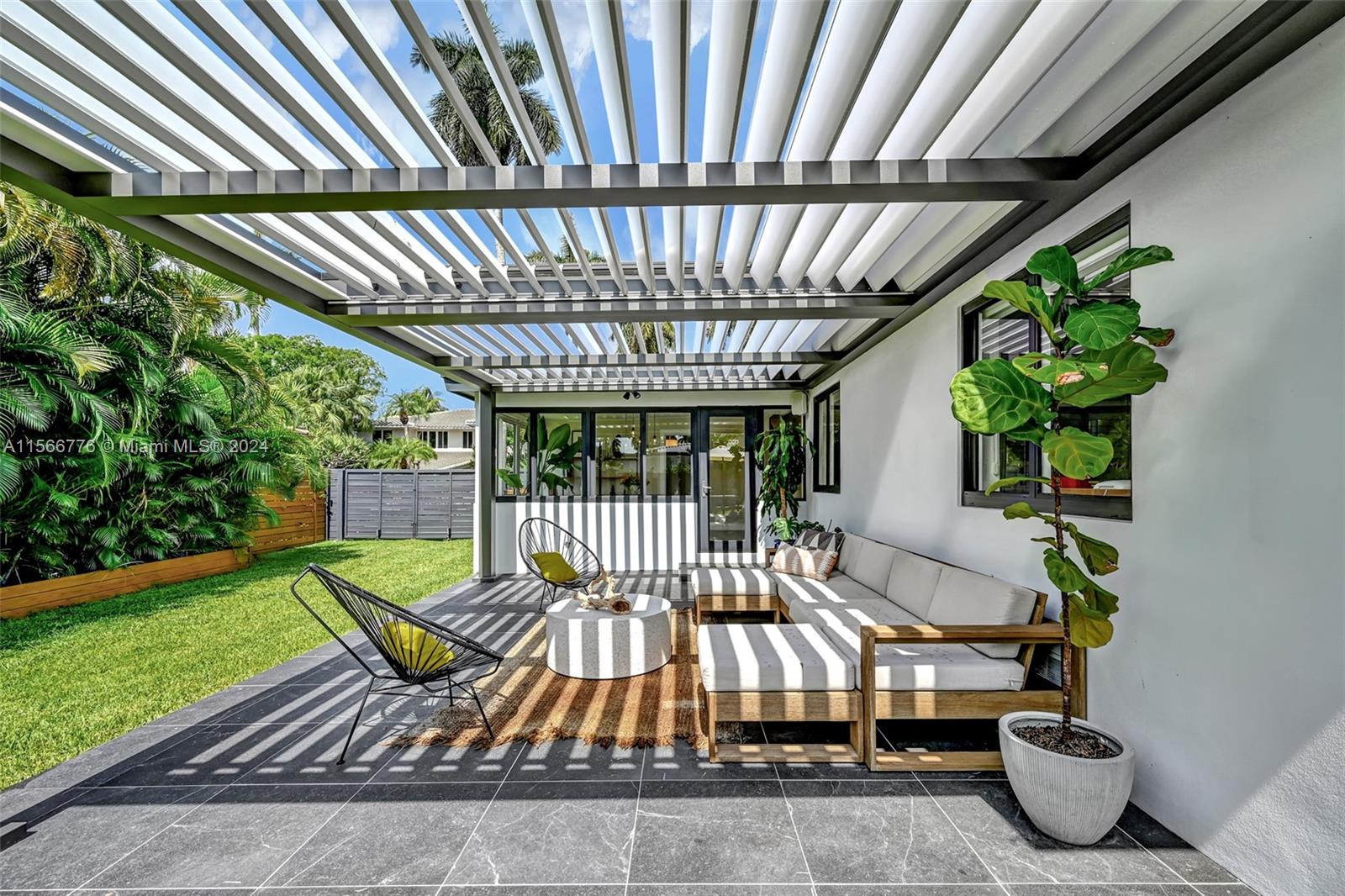 Ease into the prestigious North Bay Island community and discover a remarkable home that encapsulates the essence of modern tropical living. This fully renovated and thoughtfully designed residence epitomizes the concept of open space, offering a seamless flow throughout. Boasting three bedrooms and three bathrooms, this home provides generous living areas for comfort and enjoyment. Each room offers delightful vistas, inviting you to gaze upon the expansive greenspace backyard. Wander outside and relish in the oversized terrace, complete with a remote-controlled louvered pergola, creating the perfect ambiance for relaxation. Every detail in this home has been meticulously attended to, showcasing a commitment to quality and luxury.