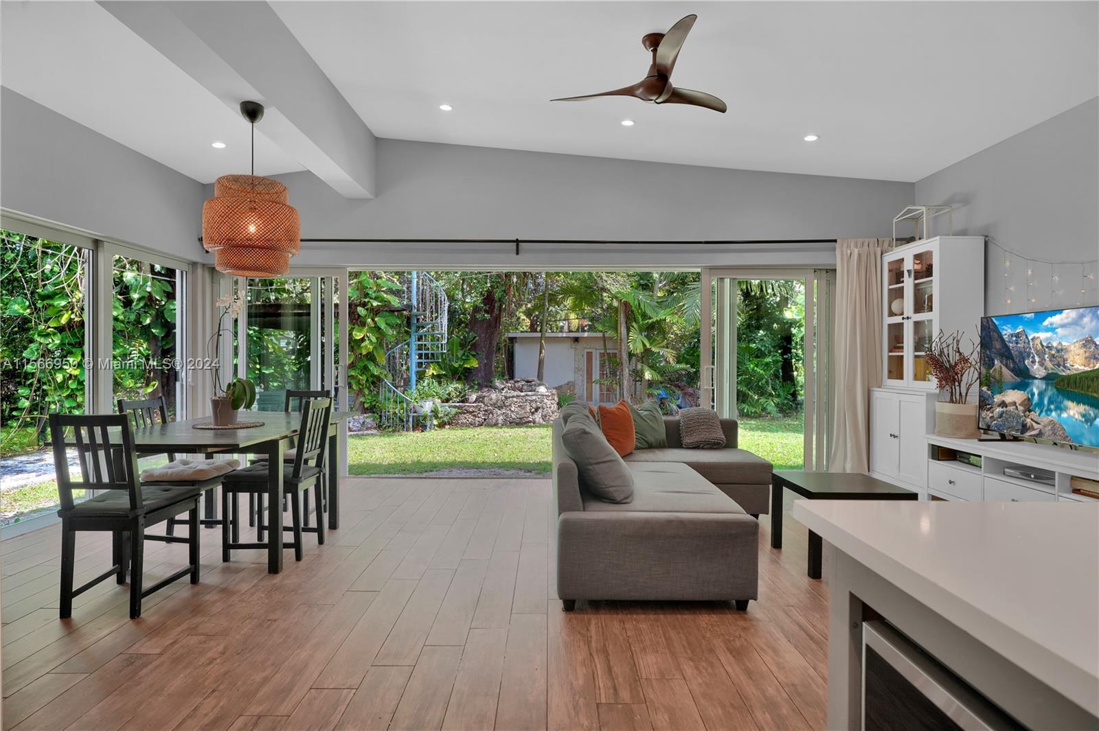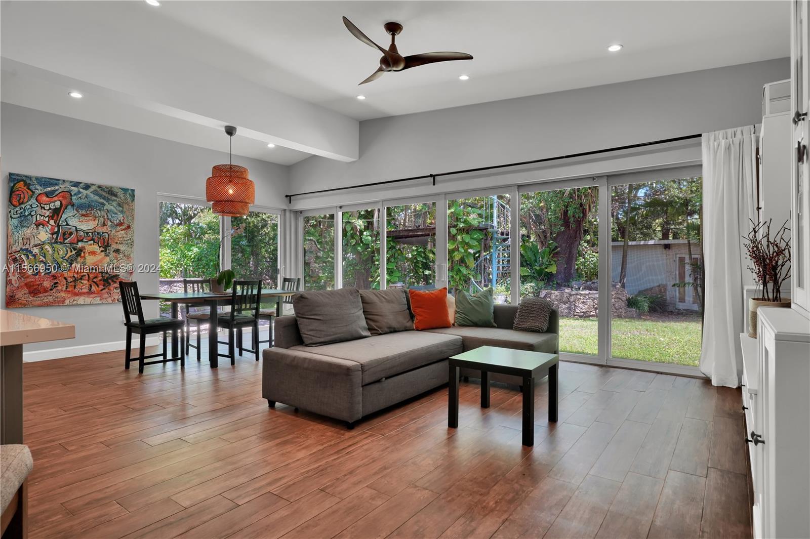 Newly reconstructed three bedroom two bath home in the heart of South Miami. Fully reconstructed in 2018, this home features a large open floorplan with a huge modern kitchen equipped with soft close drawers and pull outs, lazy susan storage organizers, Sub Zero refrigerator, large single piece kitchen island with oversized farm sink, additional storage, and electric. The bathrooms both feature double sinks and subway tile and the floors are wood-look porcelain tile. Floor to ceiling hurricane impact windows, in the main living room doors slide fully to create the perfect environment for seasonal living. Large lot adorned with various coral rock features: arches, walk-way, walls, and more. Centrally located on a very low traffic residential street. Roof 2018 strapped.