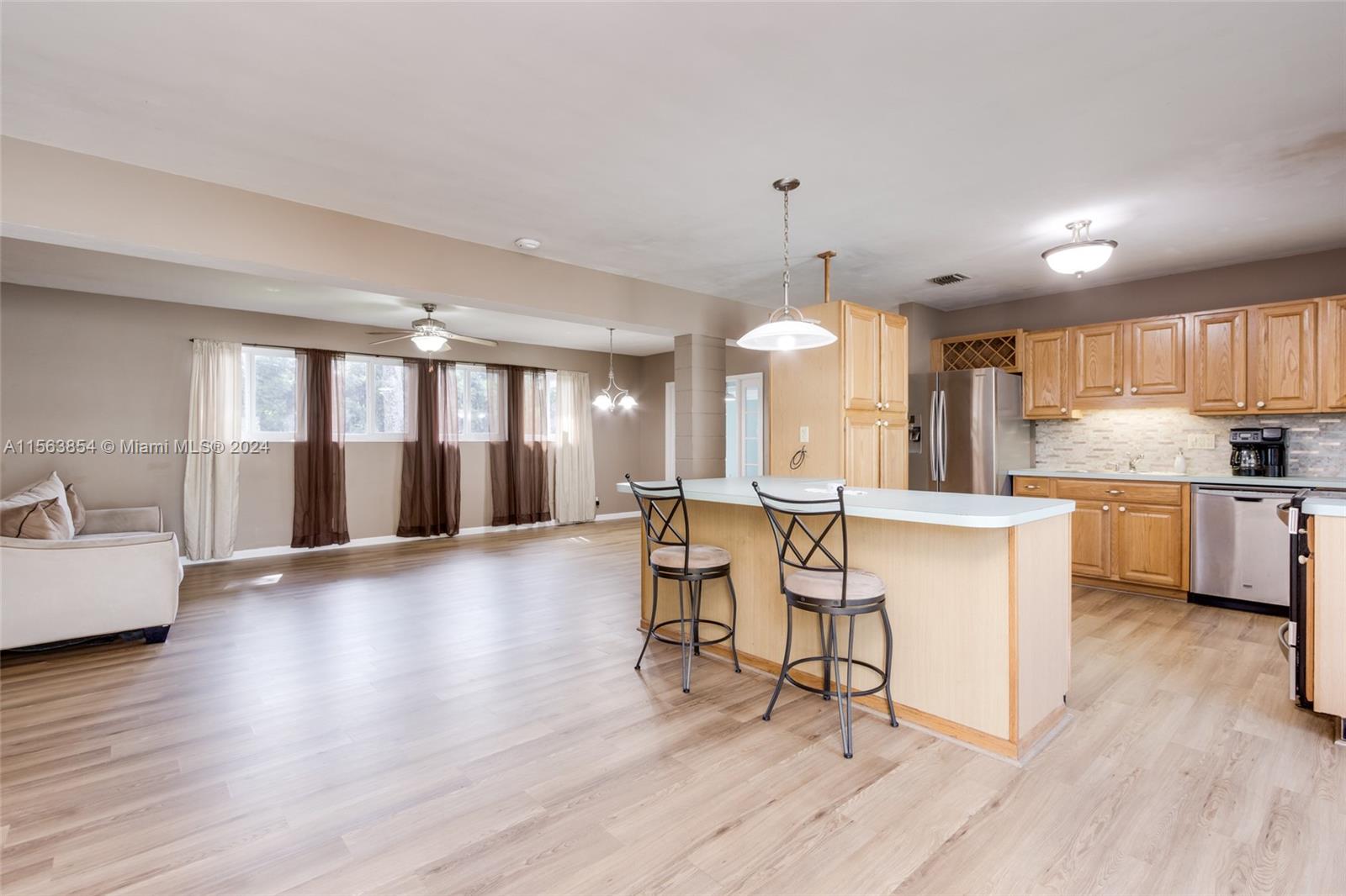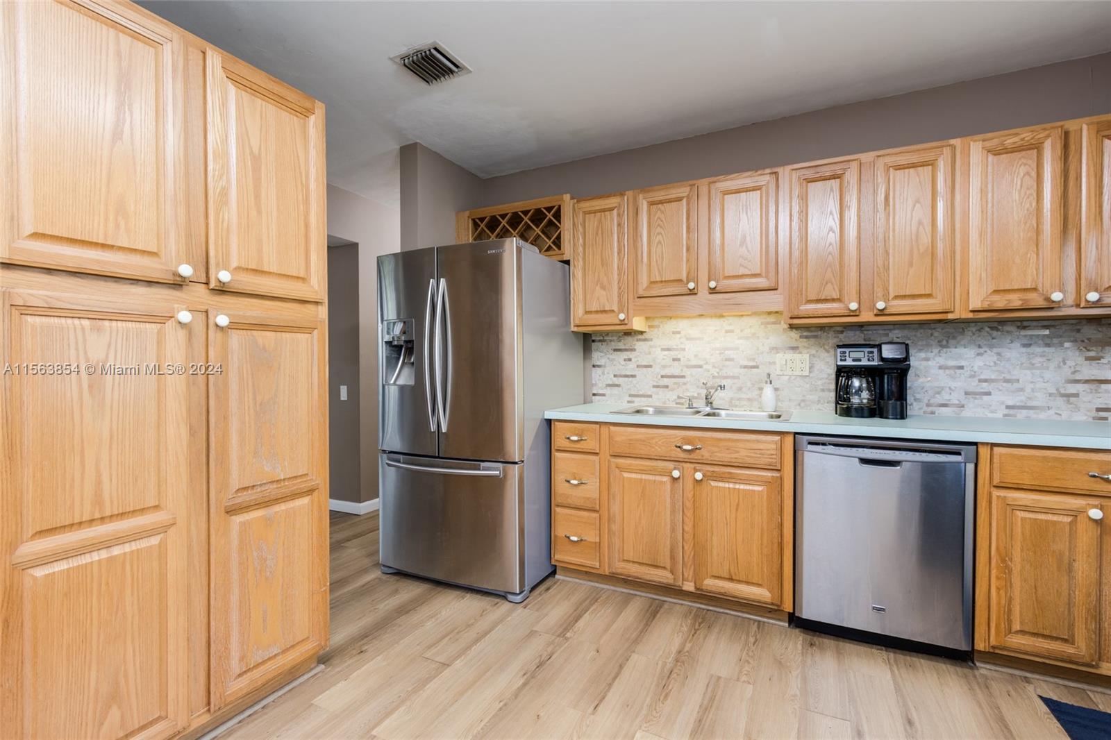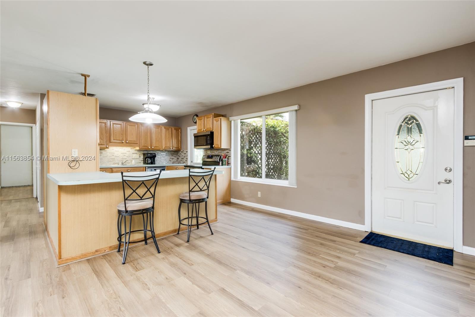 Plantation Park presents this charming 3-bedroom, 2-bathroom home! Step into a living room filled with natural light, offering views of the backyard and the covered patio deck. The kitchen is equipped with oak cabinets and stainless steel appliances. Mature tropical trees adorn the property. Inside, you'll find a delightful combination of vinyl wood plank and tile flooring. With a split floor plan, all windows are hurricane-resistant, and a newer roof was installed in 2020. The side yard space for RV or boat parking. Beautiful saltwater pool home, complete with a pool pump installed in 2022. The hot water heater was replaced in 2019, and the A/C unit was upgraded in 2023. Bonus room , 360 square foot Florida room, air conditioned. Total adjusted square footage is 1947. No HOA!