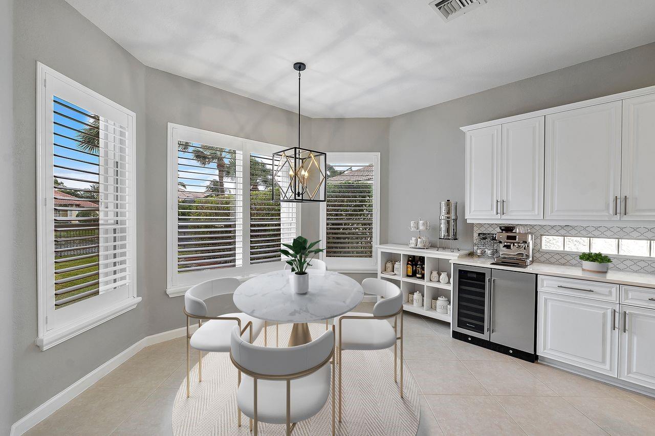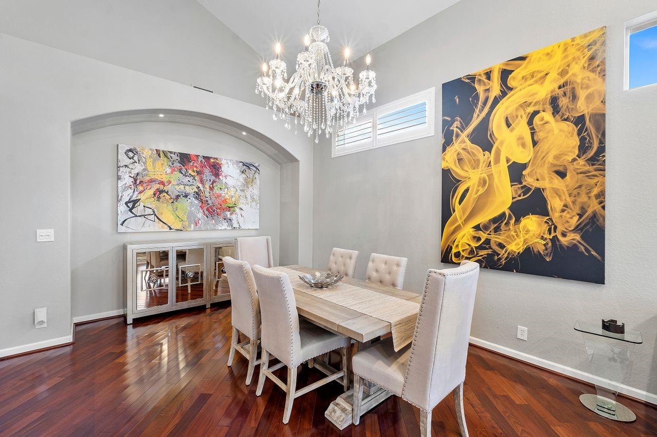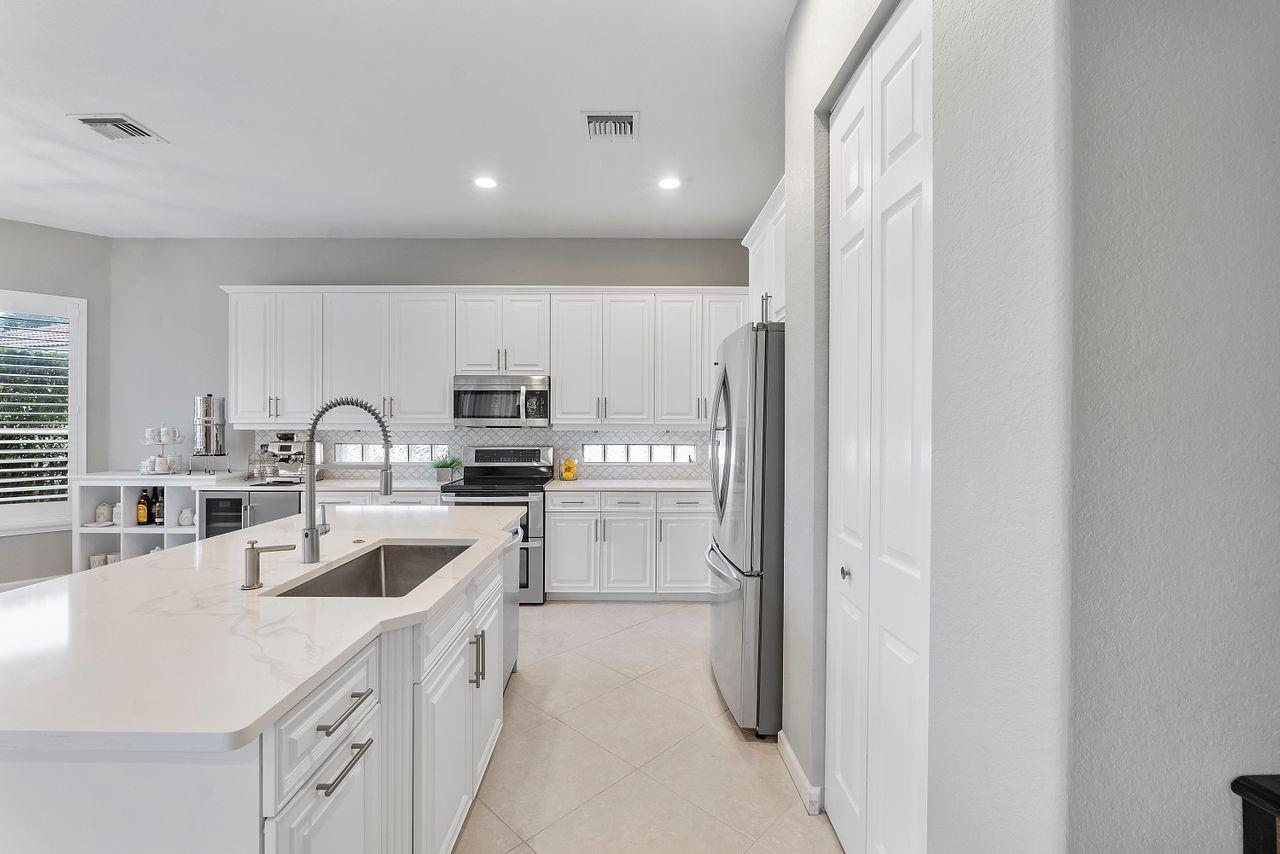 Heron Bay - Updated 2 story home in Bay Cove featuring over 3,000 sq. ft. & spectacular water views. 4 beds, 3 baths (1 bed & bath down), volume ceilings, crown molding, real wood flooring in main area & bedrms, marble flooring up, surround sound & accord. shutters & 2 zone TRANE A/C (2018). Gourmet kitchen w/ quartz counters, SS appliances, wine cooler, Plantation Shutters & stunning water views. 3 beds up inc. built-in office/murphy bed & a spacious primary suite offering dual custom closets, open balcony w/ water views & spa bath. Fully fenced yard w/ expanded travertine patio, tranquil water views & plenty of rm for a pool. Custom garage cabinetry, epoxy floors & more! Resort amenities inc. 2 pools, tennis/pickleball, playground, fitness ctr., basketball, cafe, guard gated & A schools.