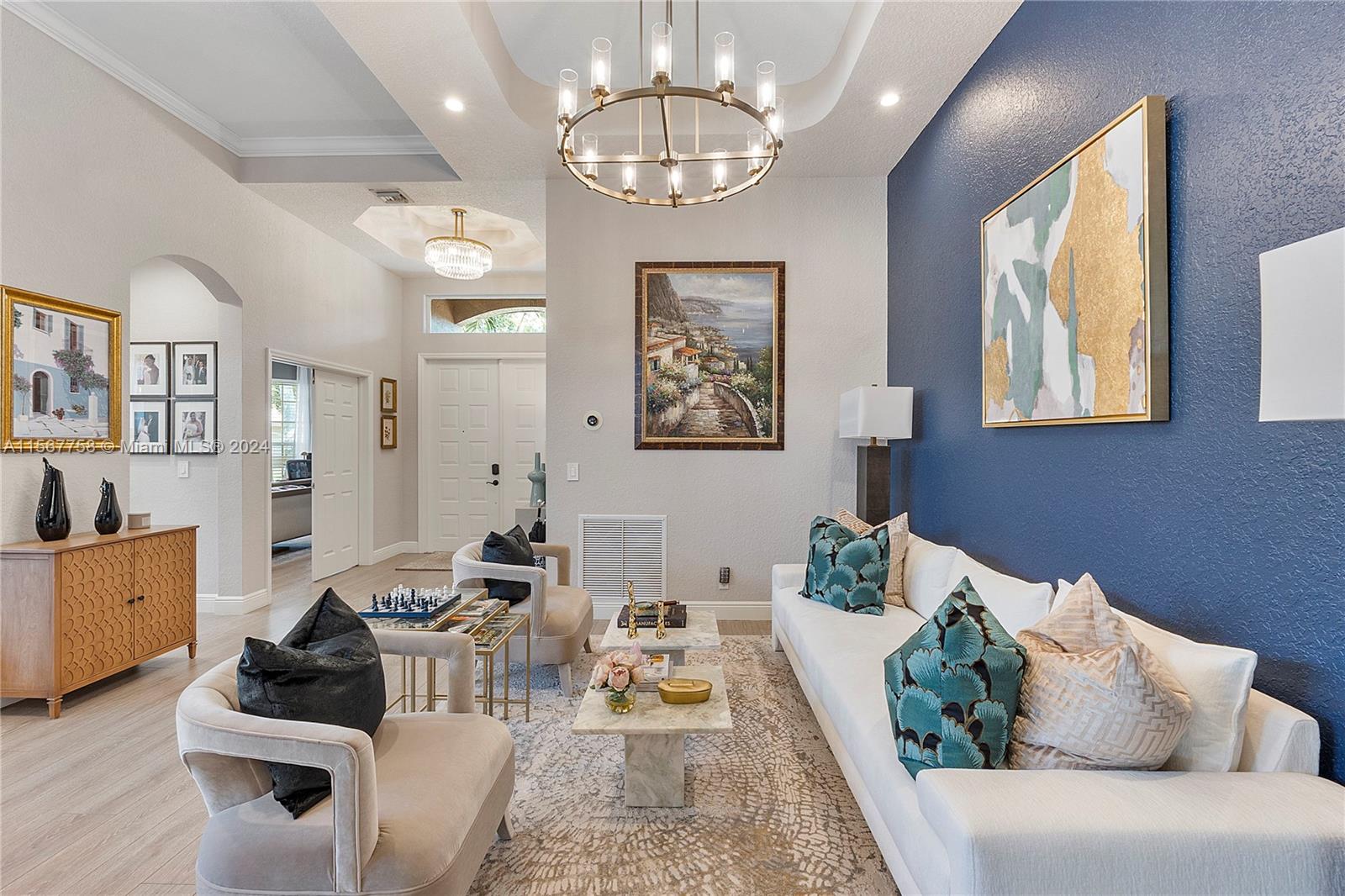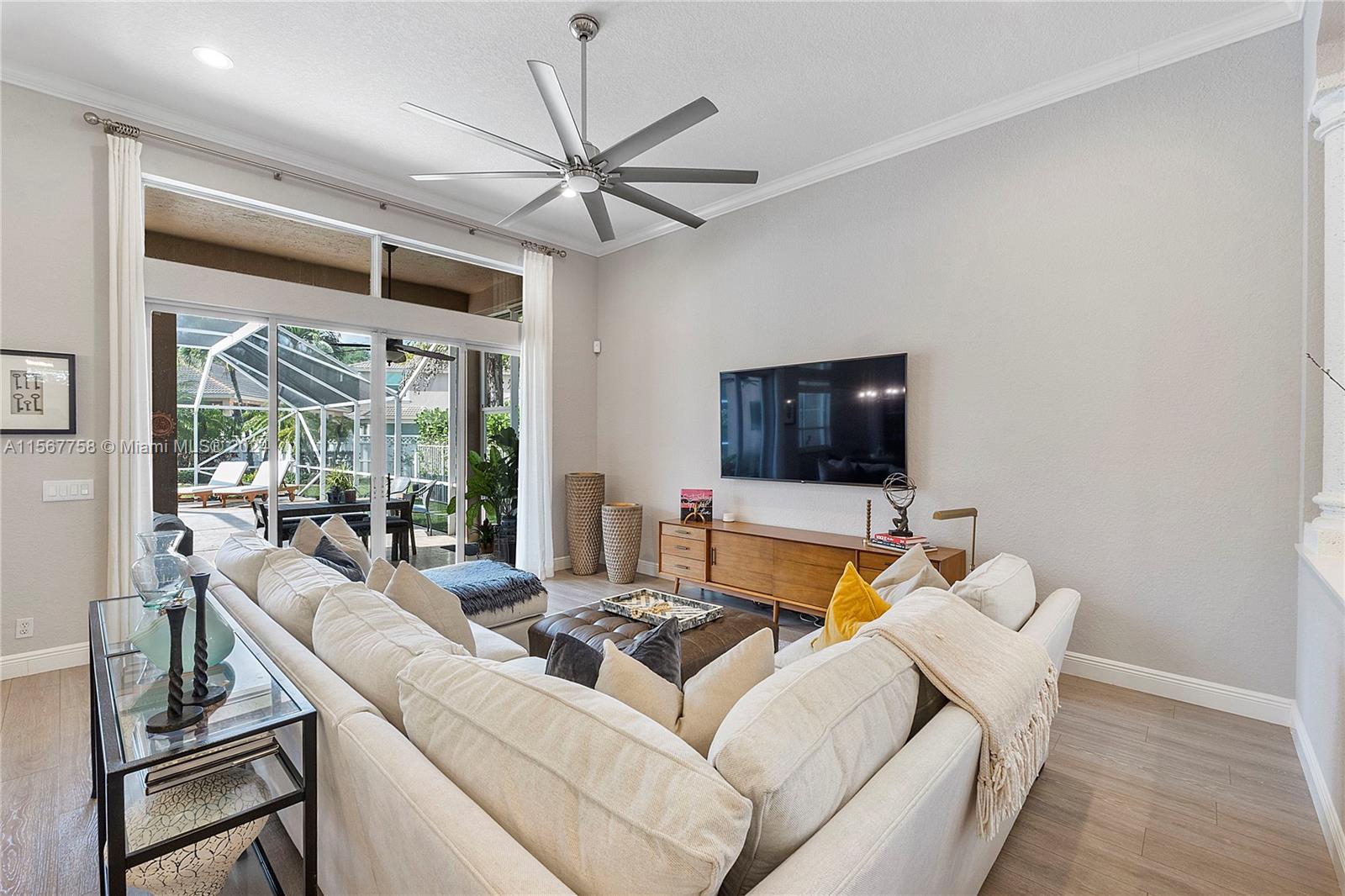 Amazing 4 Bed 3 Bath Pool Home W/ 3 Car Garage Located In The Prestigious Gated Community Grand Reserve! Foyer Entrance. Large Open Layout W/ Custom Kitchen, Quartzite Countertops, SS GE Profile Appliances, Cooktop, White Shaker Cabinets, Pantry & Wet Bar. Formal Dining W/ Tray Ceilings, Custom Lights & Fixtures. Luxury Vinyl Floors Throughout. French Door Entrance To The Primary Suite, Recessed Lighting, Plantation Shutters, Overlooking The Pool, Large Walk-In Closet W/ Built-Ins & Chandelier. Primary Bath W/ Dual Vanities, Granite Countertops, Soaking Tub, Separate Tub/Shower & Water Closet. 2nd Bedroom W/ Custom Fixtures. 3rd Bedroom Recessed Lights. New Trane AC 2018. Mudroom W/D, Laundry Sink. Oversized Yard, Screened Patio W/ Travertine Pavers & Newly Renovated Pool. Must See!